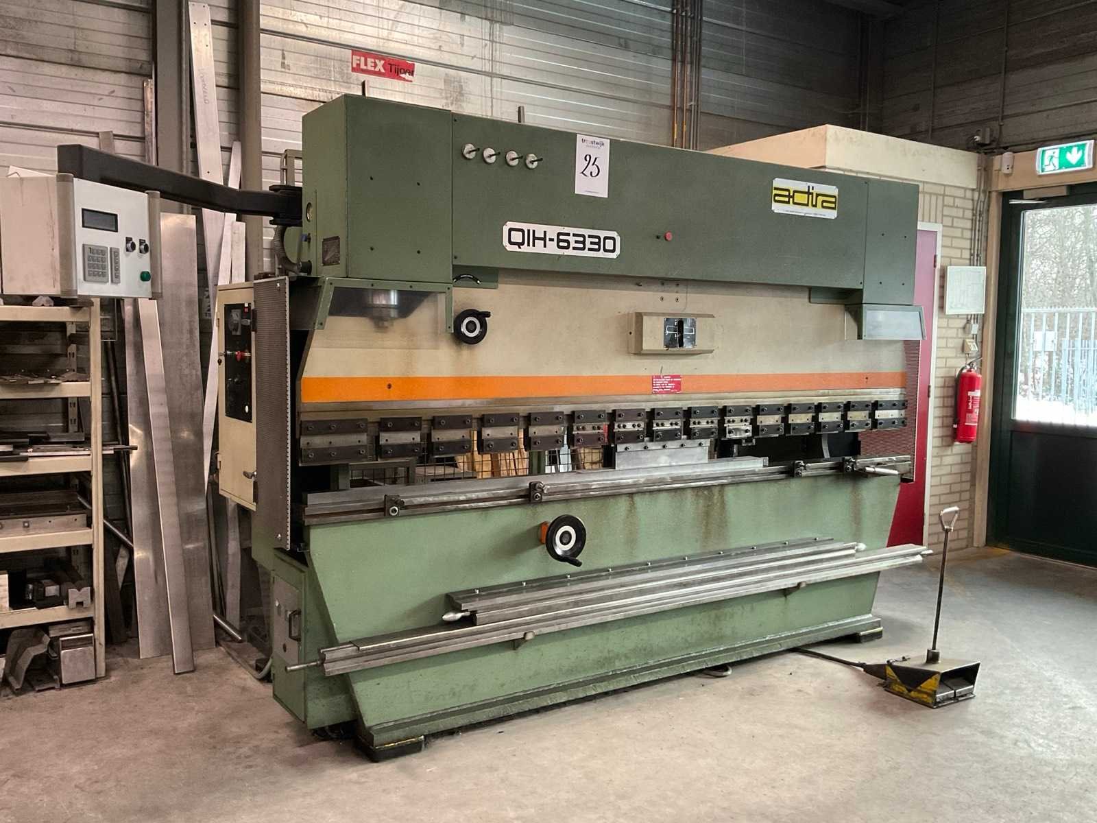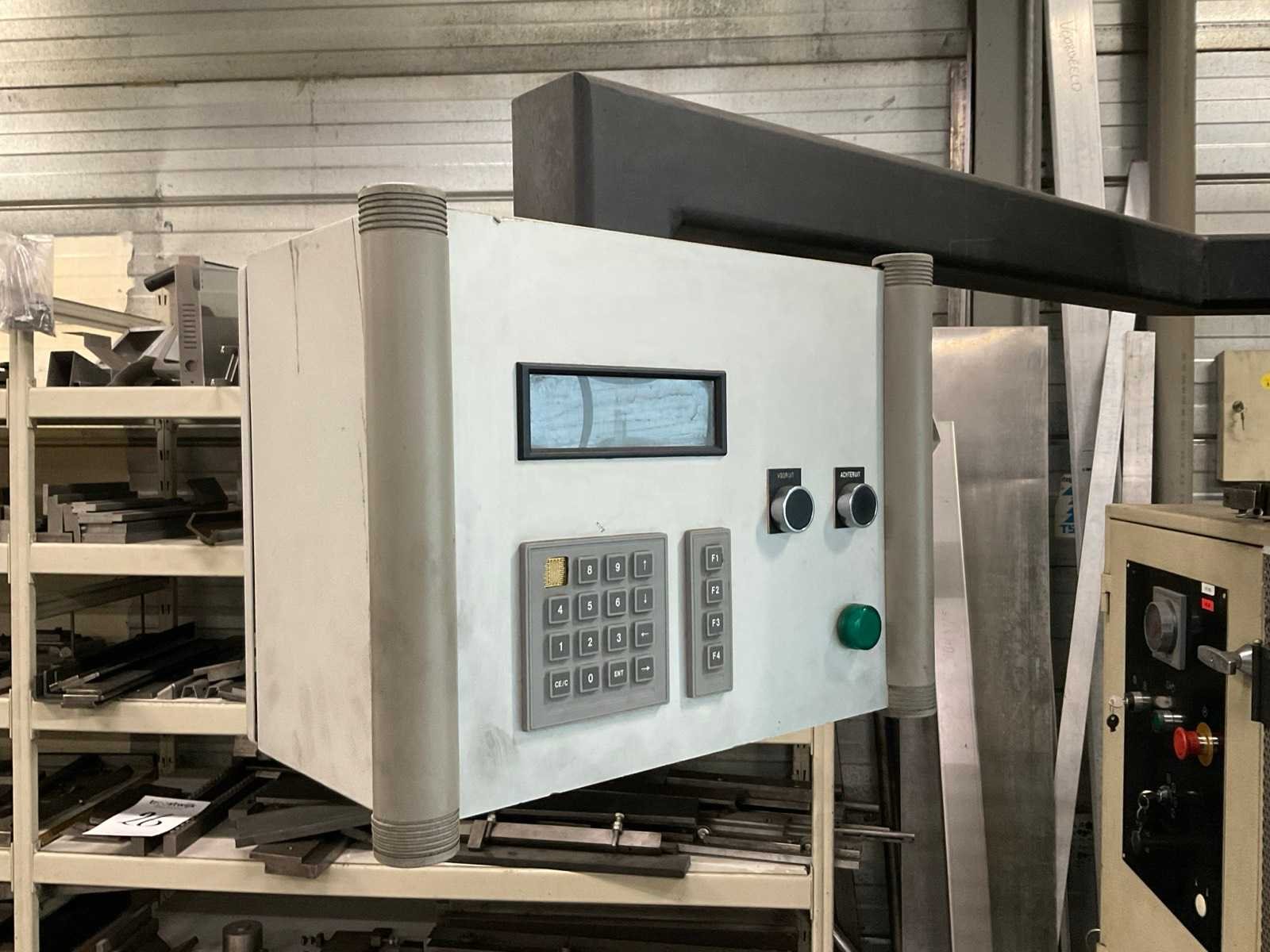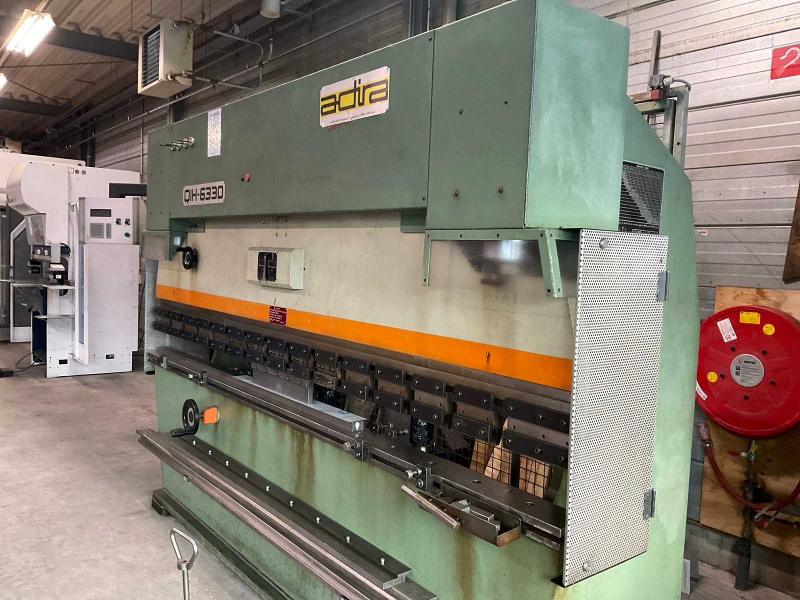 V.v. digitale uitlezing en voetbediening Merk: Adira Type: QIH-6330 Bouwjaar: 1985 Serienummer: 16173538 Capaciteit.: 63t Werklengte: 3000mm Achteraanslag handbediend: true Achteraanslag bereik: 450mm Aansluiting: 400V Afmeting l: 3300mm Afmeting b: 1200mm Afmeting h: 2150mm