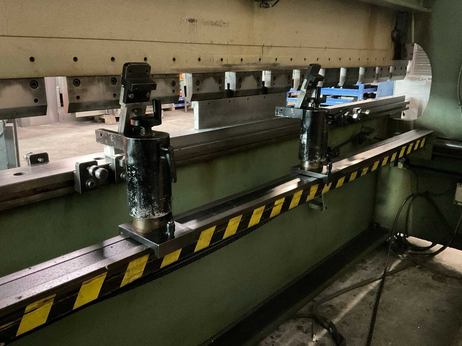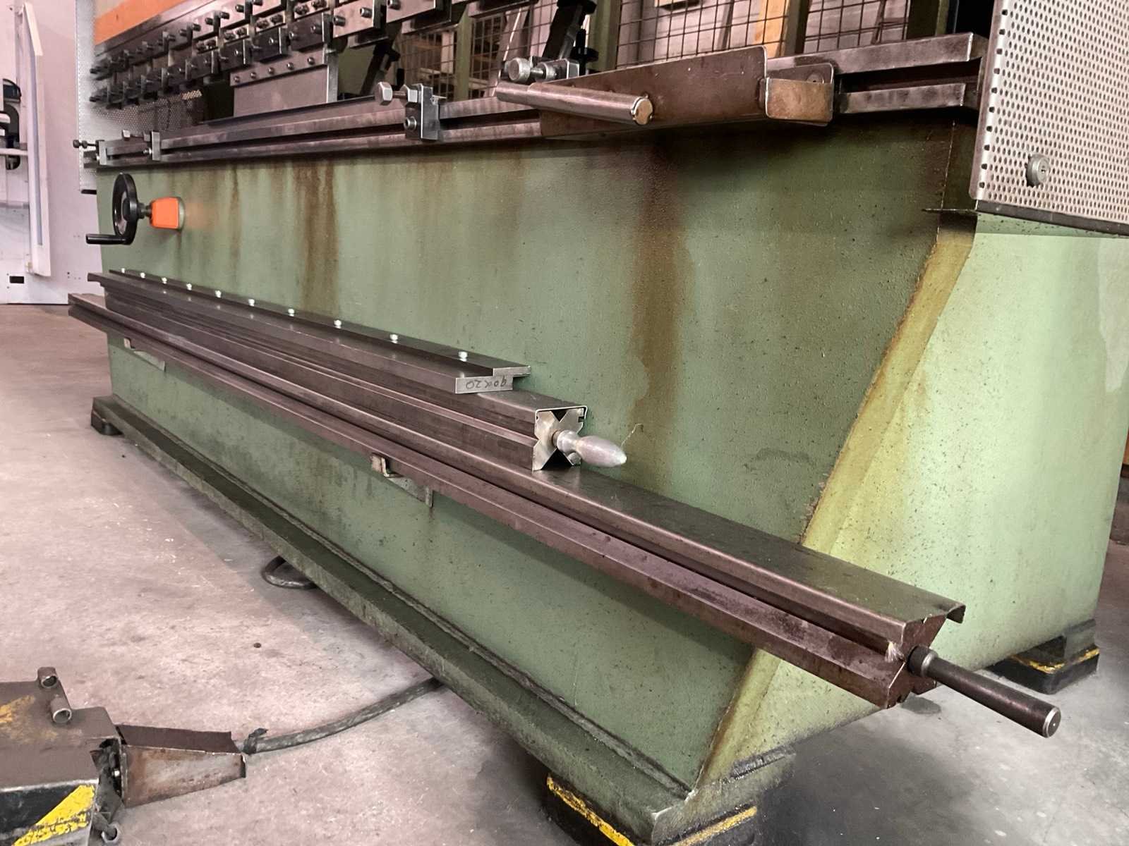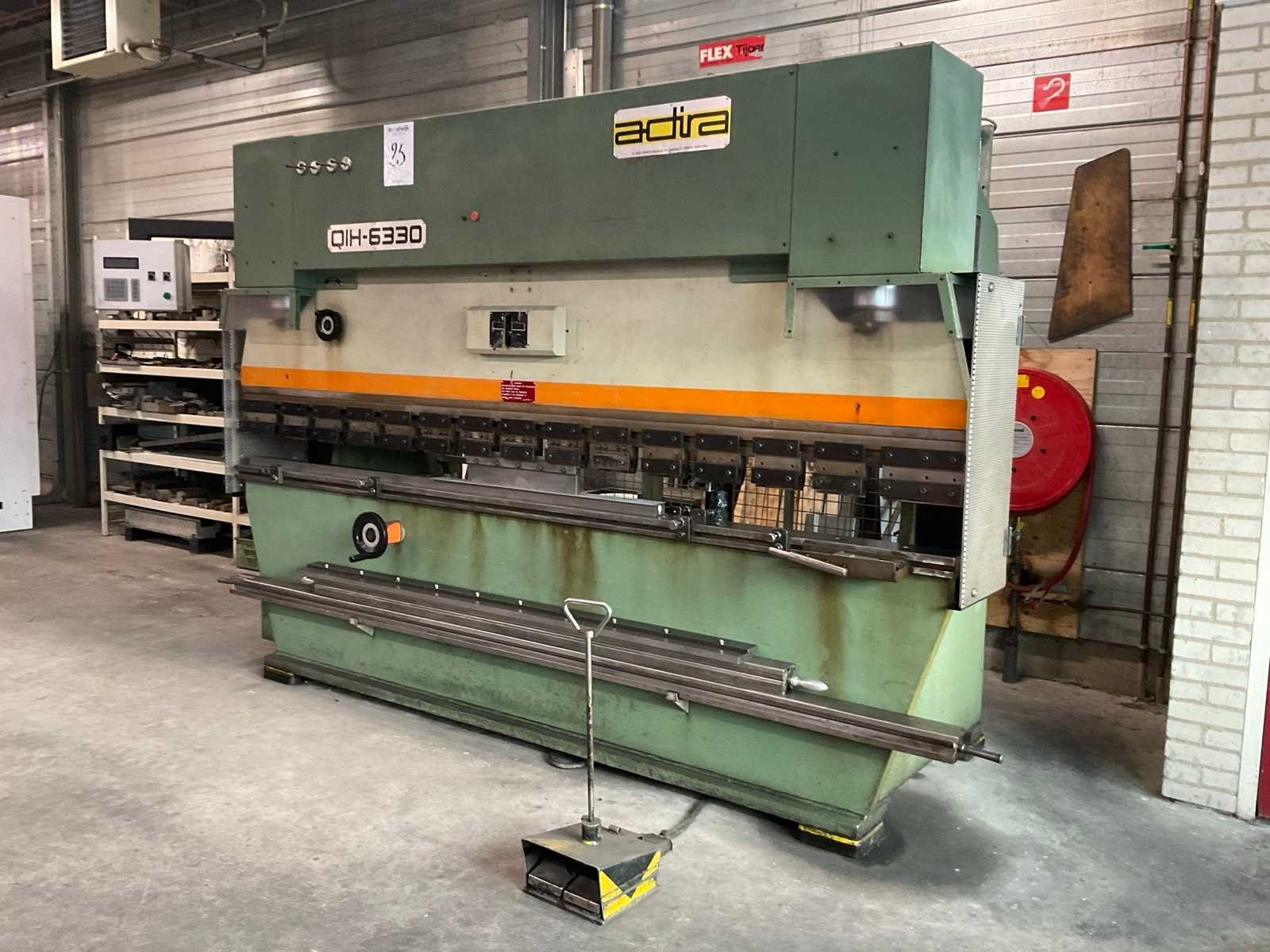 V.v. digitale uitlezing en voetbediening Merk: Adira Type: QIH-6330 Bouwjaar: 1985 Serienummer: 16173538 Capaciteit.: 63t Werklengte: 3000mm Achteraanslag handbediend: true Achteraanslag bereik: 450mm Aansluiting: 400V Afmeting l: 3300mm Afmeting b: 1200mm Afmeting h: 2150mm