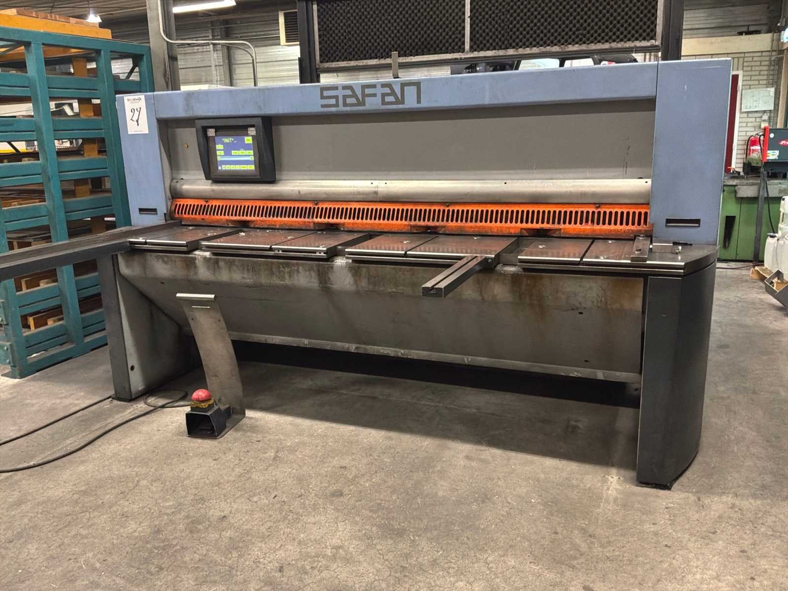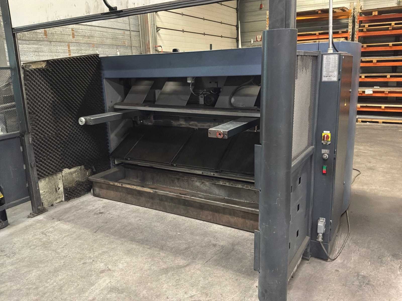 Voorzien van lichtbeveiliging Merk: Safan Type: HT 255-6 TS Bouwjaar: 2001 Serienummer: B8669 Snijlengte: 2550mm Max. plaatdikte: 6mm Aansluiting: 400V Afmeting l: 2820mm Afmeting b: 3300mm Afmeting h: 1750mm