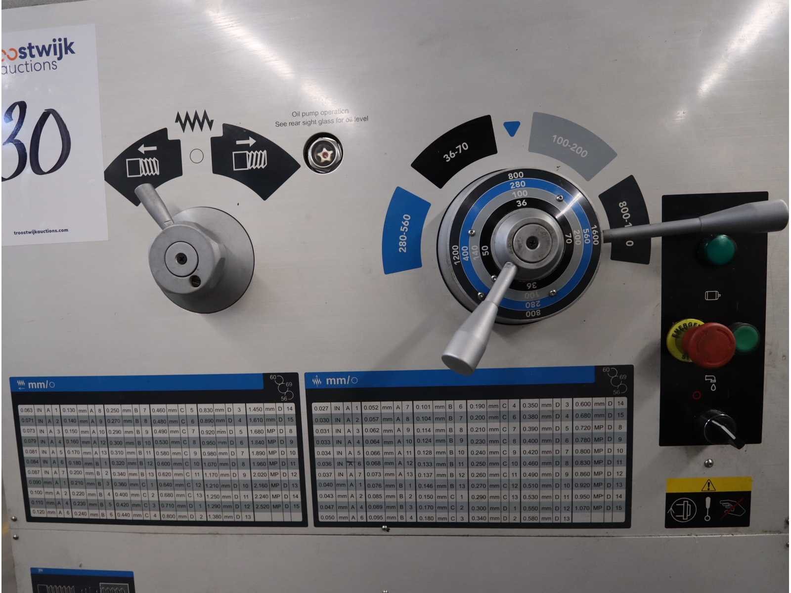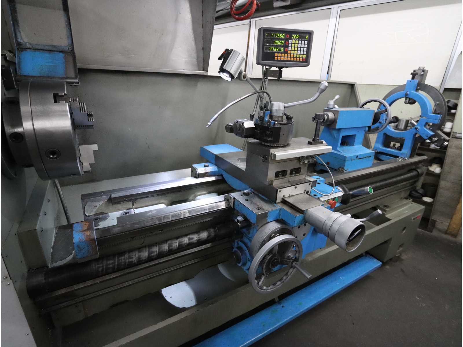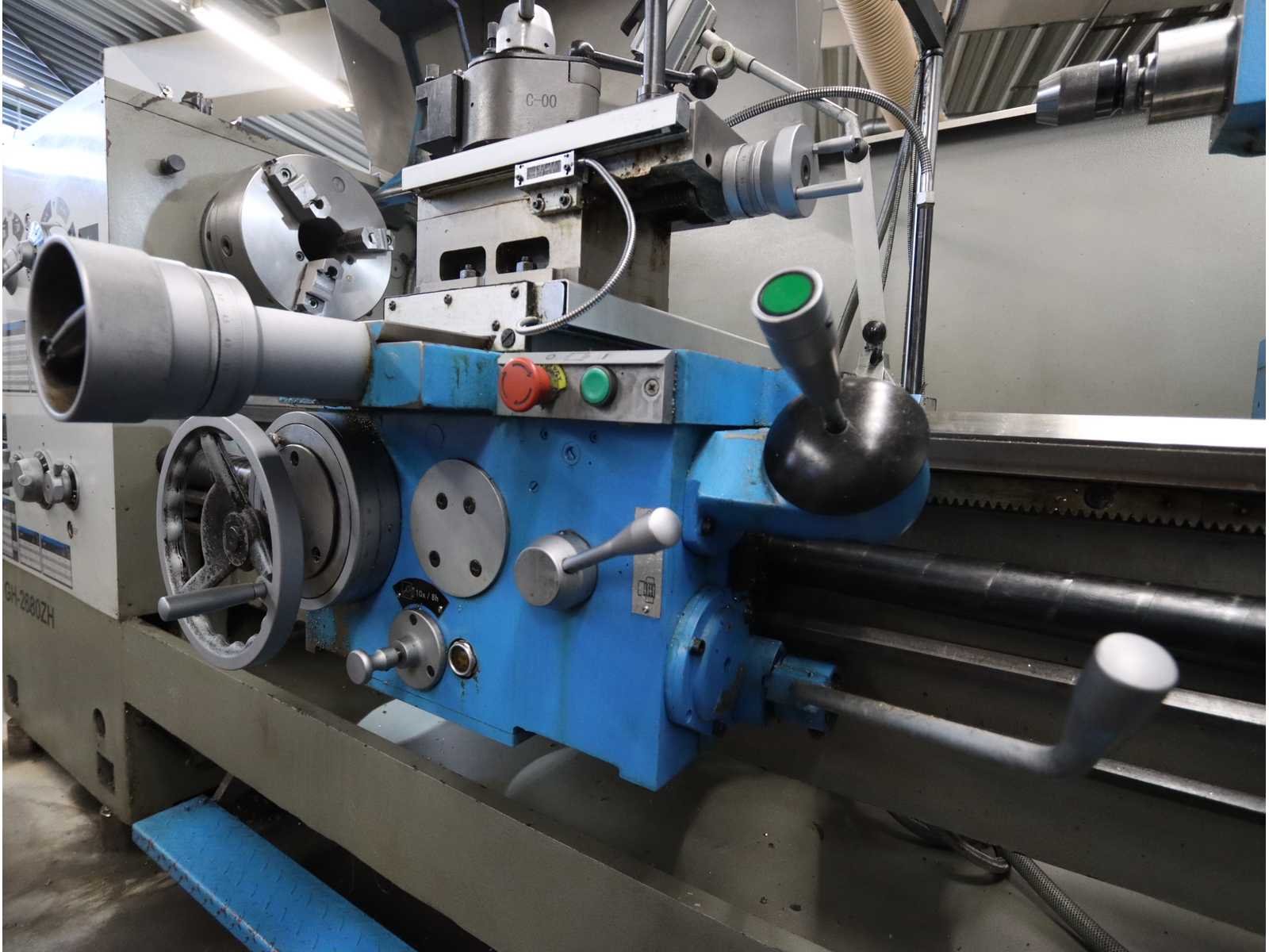 Centerhoogte: 250mm, Hoofdspil: Camlock D1-8”, Motorvermogen: 7,5kW. Draaisnelheid traploos, Voorzien van digitale teller, Inclusief: 3-klauwplaat 320mm, 1 vierklauw draaiplaat ø 400mm, 2 vaste brillen, snelwissel beitelhouder met adapters, meedraaiende centers, zachte bekken, draadsnijgereedschap en kotter gereedschap Merk: Promac Type: GH-2680ZH Bouwjaar: 2020 Serienummer: 1810ZH0927 Draailengte: 2030mm Draai: 660mm Holle spil Ø: 105mm Snelheid van n =: 36rpm Snelheid tot n =: 1600rpm Aantal gereedschapwisselstations: 1 Koelmiddelpomp: true Aansluiting: 400V Machinegewicht: 3870kg Afmeting l: 3500mm Afmeting b: 1280mm Afmeting h: 1500mm