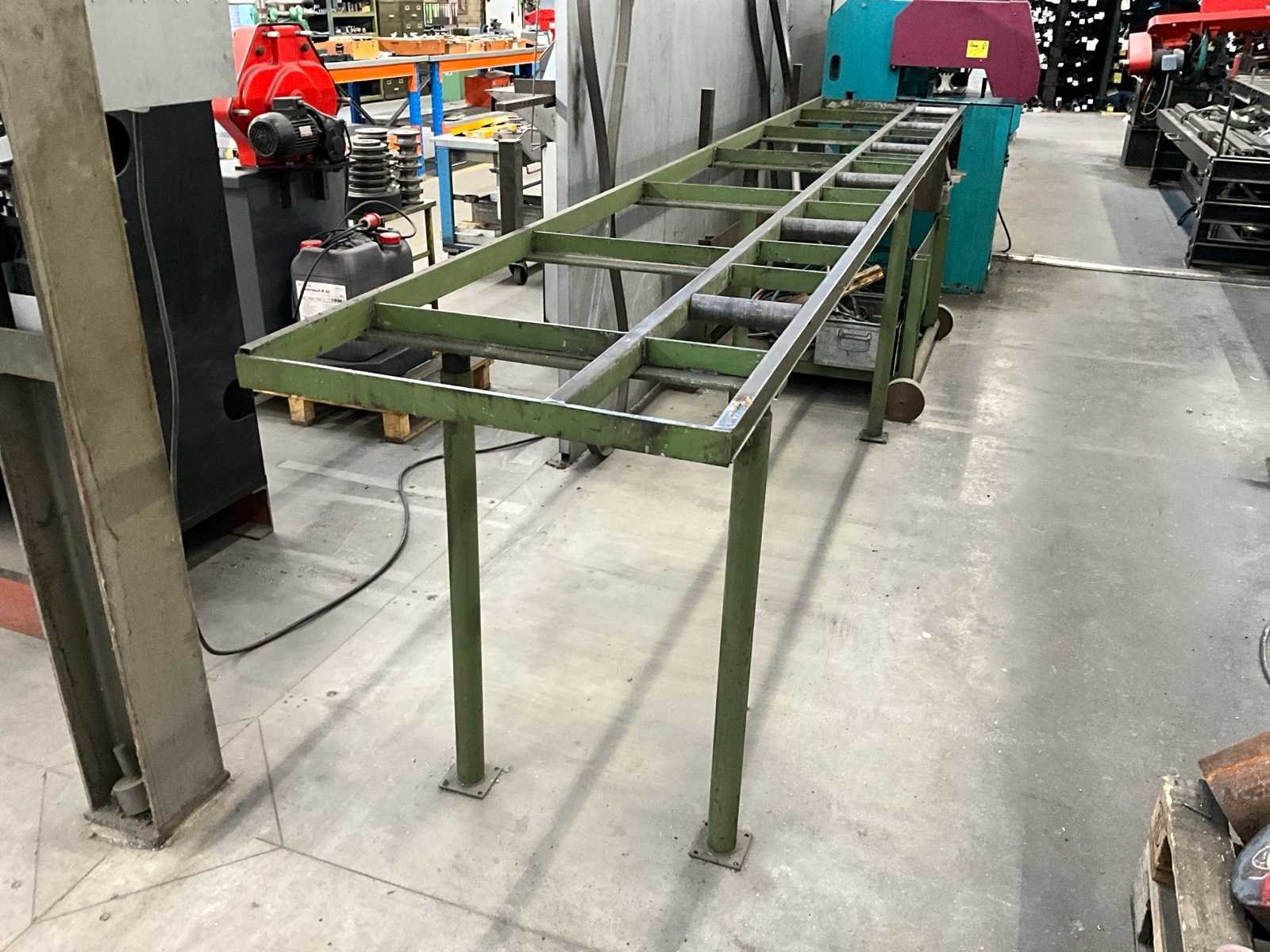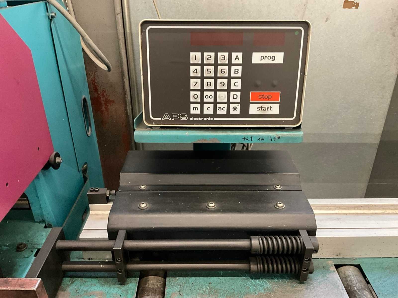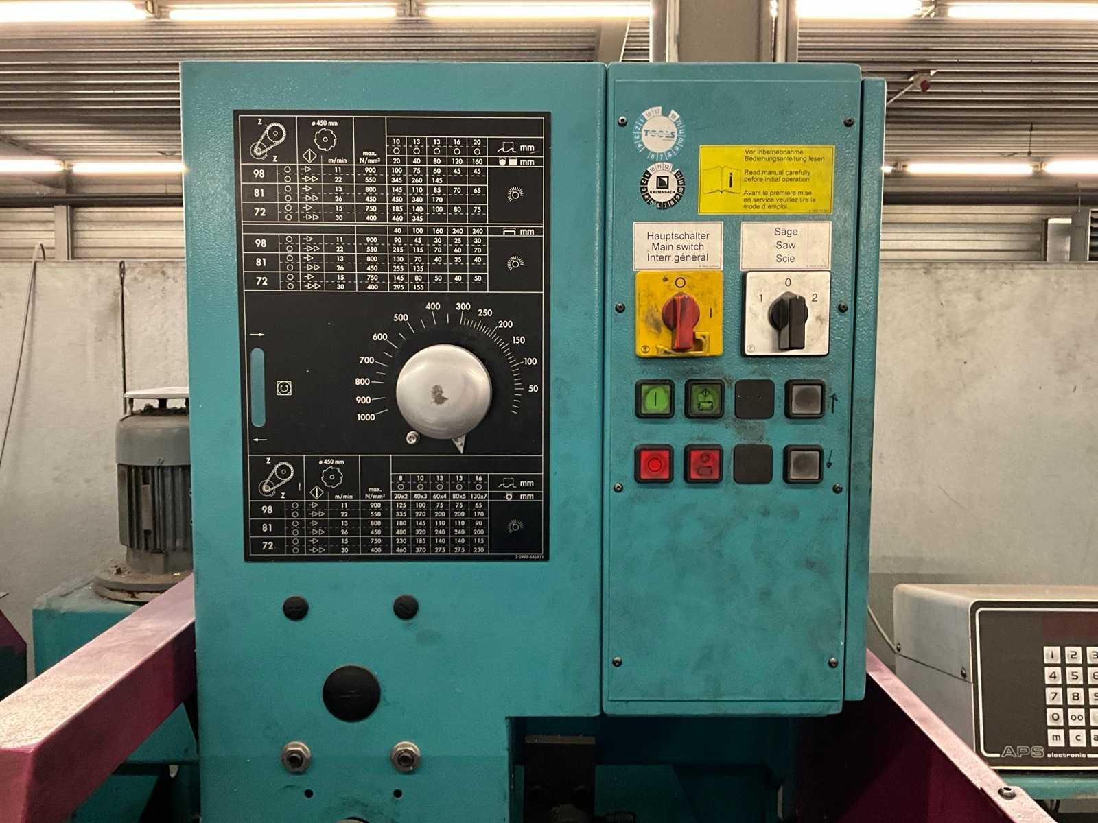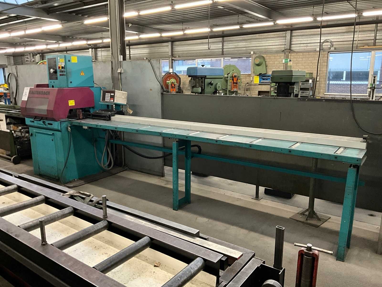 0 tot 1000 mm/min, Voorzien van aanvoer rollenbaan 4800 mm, en afvoer rollenbaan 4000 mm, APS electronica lengte meetsysteem, Merk: Kaltenbach Type: KKS 450 E Bouwjaar: 2004 Zaagblad Ø: 450 Zaagbereik: 150 Koelmiddelpomp: true Motorvermogen (kW): 2.7kW Aansluiting: 380V Machinegewicht: 1000kg Afmeting l: 1200mm Afmeting b: 1100mm Afmeting h: 2000mm