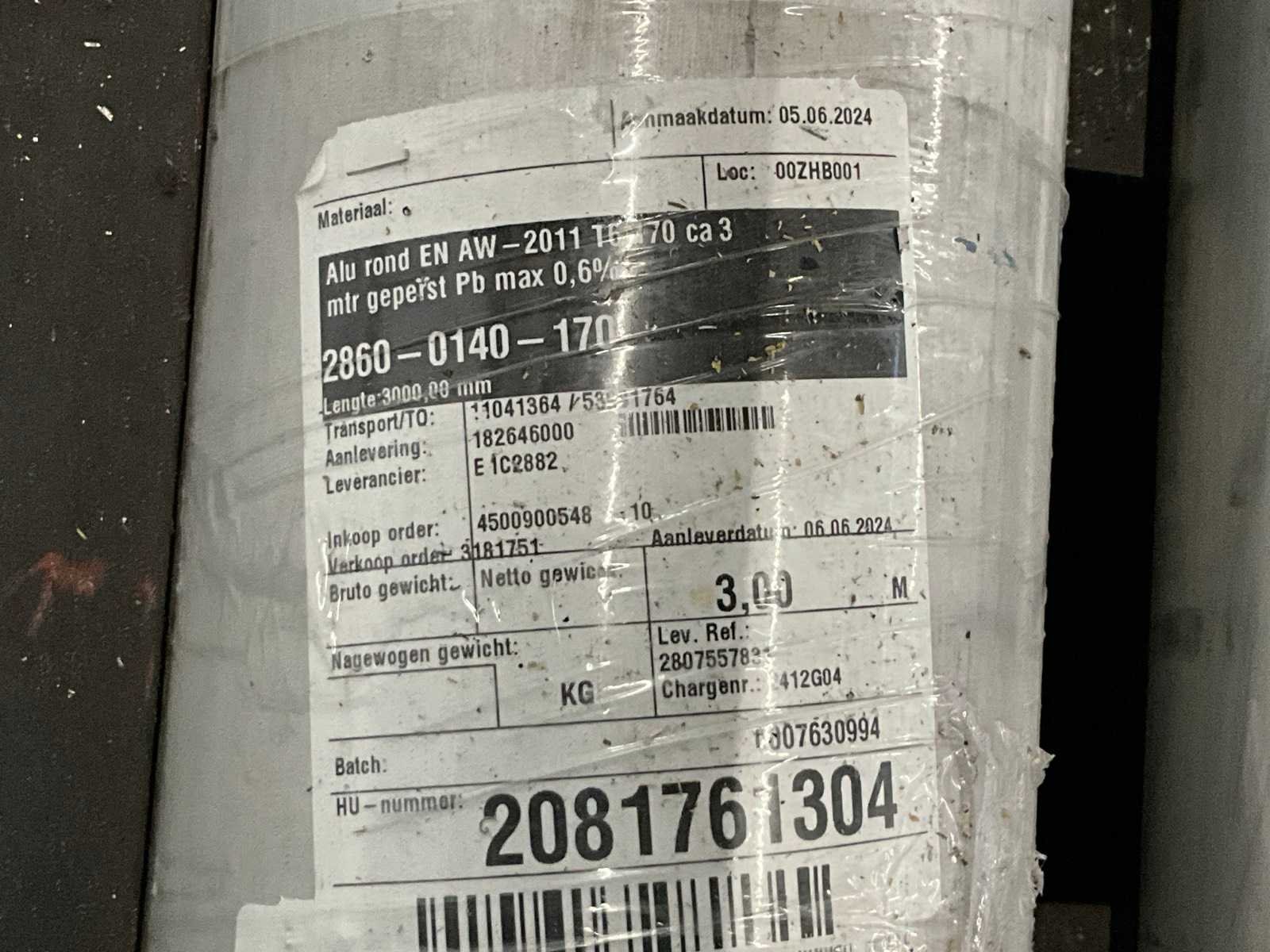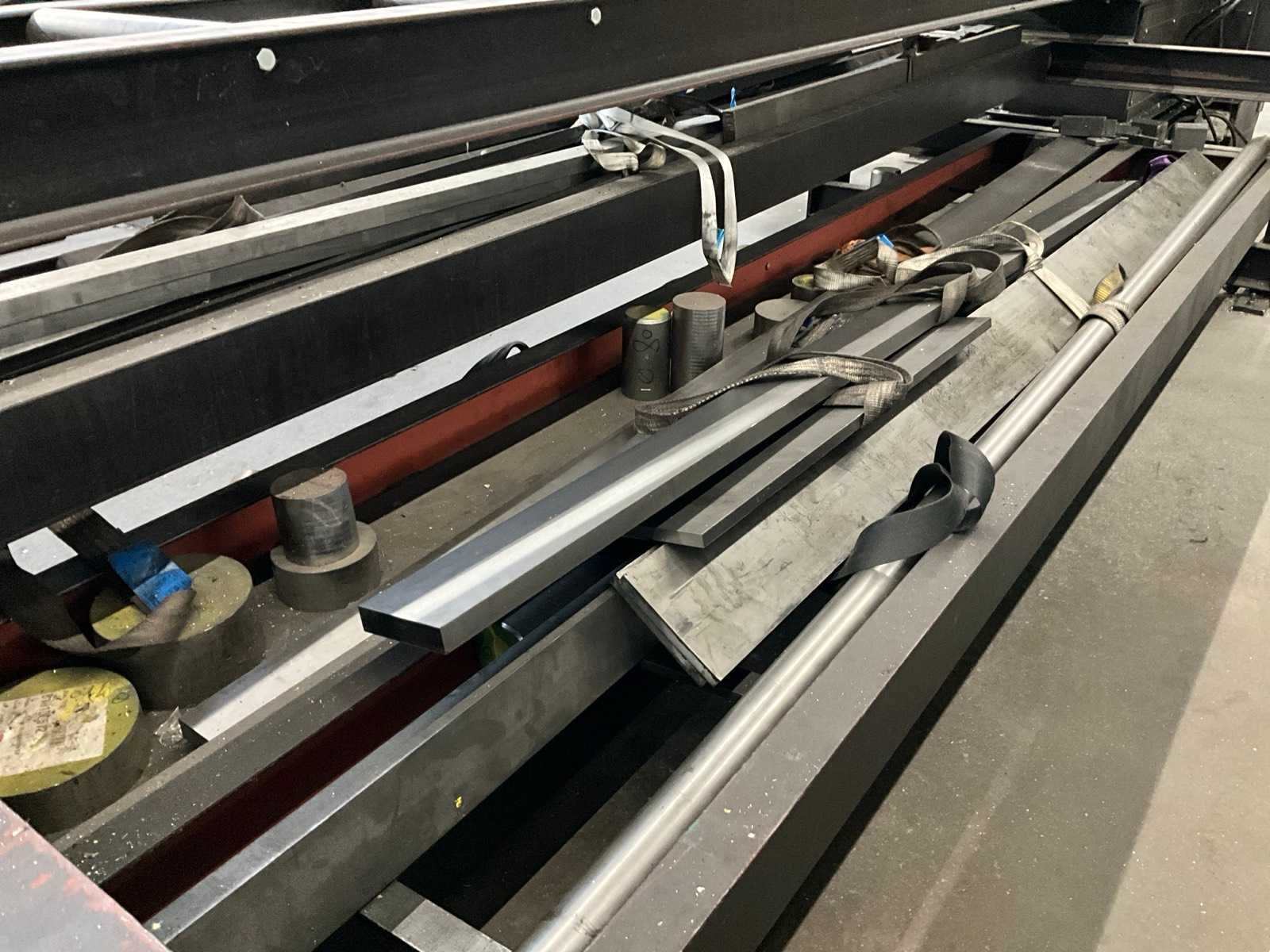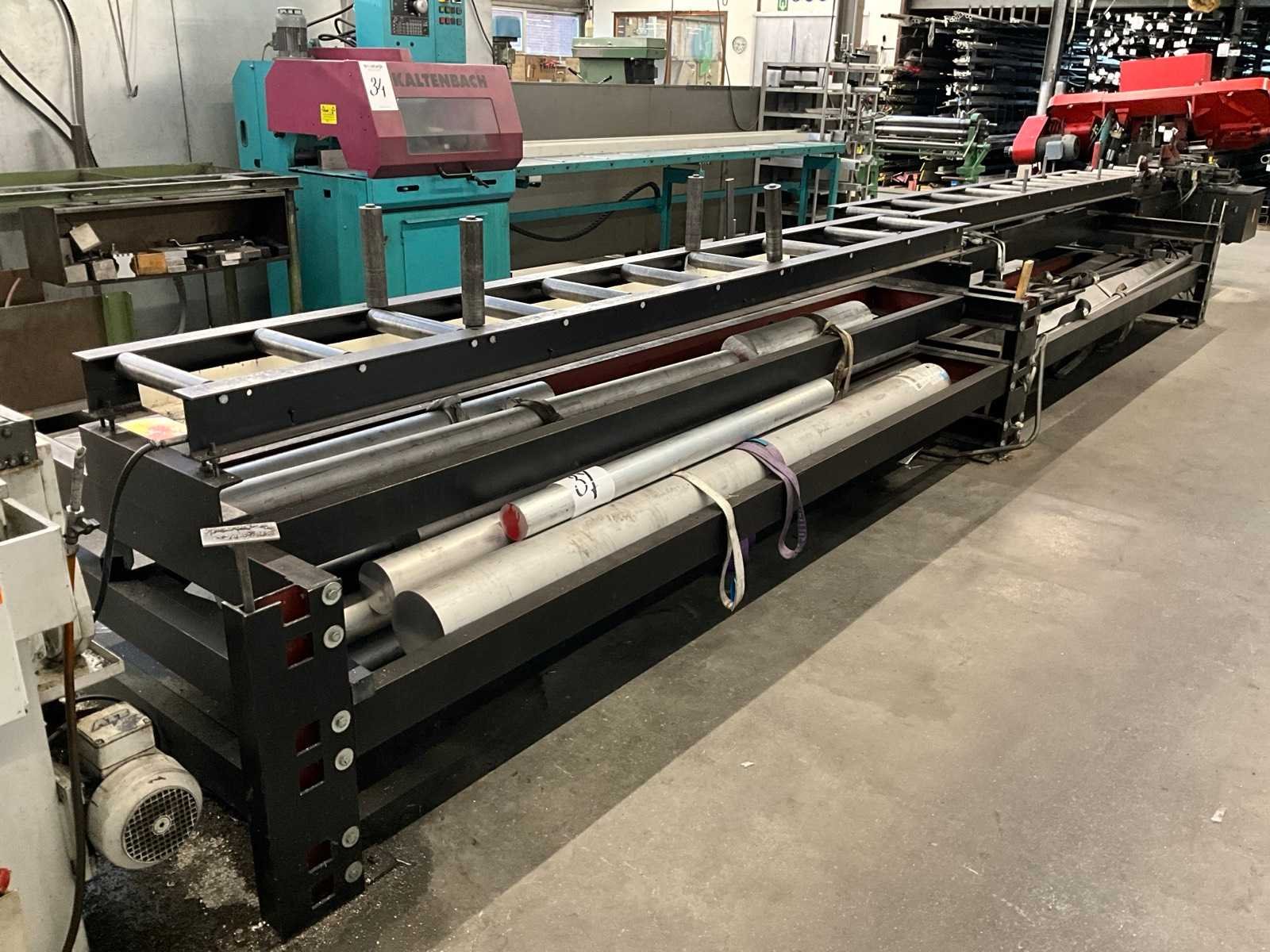 Waaronder aluminium rondstaven Ø van 90 mm tot 170 mm; zaagstukken; stalen balken lengtes tot circa. 320 cm en reststukken; voorzien van stalen materiaalbakken met lades en rollenbaan totale afmeting 715x150x100 cm