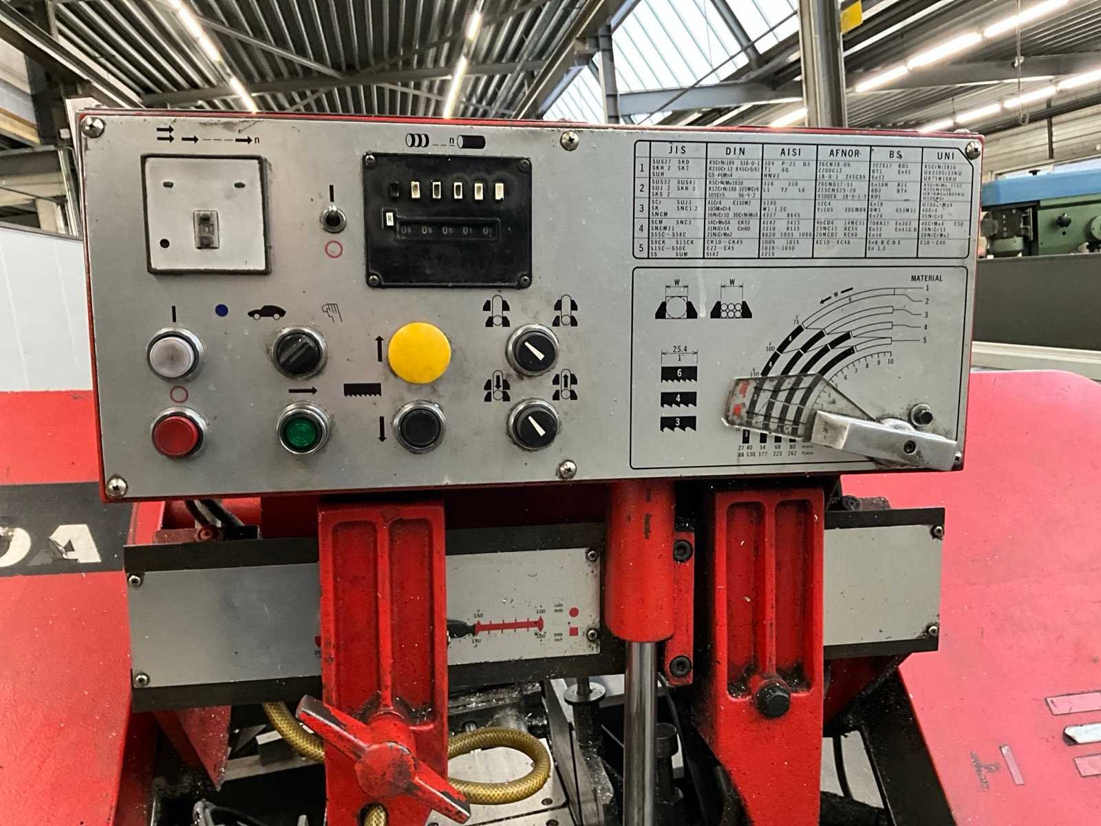 Zaagsnelheid 88 tot 262 ft/min, capaciteit rond: 10″ Diameter, capaciteit vierkant: 10″ x 11″ Merk: Amada Type: HA-250 Bouwjaar: 1992 Zaagblad afm. l: 3505mm Zaagblad afm. b: 25mm Zaagbladdikte: 0.95mm Motorvermogen (kW): 2.2kW Aansluiting: 380V Machinegewicht: 1200kg Afmeting l: 2100mm Afmeting b: 1800mm Afmeting h: 1800mm