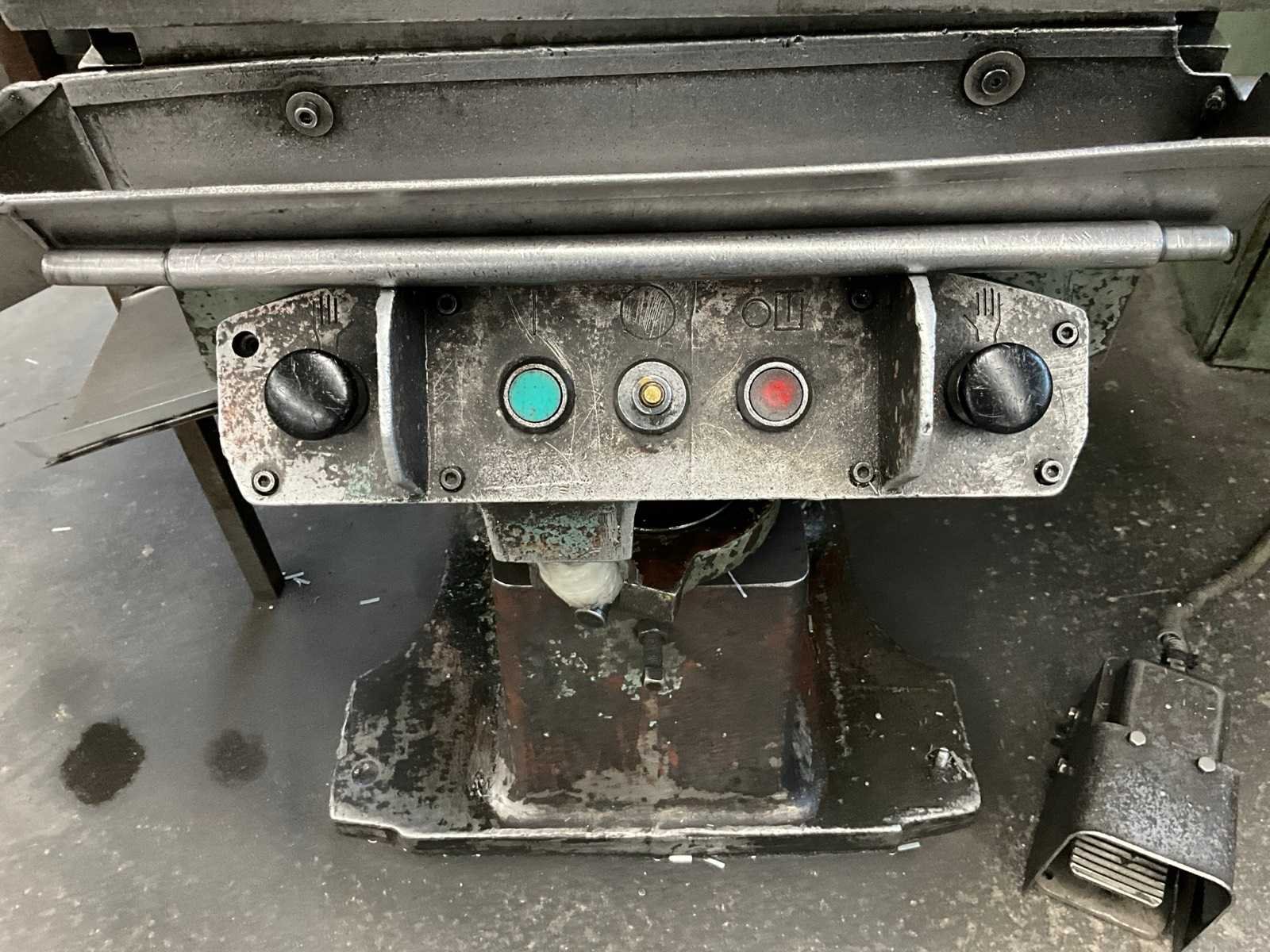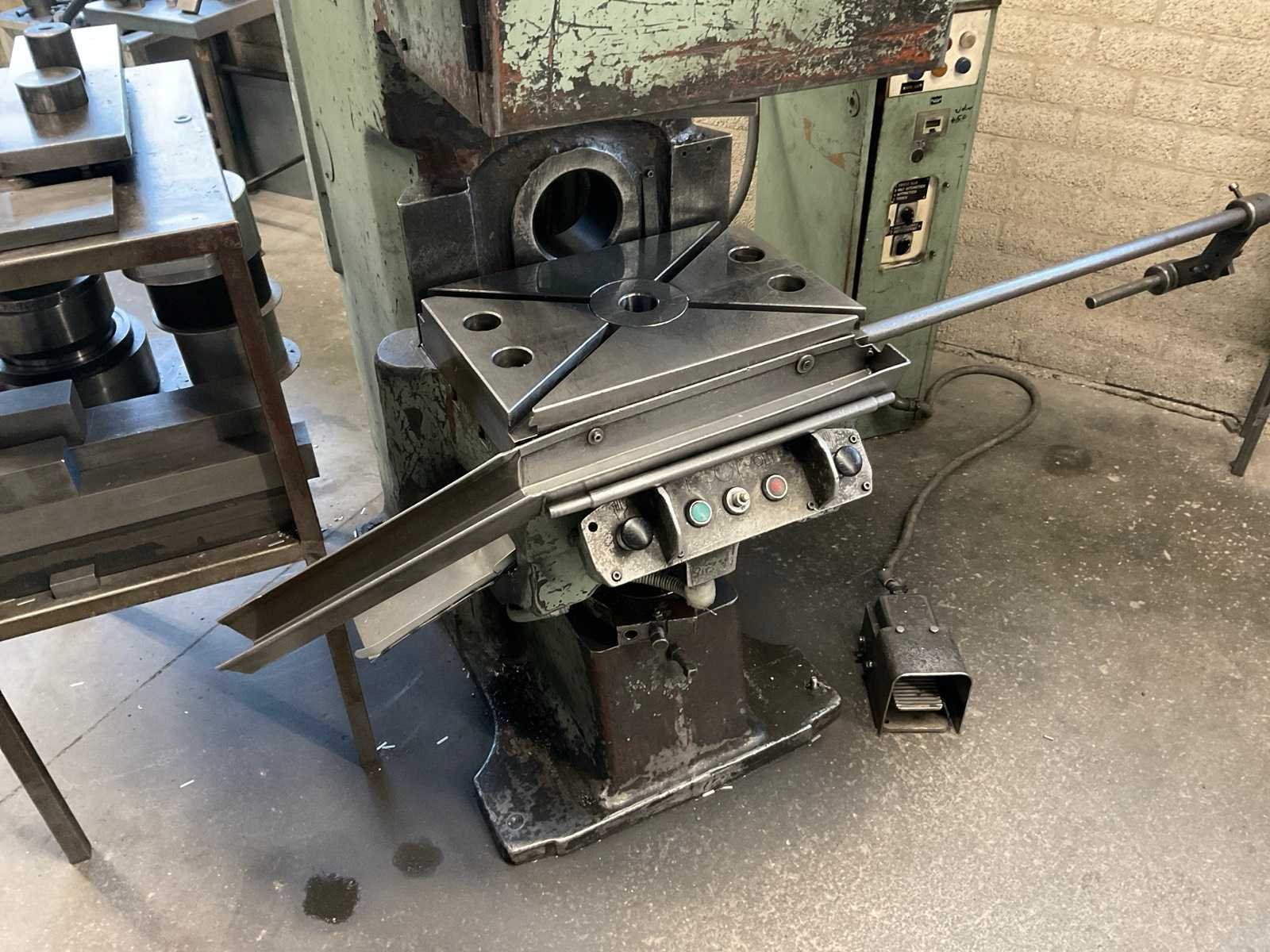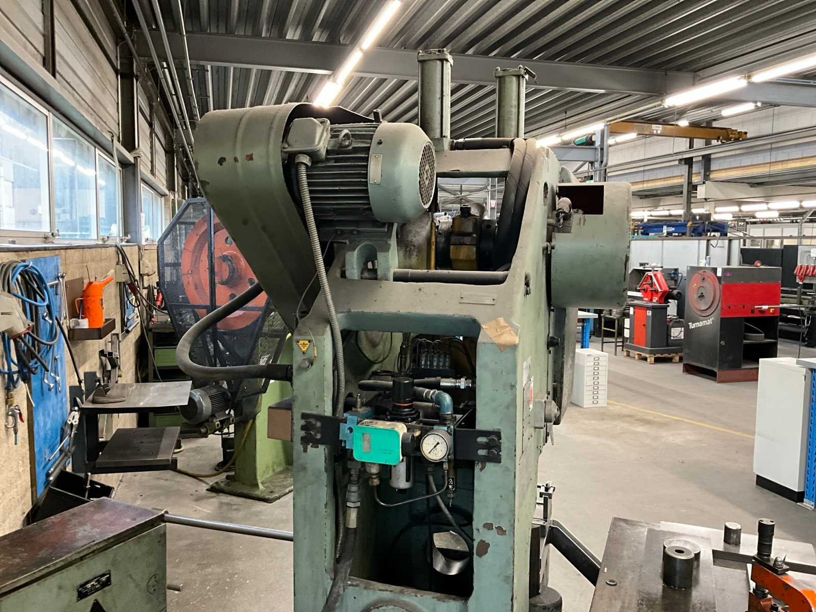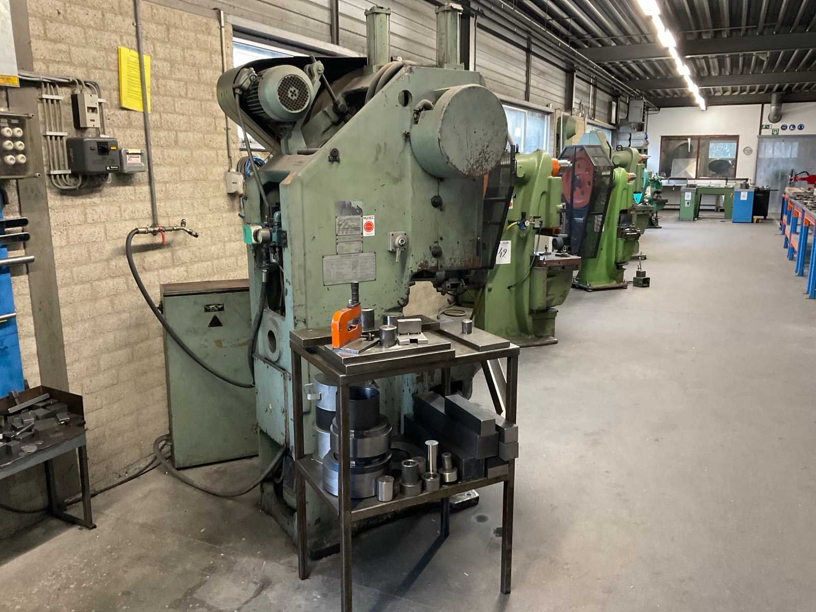 Voorzien van voetbediening, stroomkast en 3 werktafels met rest stukken en onderdelen Merk: Stankoimport Type: KD1424A Bouwjaar: 1982 Capaciteit.: 25t Uitlading: 180mm Tafel afmeting l: 500mm Tafel afmeting b: 340mm Motorvermogen (kW): 2.5kW Aansluiting: 400V Machinegewicht: 2800kg Afmeting l: 1250mm Afmeting b: 1200mm Afmeting h: 2350mm
