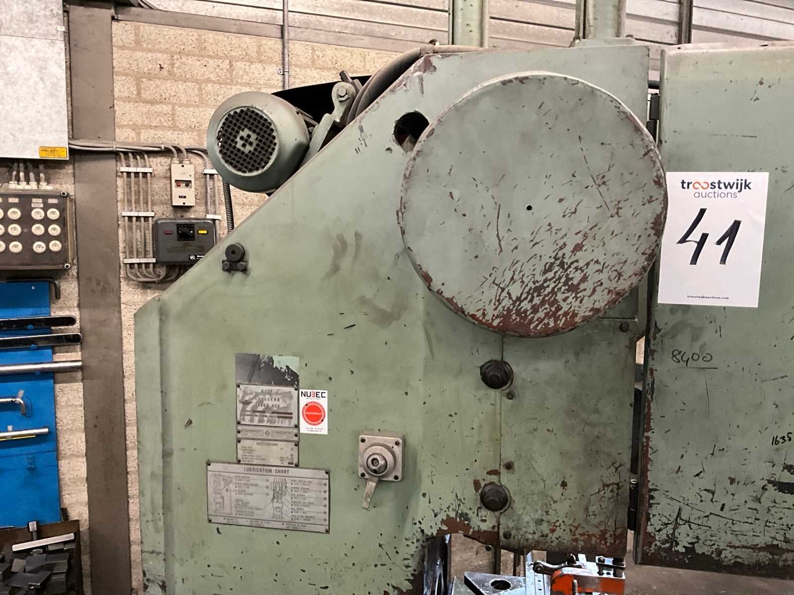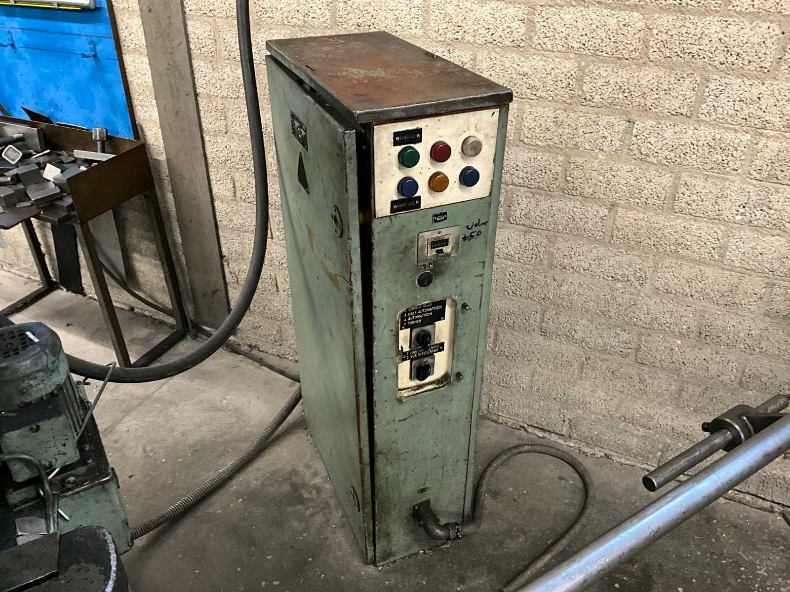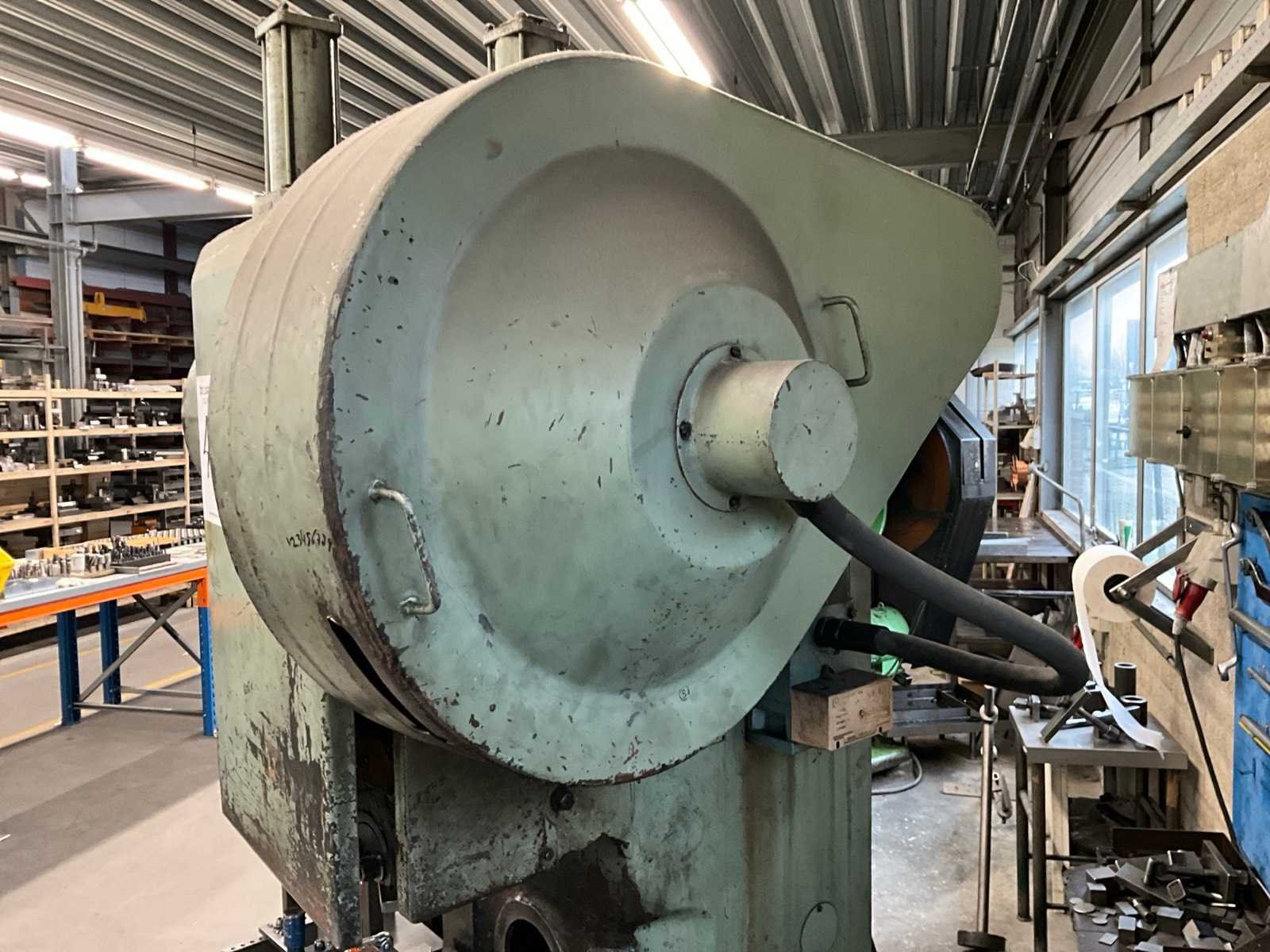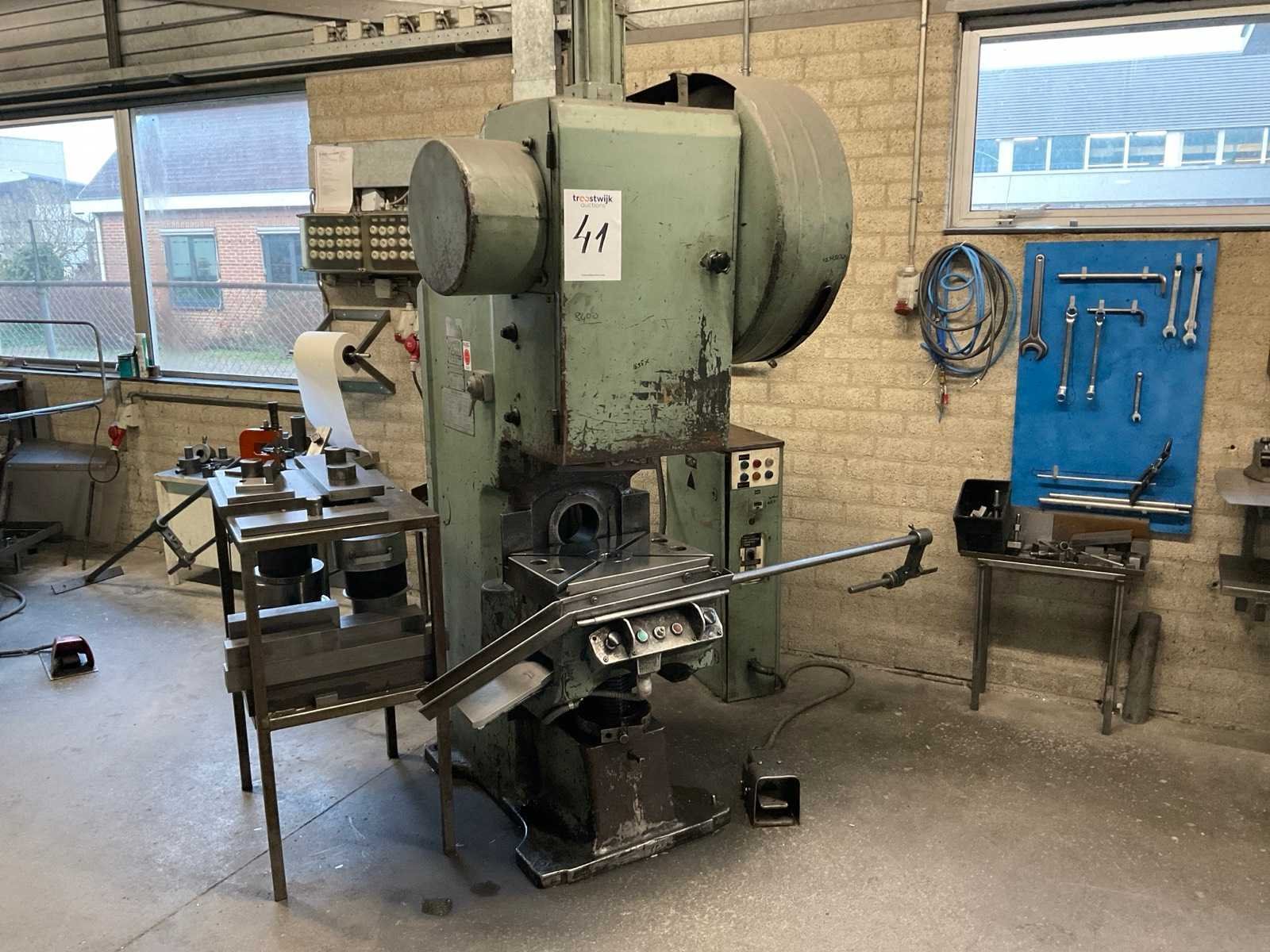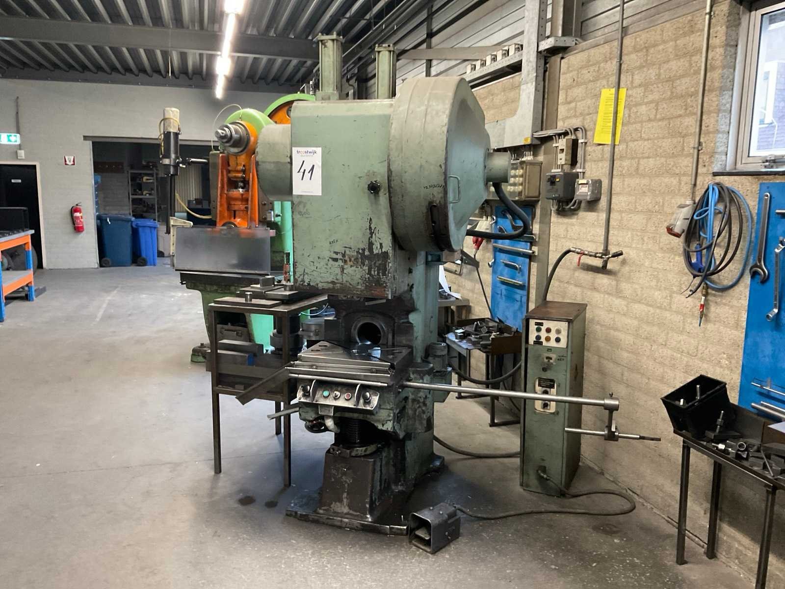 Voorzien van voetbediening, stroomkast en 3 werktafels met rest stukken en onderdelen Merk: Stankoimport Type: KD1424A Bouwjaar: 1982 Capaciteit.: 25t Uitlading: 180mm Tafel afmeting l: 500mm Tafel afmeting b: 340mm Motorvermogen (kW): 2.5kW Aansluiting: 400V Machinegewicht: 2800kg Afmeting l: 1250mm Afmeting b: 1200mm Afmeting h: 2350mm