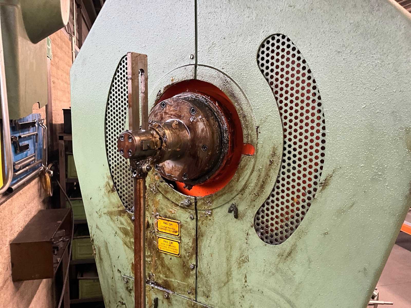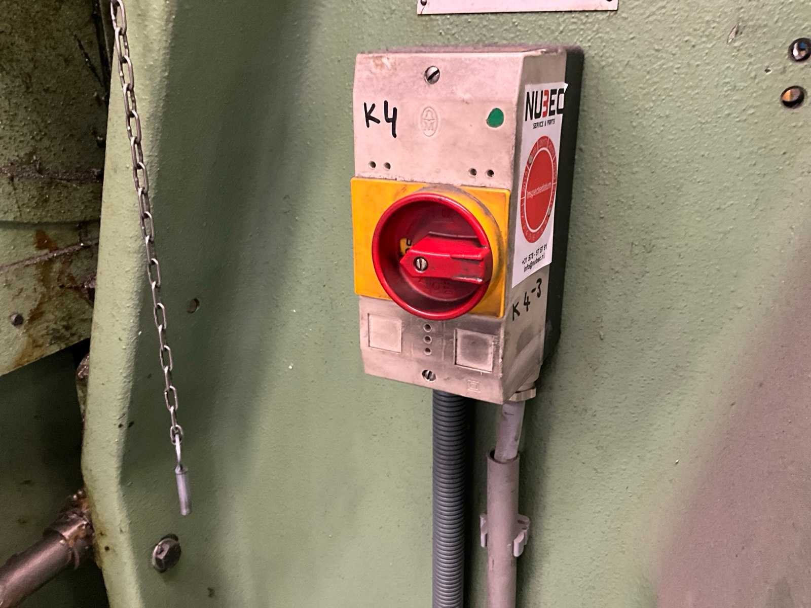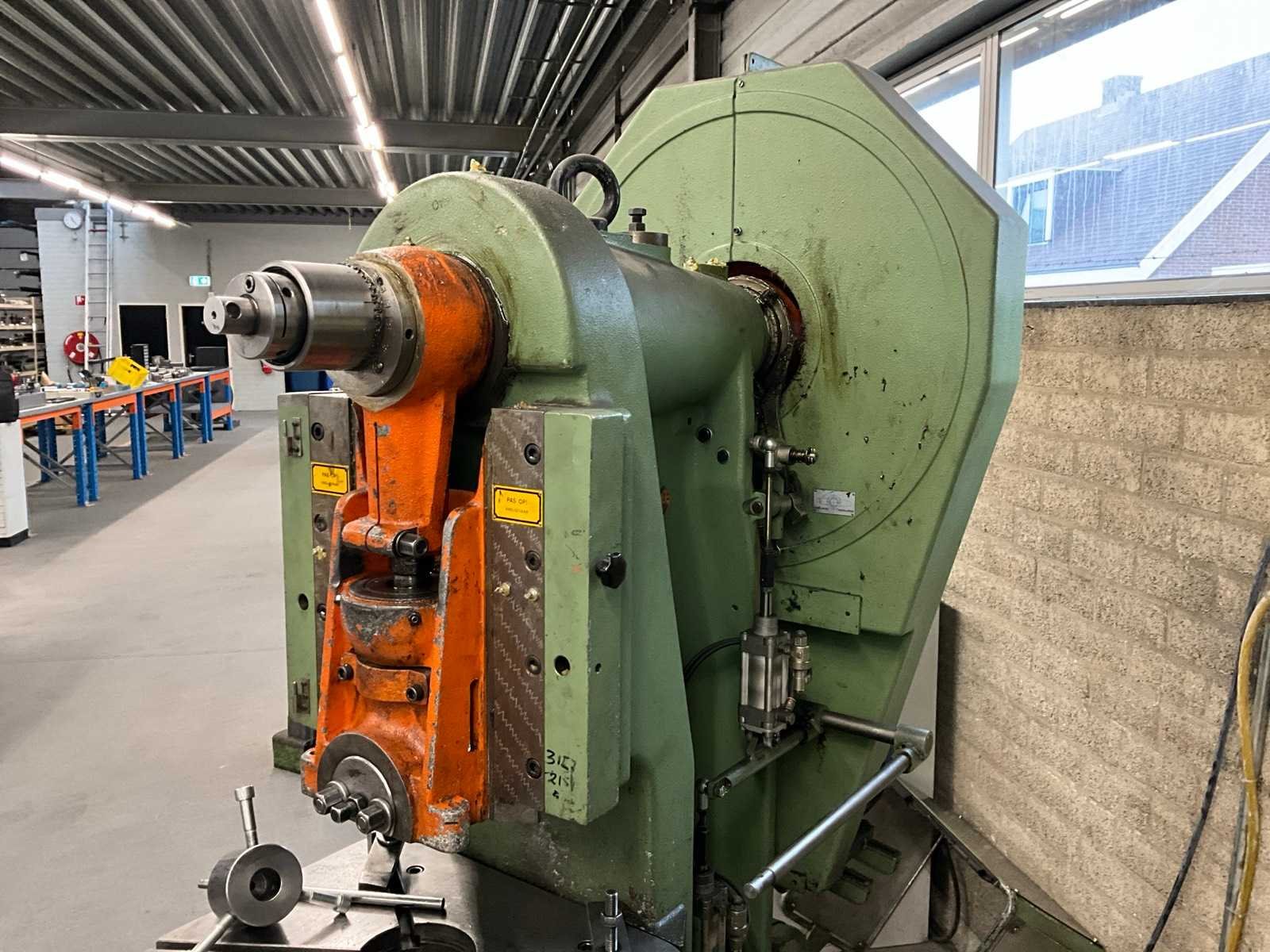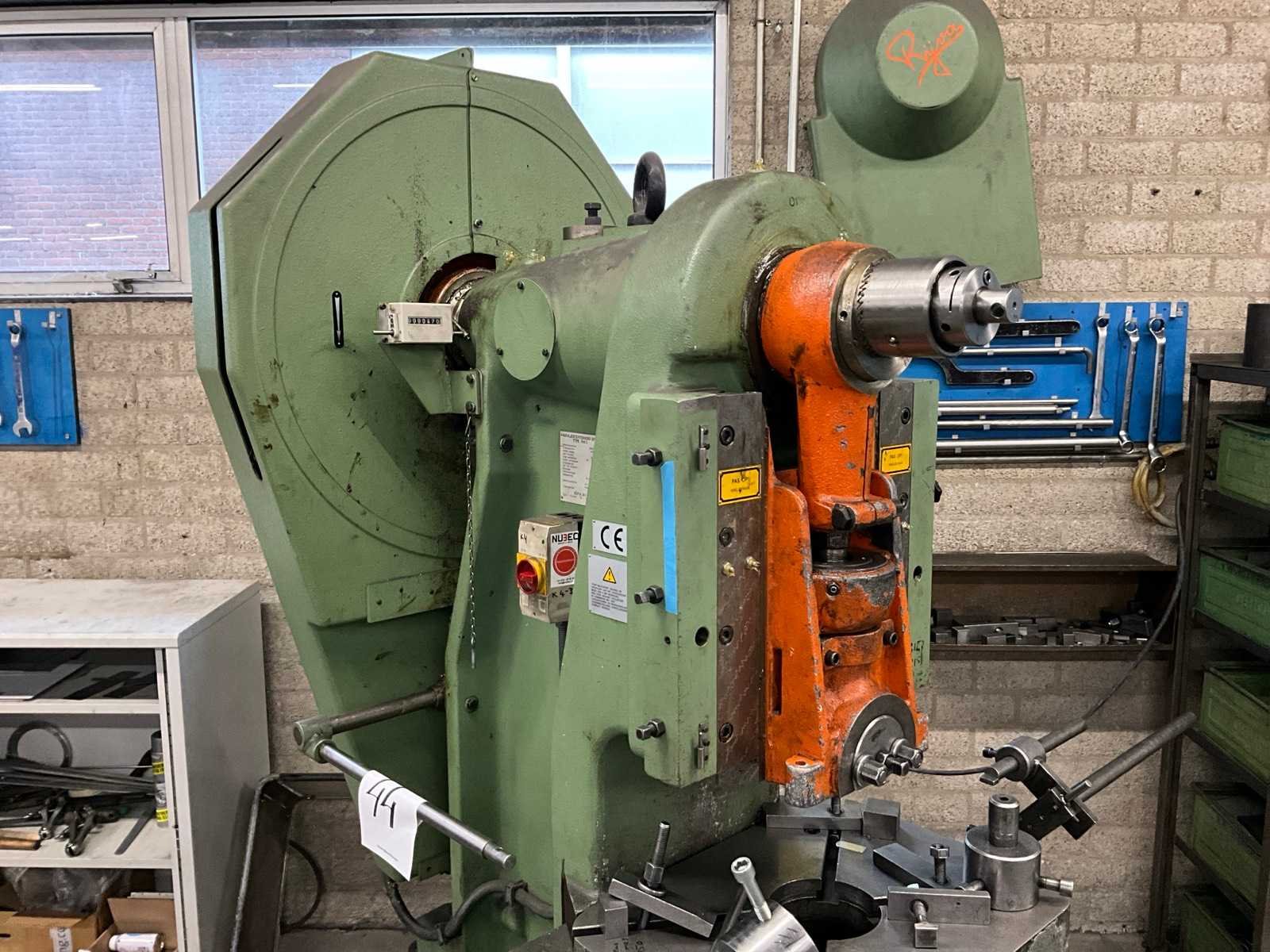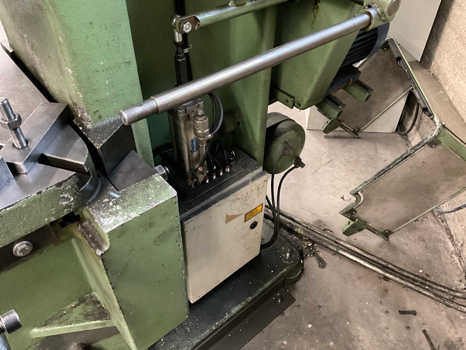 Snij cap. 1125 mm2, slag verstelbaar van 16 - 80 mm, stoter verstelbaar 60 mm; voorzien van voetbediening en pneumatische kleminrichting Merk: Rijva Type: 504/2 Bouwjaar: 1998 Serienummer: 2684 Capaciteit.: 45t Uitlading: 230mm Tafel afmeting l: 600mm Tafel afmeting b: 440mm Motorvermogen (kW): 2.2kW Aansluiting: 400V Machinegewicht: 2000kg Afmeting l: 1500mm Afmeting b: 900mm Afmeting h: 2200mm