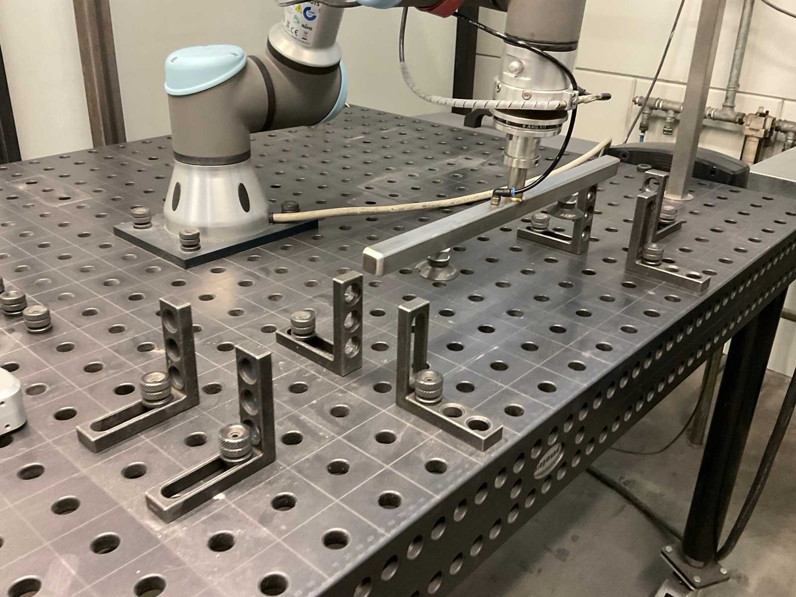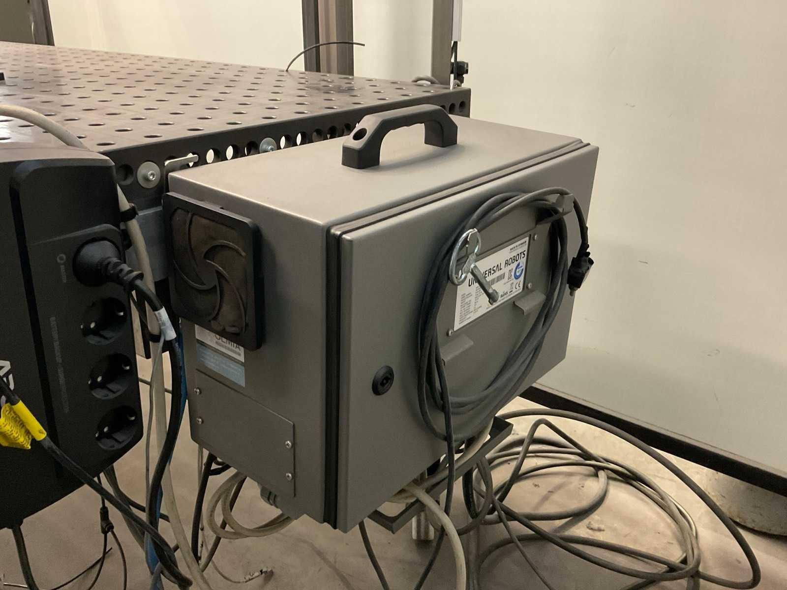 Maximale belasting 3 kg; bereik 500 mm; voetafdruk Ø 128 mm; incl. robot gripper; type RG2; digitale besturing; regelkast; gereedschapswagen en mobiele lastafel met toebehoren; afm. ca. 1500x1000x850 mm Merk: Universal Robot Type: UR3 Bouwjaar: 2017 Aansluiting: 230V Eigen gewicht: 11kg