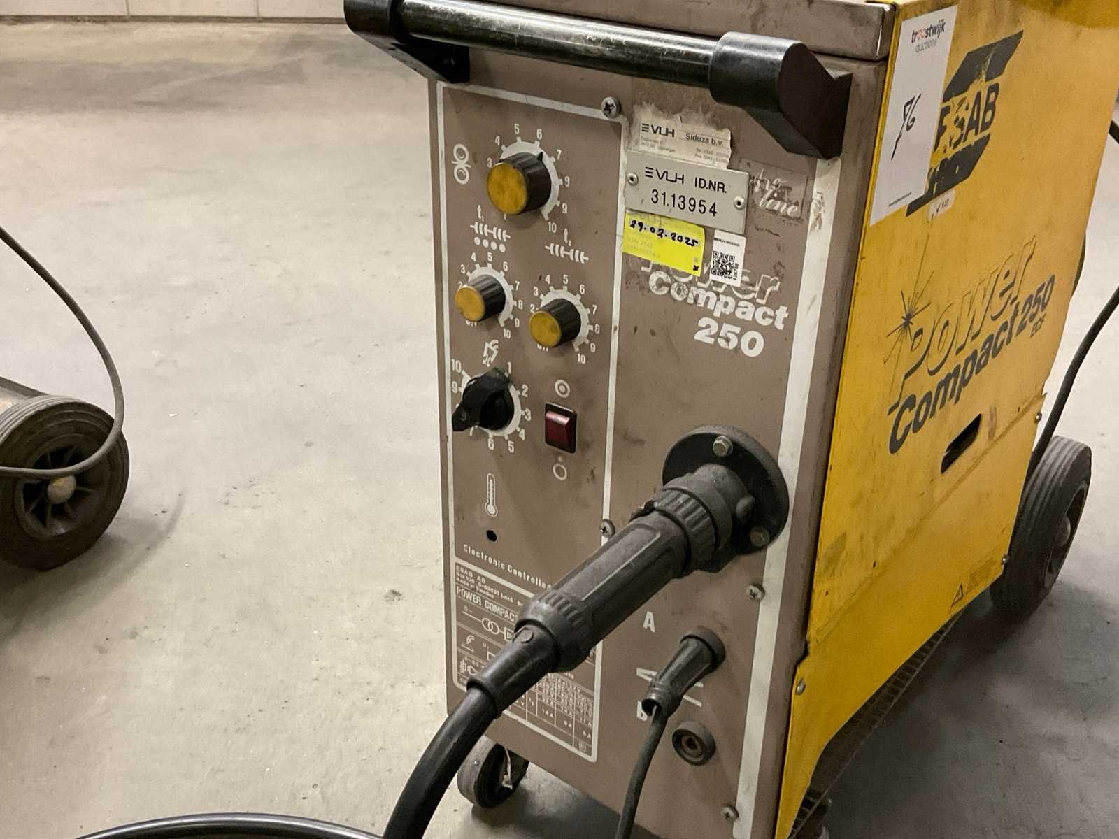 V.v. lastoorts Merk: ESAB Type: Power Compact 250 Mig type: true Ampère belasting: 250A Inschakelduur: 30% Aansluiting: 400V