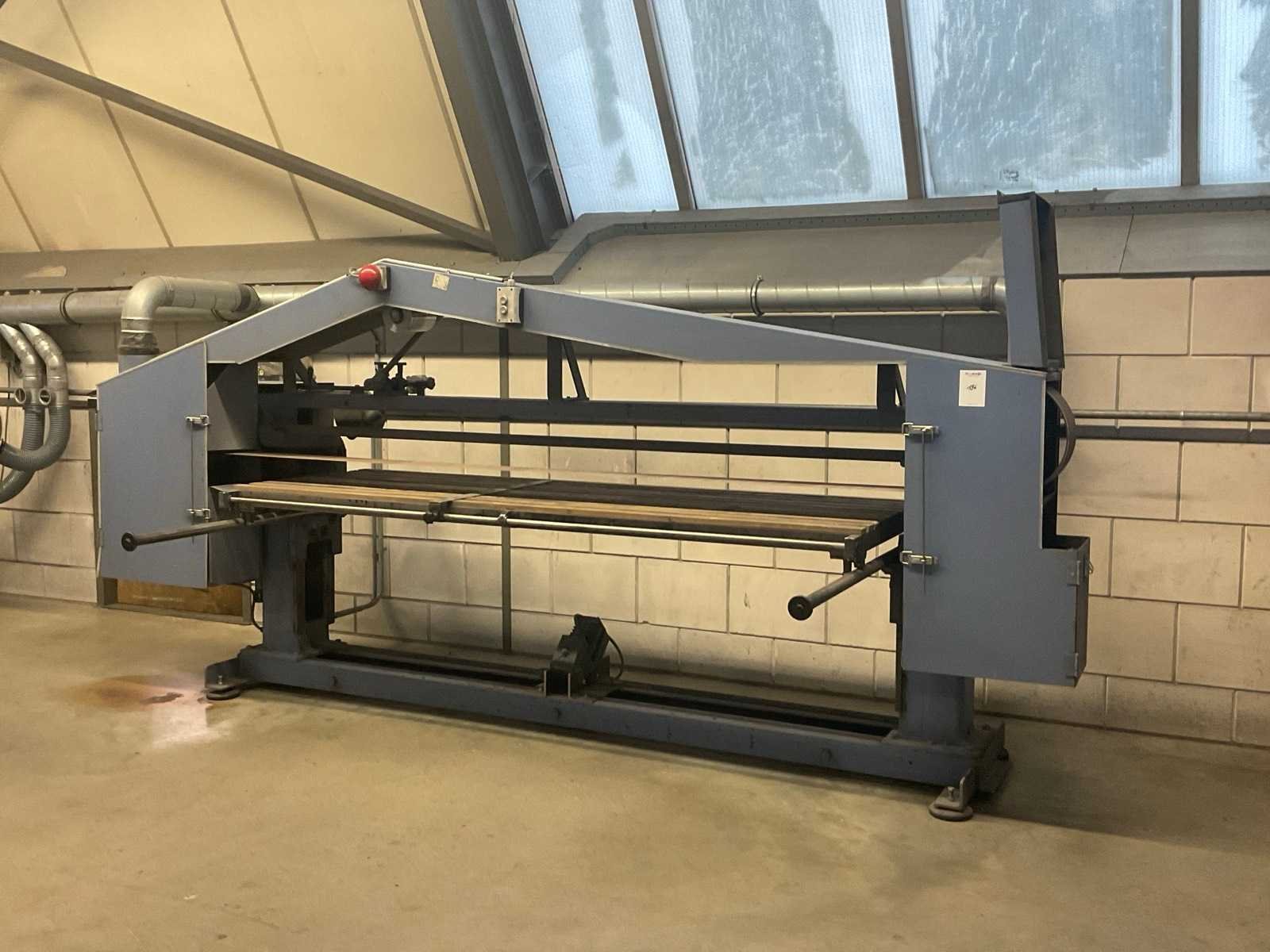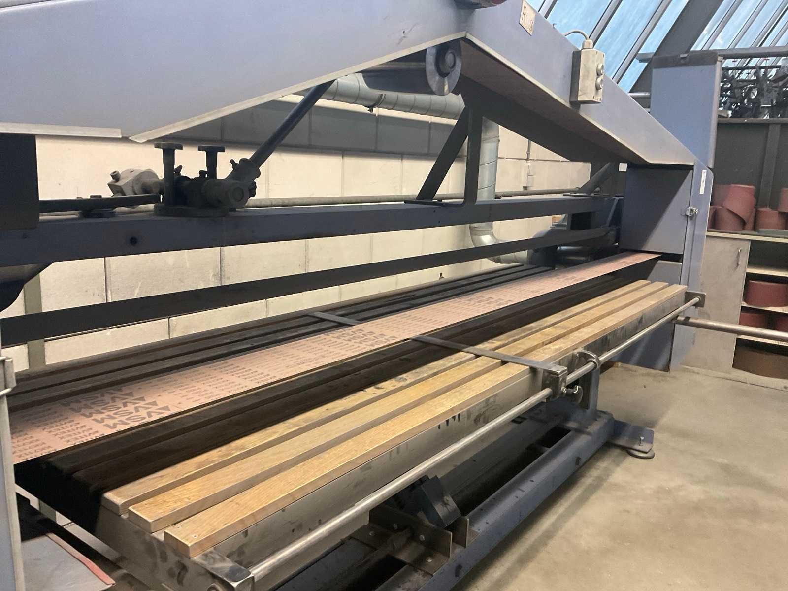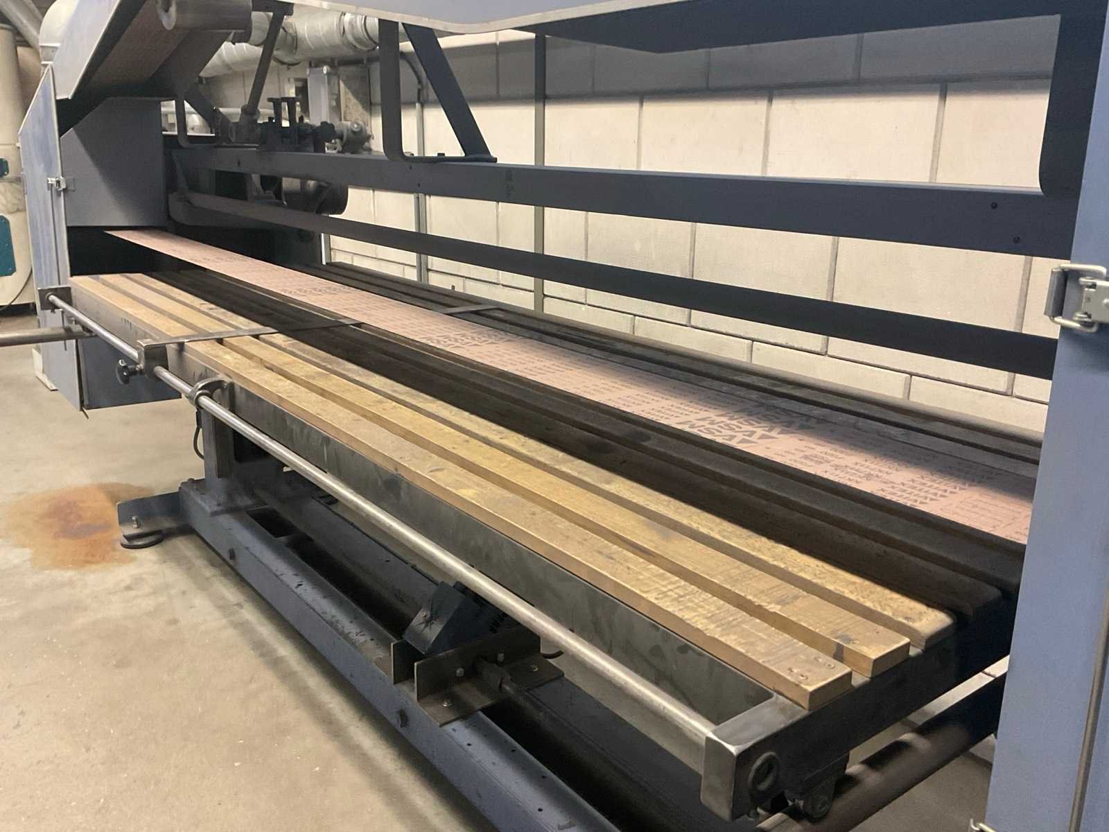 Tafel afm. ca. 2500x800 mm Merk: Fremeijer & Wijna Werkbreedte: 150mm Aansluiting: 400V Afmeting l: 3900mm Afmeting b: 1800mm Afmeting h: 1800mm