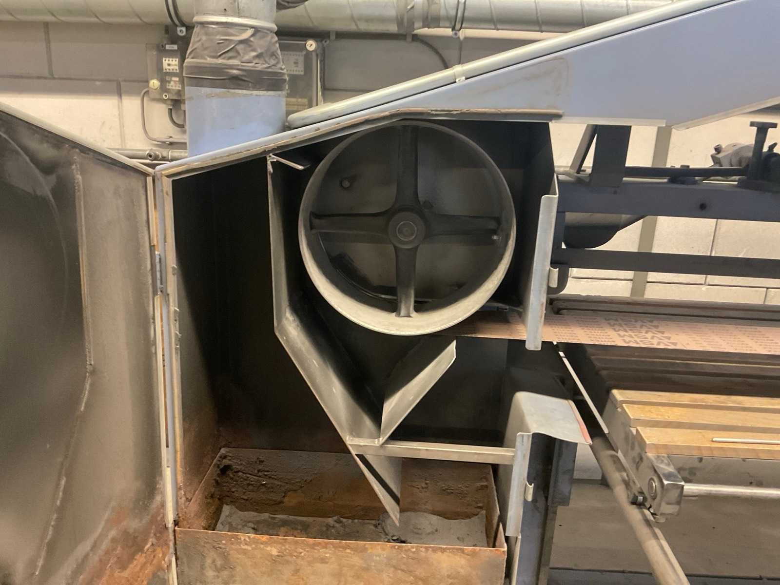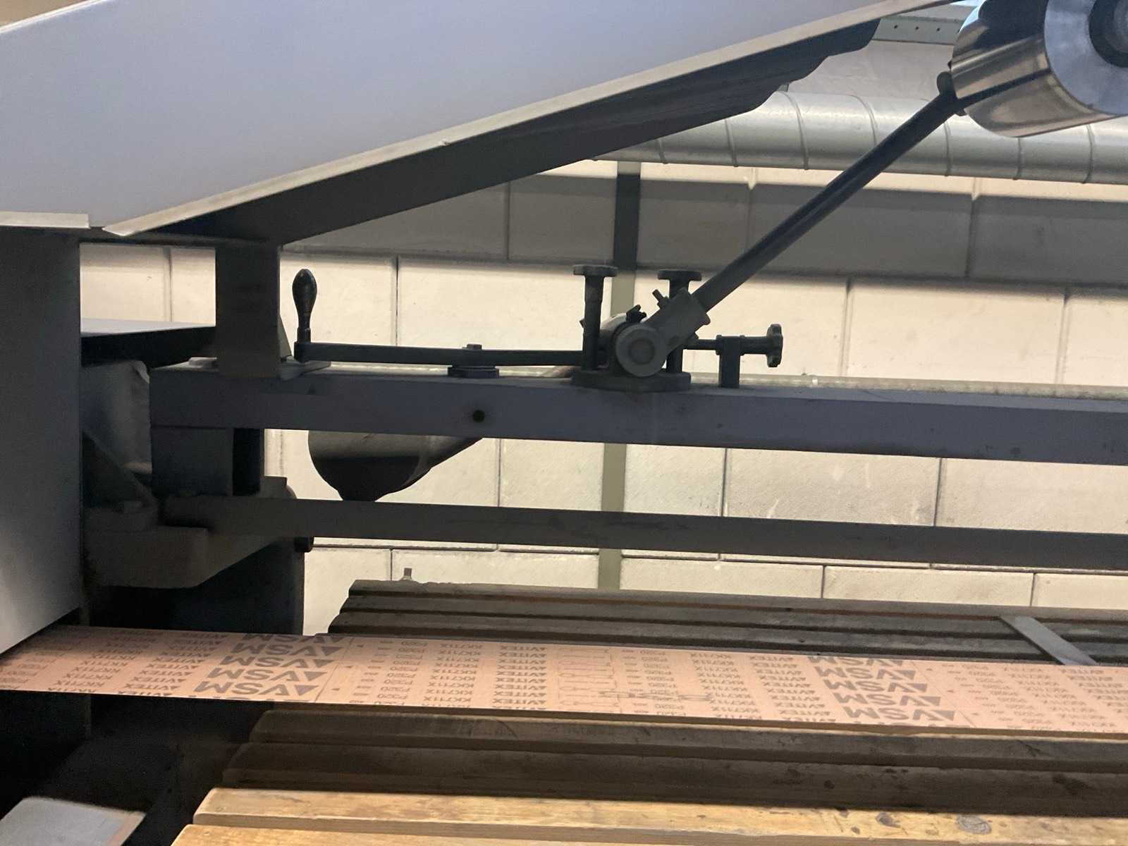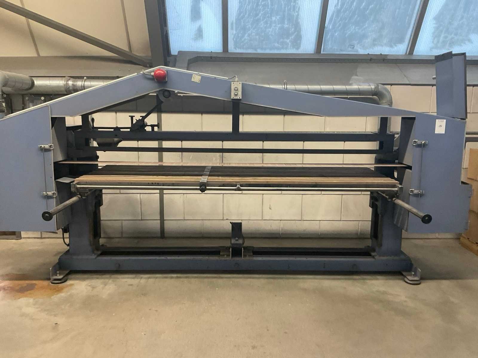 Tafel afm. ca. 2500x800 mm Merk: Fremeijer & Wijna Werkbreedte: 150mm Aansluiting: 400V Afmeting l: 3900mm Afmeting b: 1800mm Afmeting h: 1800mm