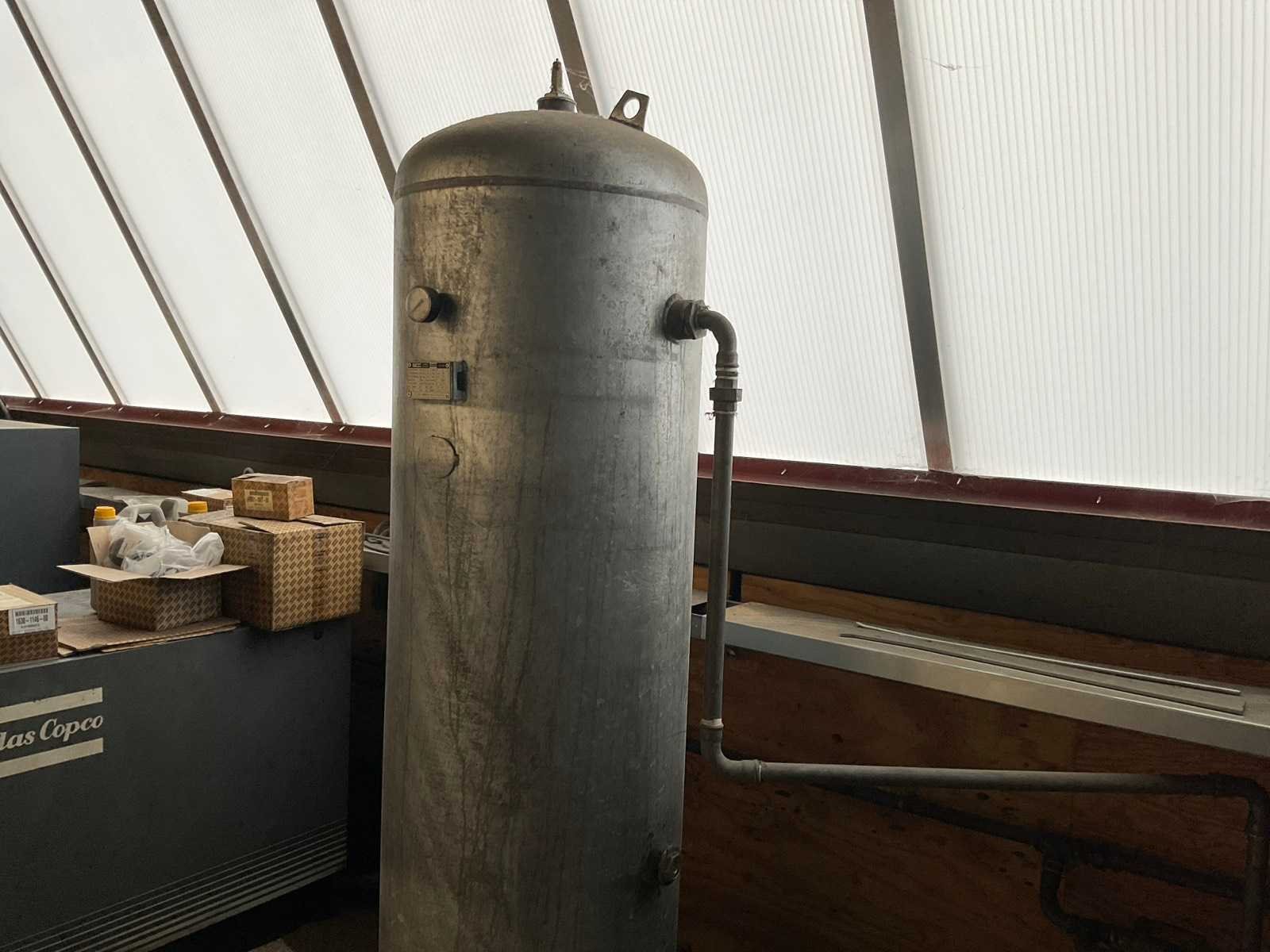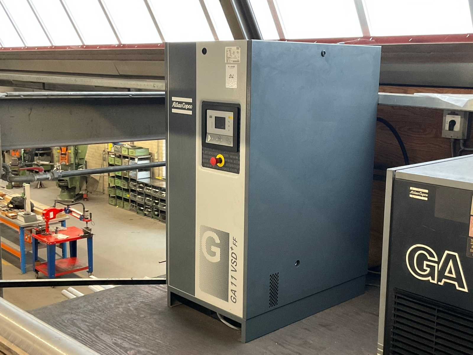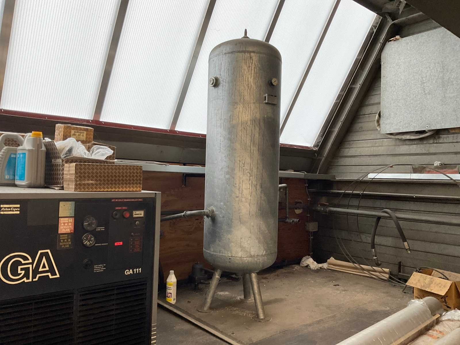 Afgelezen urenstand onbekend; incl. “Atlas Copco” schroefcompressor; type GA111 (Defect!) Merk: Atlas Copco Type: GA11VSD+FF Bouwjaar: 2017 Serienummer: API263634 Capaciteit.: 12.75bar Luchtstroom: 1950l/min Vermogen: 11kW Buffertank inhoud: 500l Afgelezen urenstand: 28041 Aansluiting: 400V Totale afmeting L: 630mm Totale afmeting Breedte: 1000mm Totale afmeting Hoogte: 1420mm