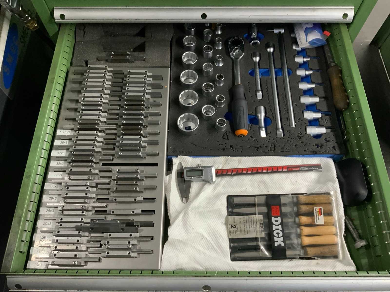 Voorzien van 1 Handy 40 montageblok, handgereedschap. Locatie: draaierij Lengte: 133cm Breedte: 715cm Hoogte: 100cm