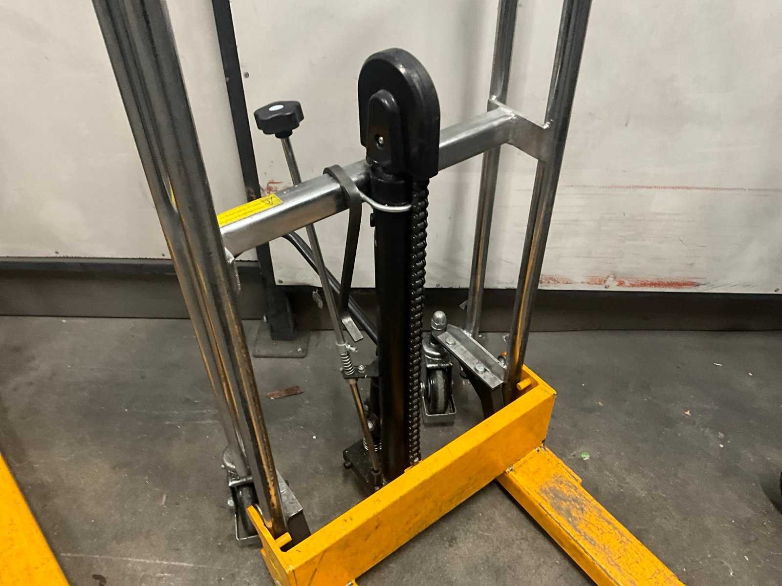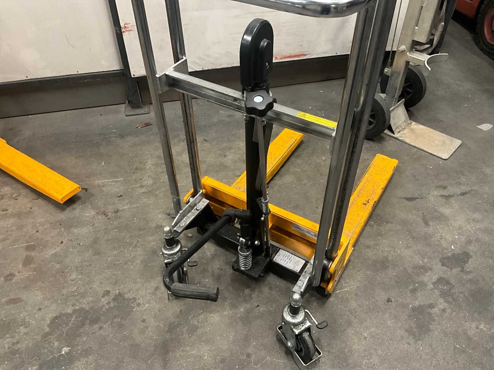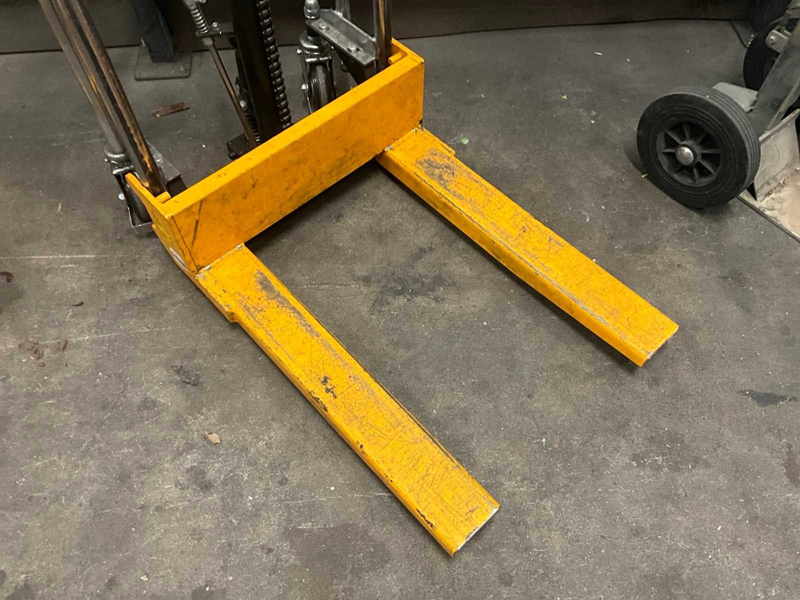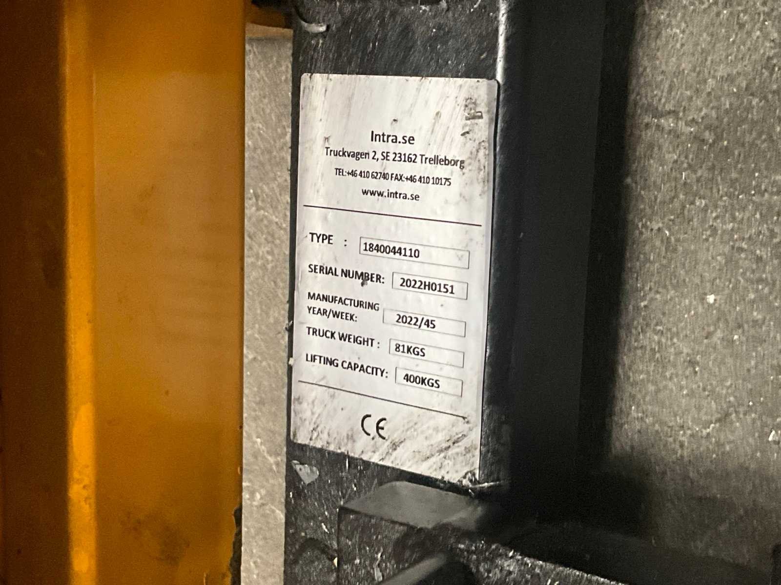 Merk: Intrase Bouwjaar: 2022 Hefvermogen: 400kg Lepellengte: 650mm Eigen gewicht: 81kg Minimale doorrijhoogte: 1430mm Totale afmeting L: 1150mm Totale afmeting Breedte: 570mm Totale afmeting Hoogte: 1430mm
