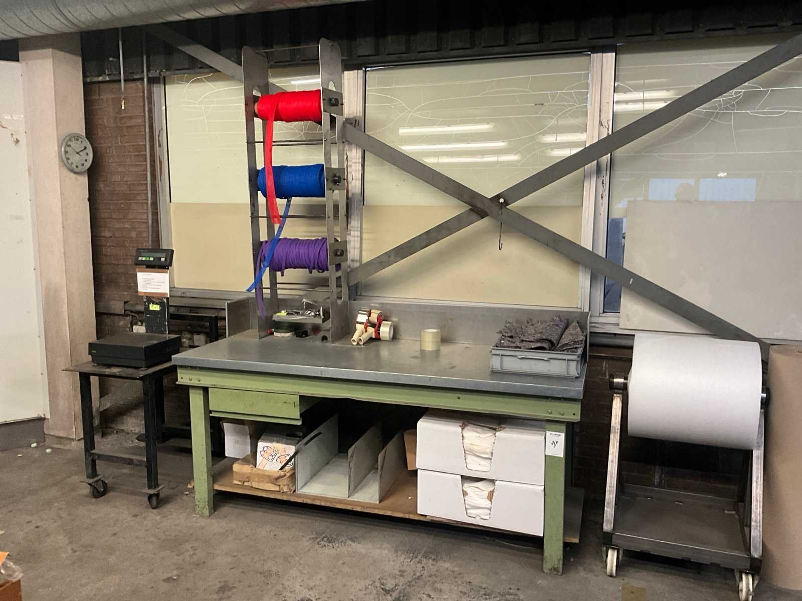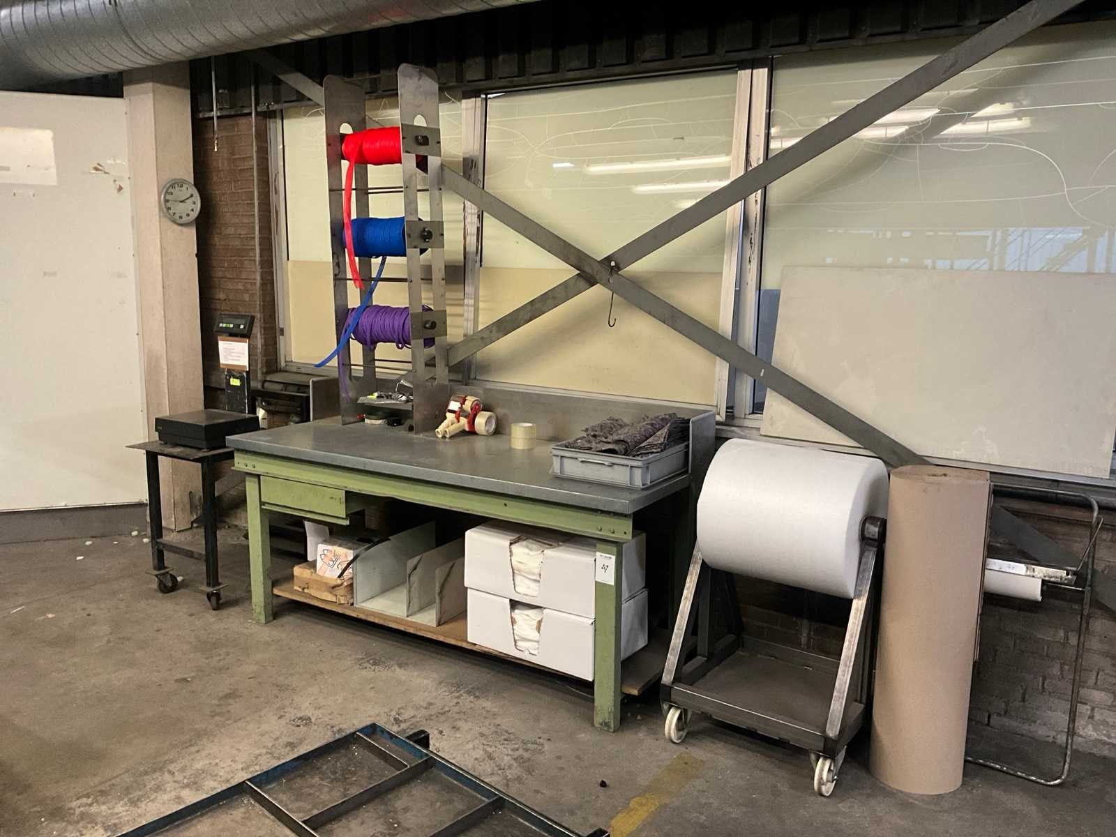 Voorzien van diverse verpakkingsmaterialen; inclusief verrijdbare werktafel met weegschaal Breedte: 750mm Lengte: 2000mm Hoogte: 1070mm