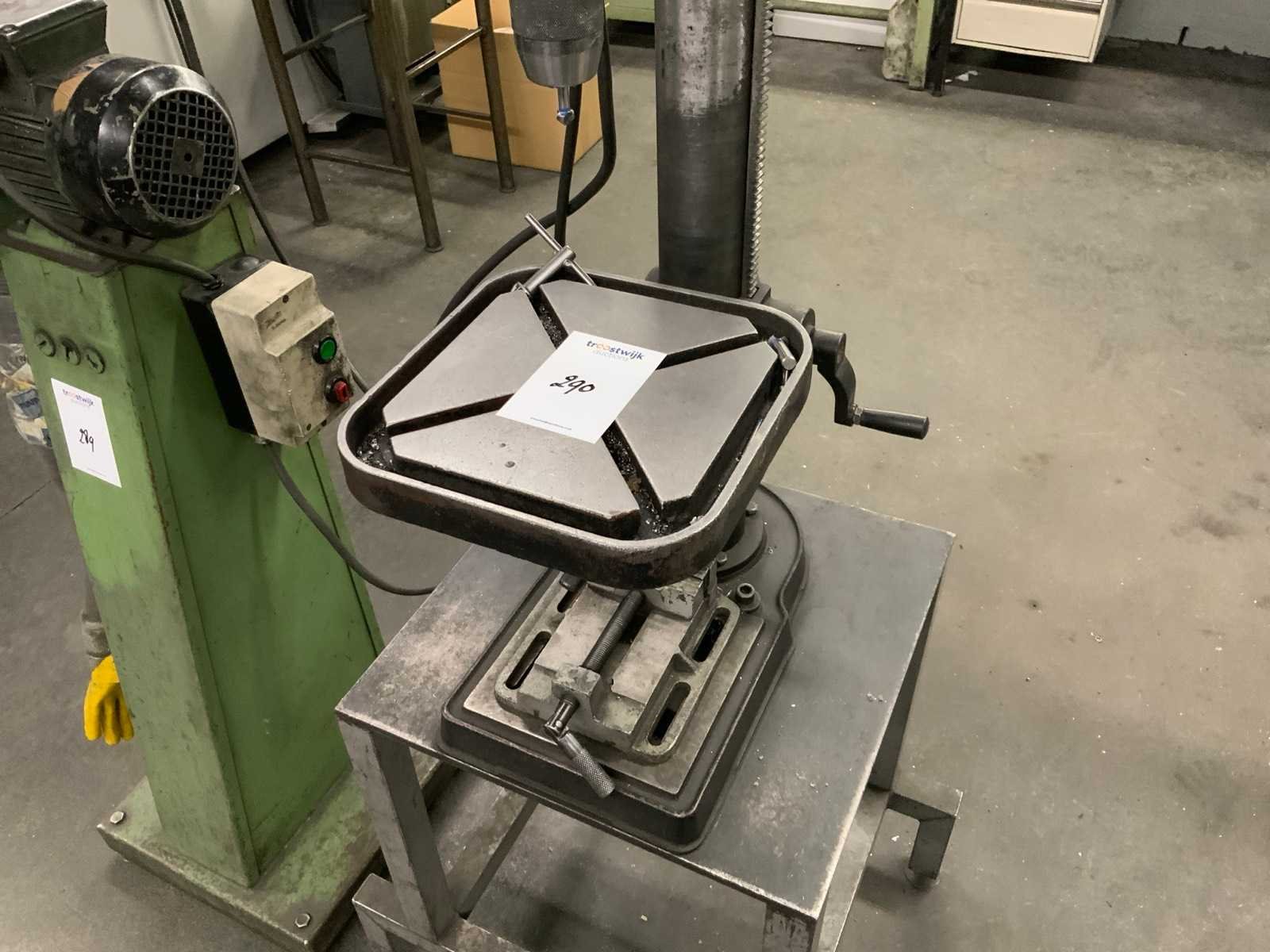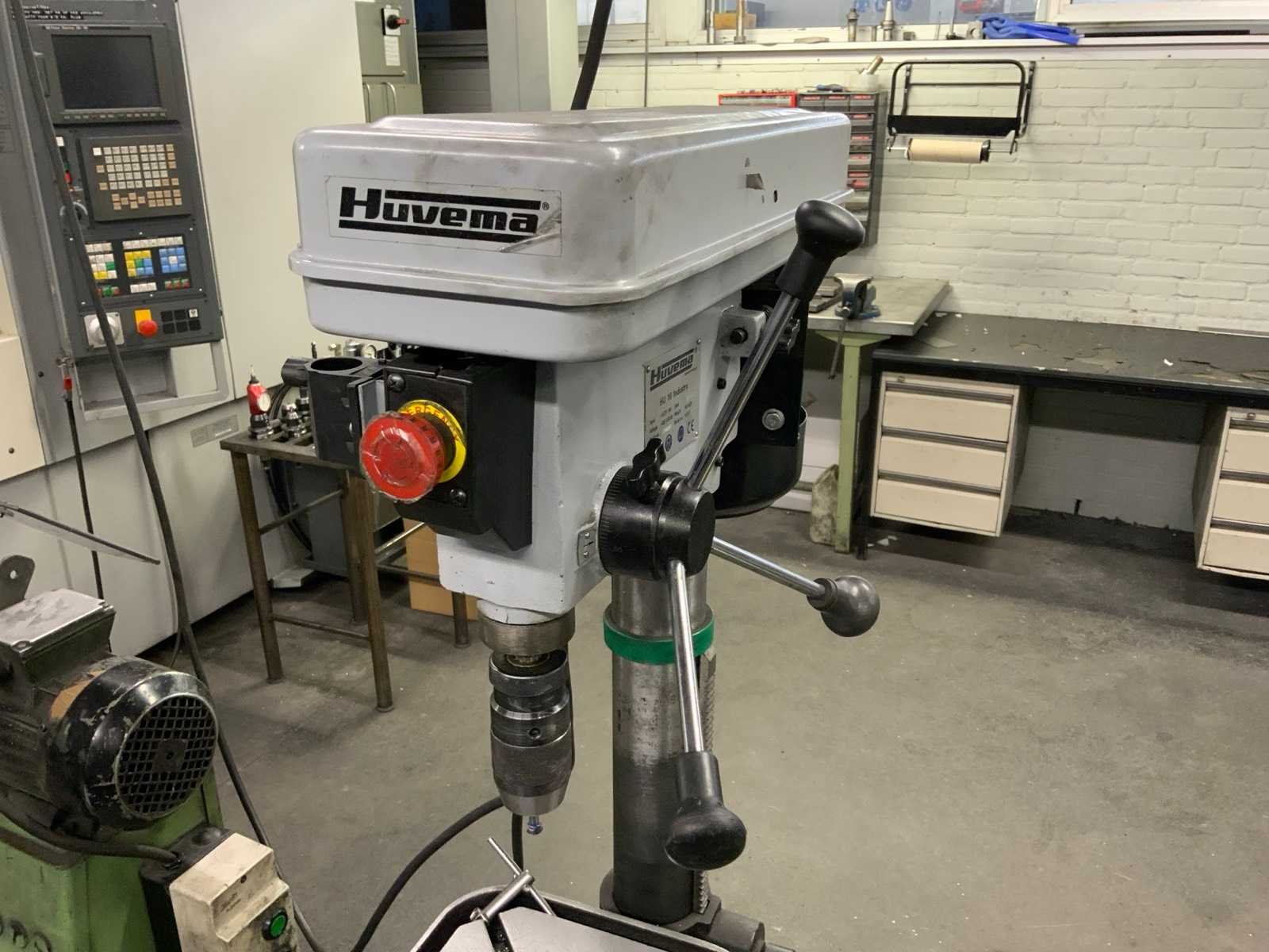 Inclusief boorklem Merk: Huvema Type: HU 16 Industrie Bouwjaar: 2002 Boorcapaciteit: 16mm Aantal snelheden: 16 Snelheid van n =: 230rpm Snelheid tot n =: 2730rpm Boordiepte: 80mm Uitlading: 170mm Tafel afmeting l: 265mm Tafel afmeting b: 265mm Aansluiting: 380V Afmeting l: 550mm Afmeting b: 670mm Afmeting h: 1590mm