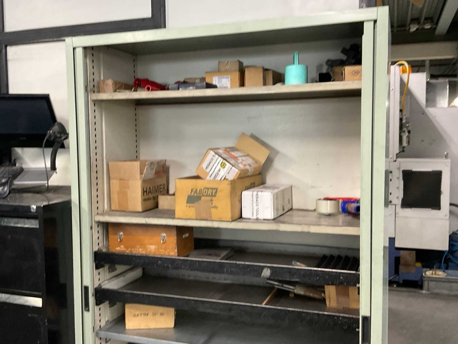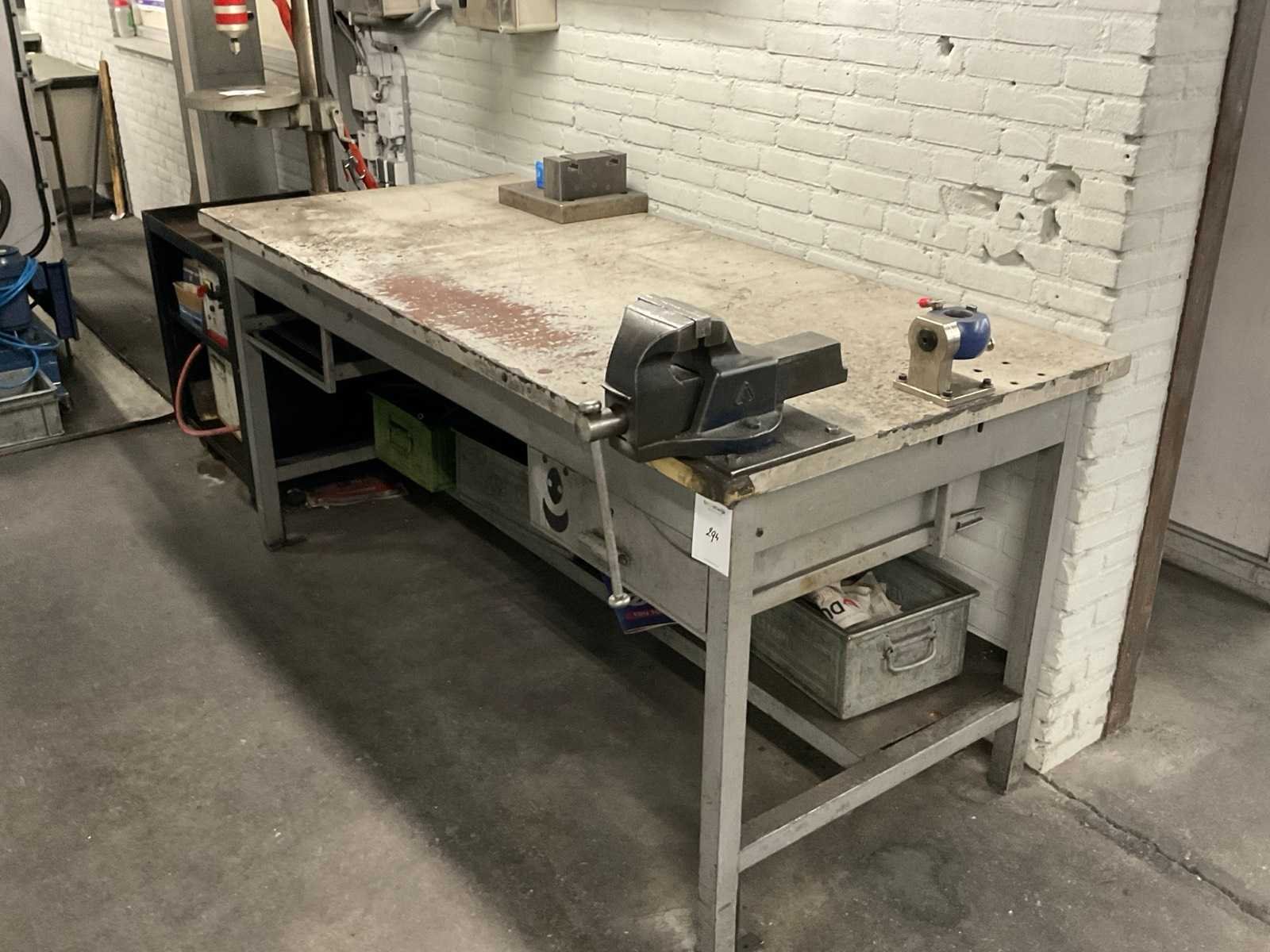 V.v. bankschroef; incl. werkplaatskast met inhoud Lengte: 200cm Breedte: 90cm Hoogte: 92cm