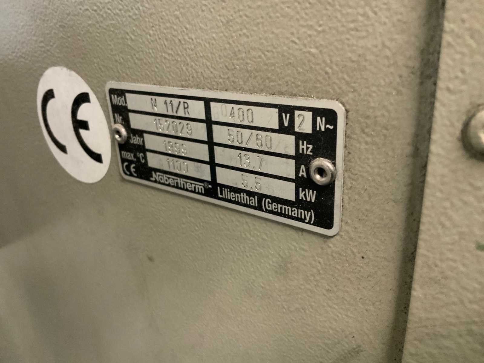 Voorzien van digitale aflezing, op stalen onderstel Merk: Nabertherm Type: N 11/R Bouwjaar: 1999 Kamer afmeting l: 400mm Kamer afmeting b: 230mm Kamer afmeting h: 140mm Temperatuurbereik max.: 1100°c Aansluiting: 400V Totale afmeting L: 700mm Totale afmeting Breedte: 670mm Totale afmeting Hoogte: 1410mm