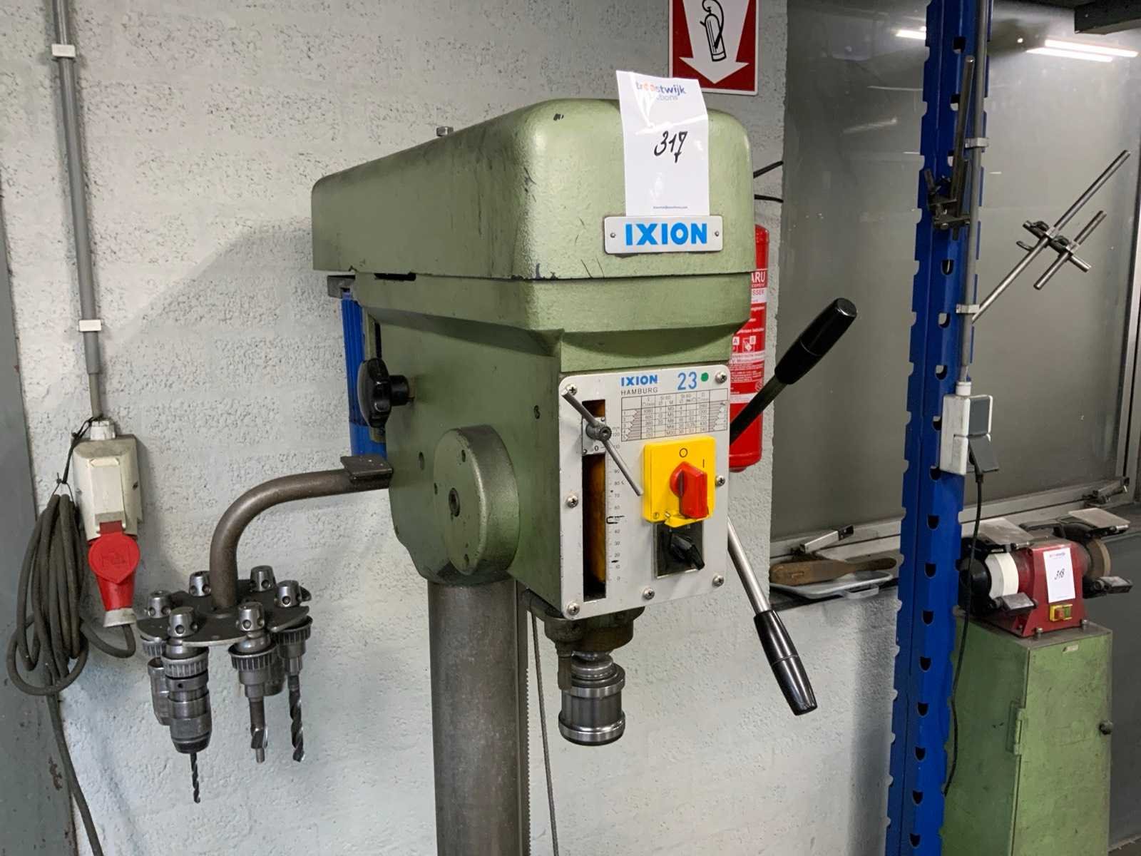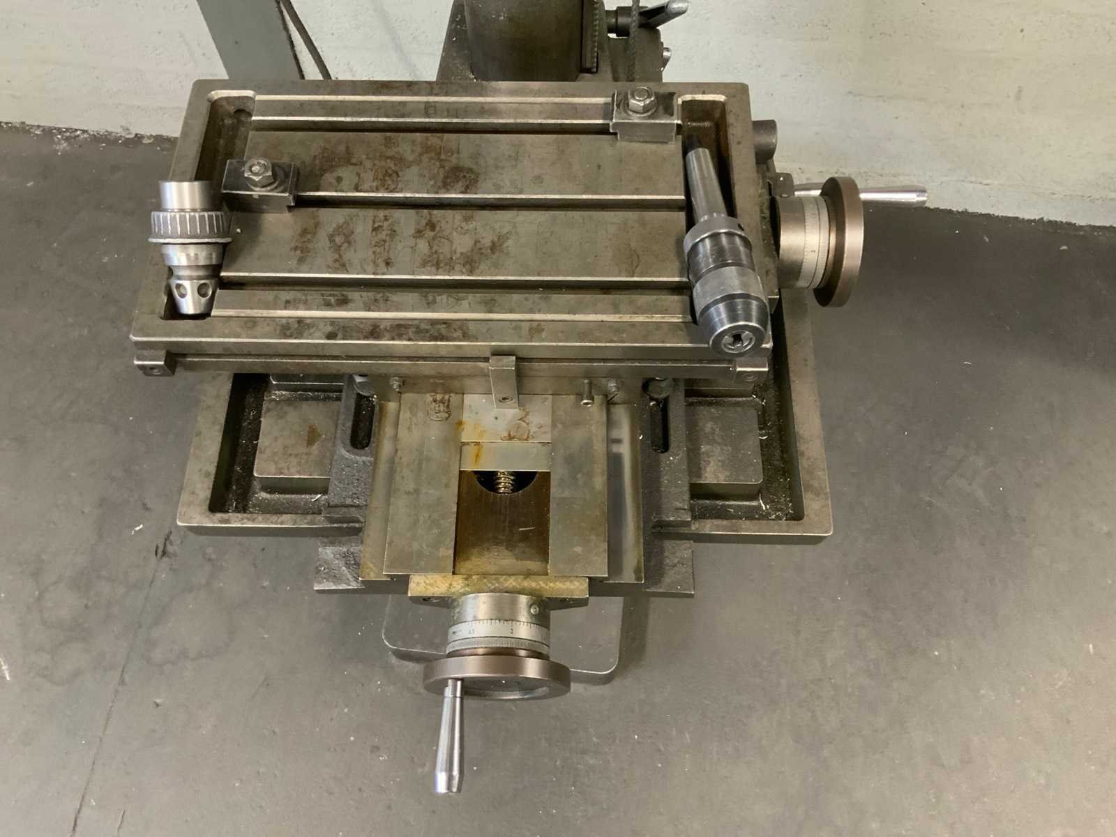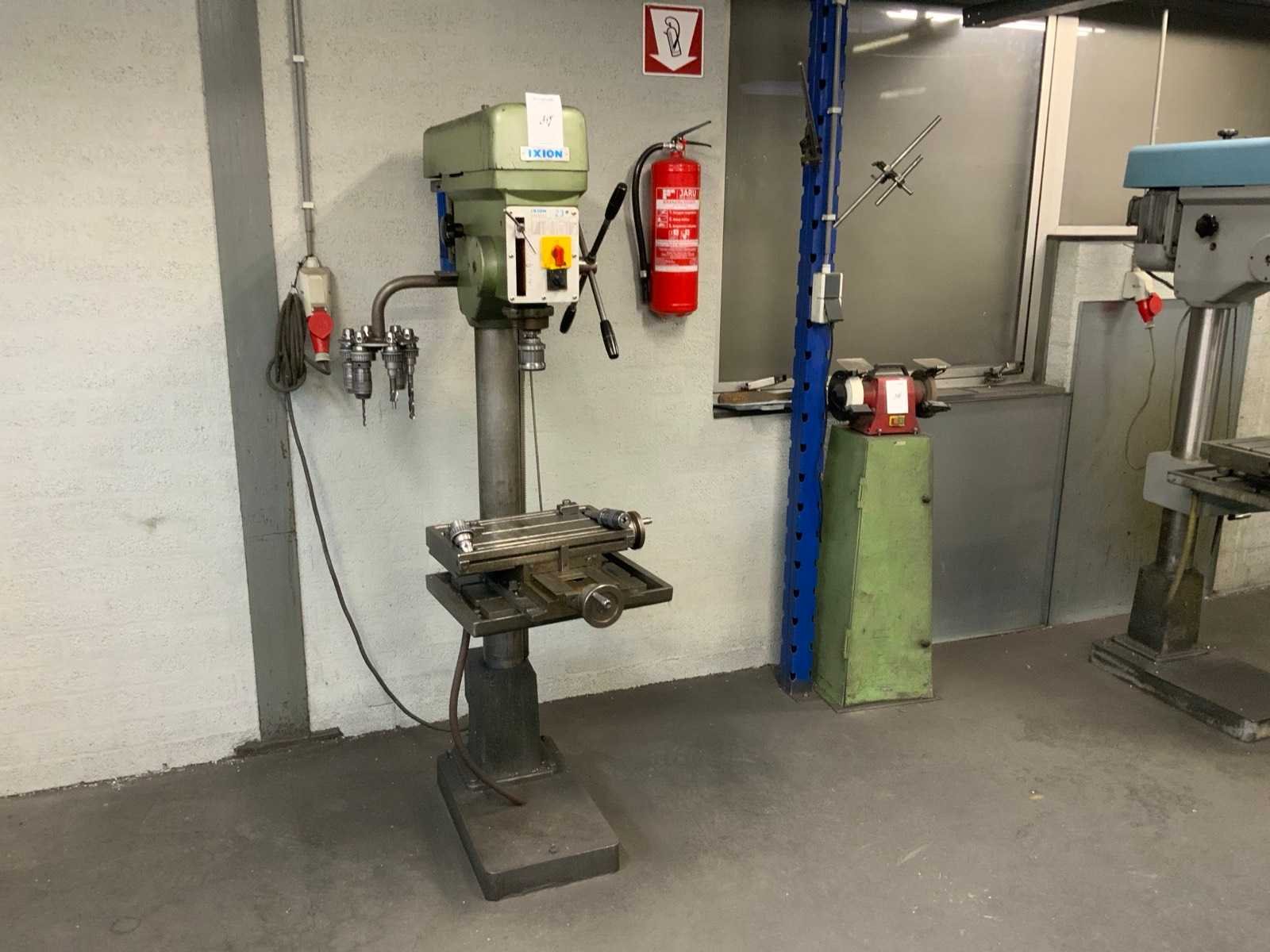 Voorzien van kruistafel en snelwissel adapter met toebehoren Merk: Ixion Type: 23 Serienummer: 00130952 Boorcapaciteit: 13mm Aantal snelheden: 10 Spindelsnelheid van n =: 120rpm Spindelsnelheid tot n =: 2160rpm Boordiepte: 120mm Uitlading: 260mm Opname mc: 3 Tafel afmeting l: 500mm Tafel afmeting b: 350mm Aansluiting: 400V Afmeting l: 1060mm Afmeting b: 620mm Afmeting h: 1800mm