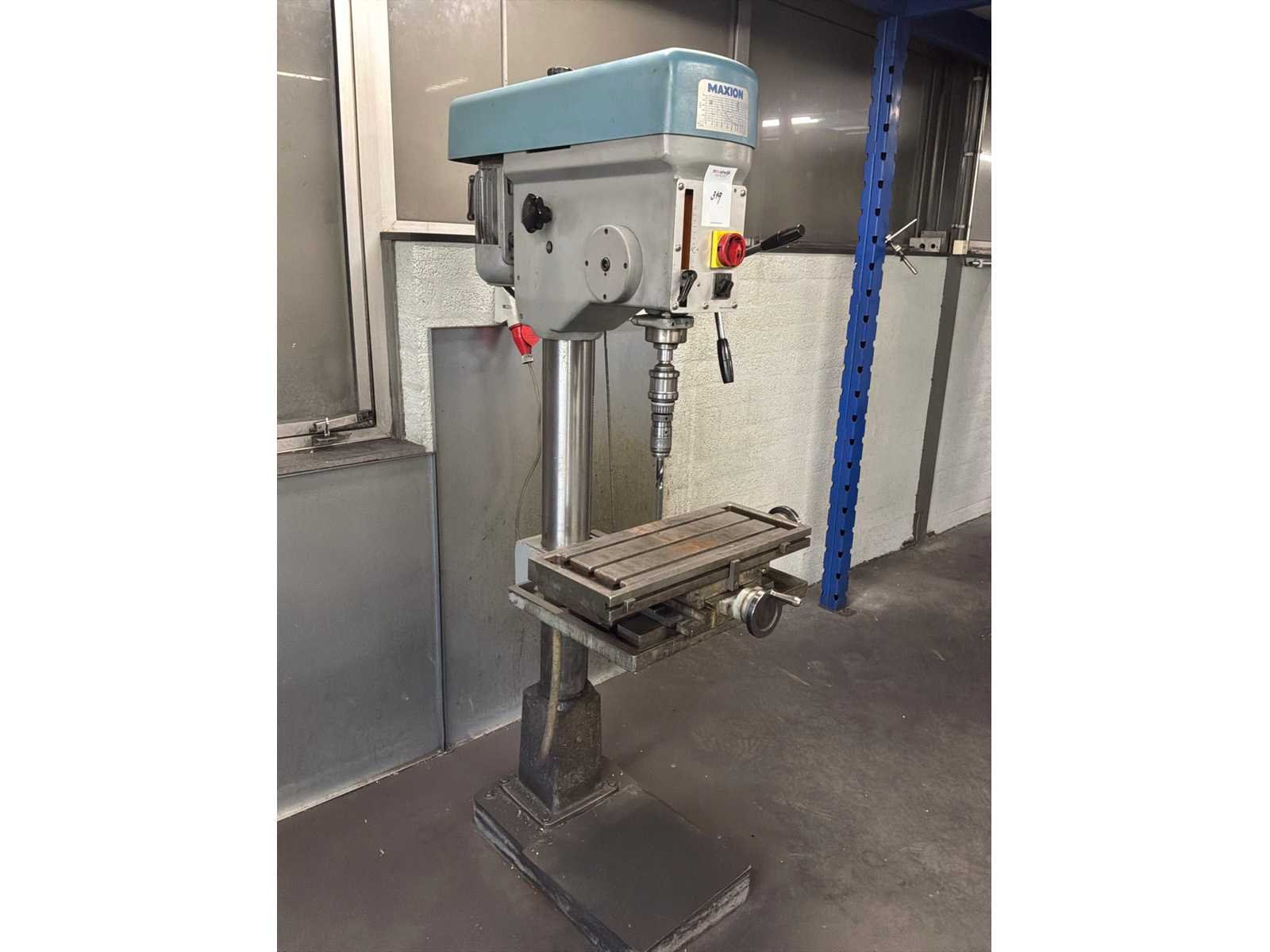 Merk: Maxion Type: BS 35 Boorcapaciteit: 35mm Boordiepte: 150mm Uitlading: 275mm Tafel afmeting l: 550mm Tafel afmeting b: 400mm Motorvermogen (kW): 2.3kW Aansluiting: 400V Afmeting l: 750mm Afmeting b: 800mm Afmeting h: 1850mm