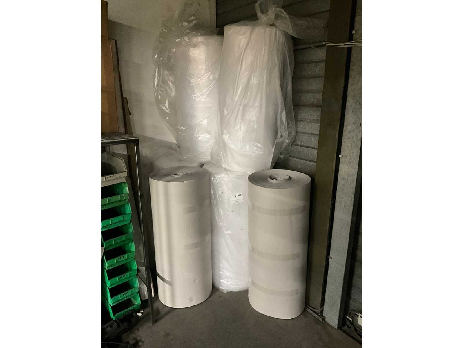 In diverse afmetingen; op 5 pallets; inclusief rollen noppenfolie en papier