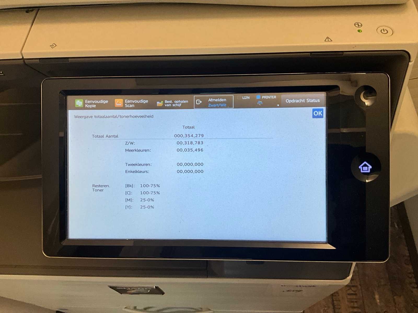 Max. Papierformaat A3 Merk: Sharp Model: MX-3070 Lengte: 90cm Breedte: 60cm Hoogte: 125cm