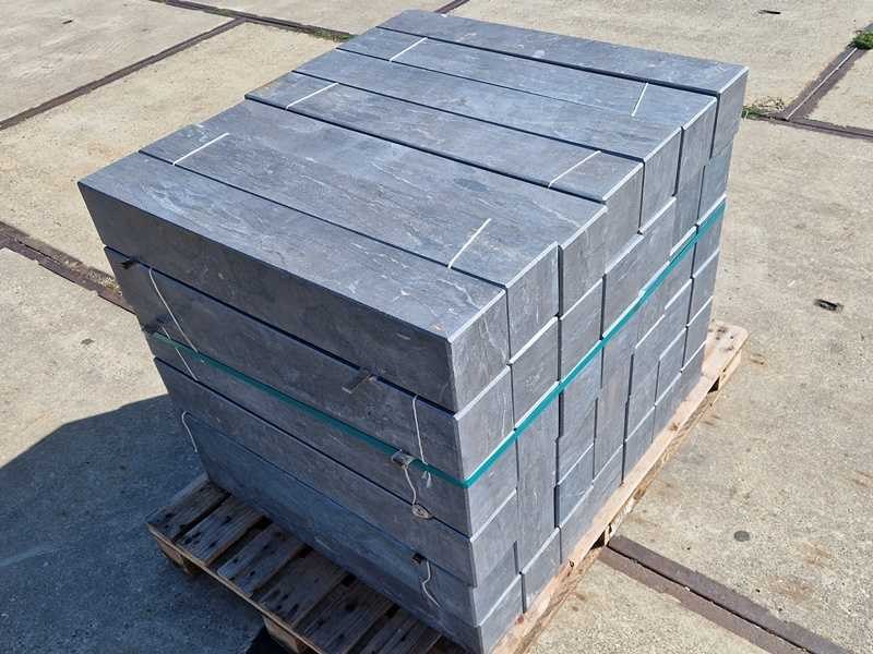 Afmetingen circa 70 cm x 12 cm x 12 cm. Natuursteen. Aantal pallets: 1. benaming: Chinees hardsteen verzoet. U kunt deze kavel afhalen in Hulst op 18 februari. Daarvoor moet u uiterlijk 8 februari uw factuur van Troostwijk betaald hebben. Bij betaling ná deze datum blijft uw kavel bij de verkoper staan en is afhalen in Hulst enkel mogelijk op afspraak. U kunt deze kavel ook laten bezorgen. De kosten bedragen voor dit kavel €110,00 exclusief BTW. Wilt u meerdere kavels laten bezorgen? Vanaf het tweede tot en met de vijfde kavel betaalt u €75,00 euro ex BTW per kavel. Voor 6 kavels of meer betaalt u een vast bedrag van €450,00 ex BTW. Levering vindt alleen plaats in Nederland. Kosten bezorging op de Waddeneilanden en België op aanvraag. Voor het laten bezorgen van uw kavel(s) dient u zelf uiterlijk 8 februari contact op te nemen via e-mail, veiling@dbtrading.nl . Bezorginformatie: Het losadres moet goed bereikbaar zijn voor een vrachtwagen met trailer waarop een kraan is bevestigd. Deze kraan kan de pallets maximaal 4 meter vanaf de wagen lossen. Hiermee dient u rekening te houden i.v.m. het vrijhouden van de losplaats. De chauffeur heeft geen palletwagen tot zijn beschikking. Kleur: Chinees hardsteen grijs Lengte: 70cm Breedte: 12cm Hoogte: 12cm Materiaal: Muurblokken voor de tuin