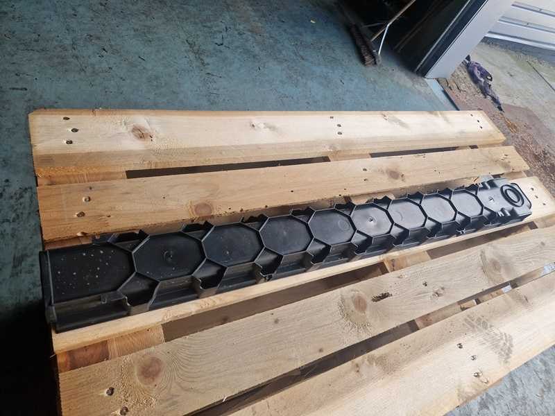 Afmetingen van de buiten maat (breed x hoog x lang) circa 10,5 cm x 5 cm x 100 cm. Type omschrijving: Goten van kunststof met een afneembaar kunststof deksel. inclusief 4sets eindstukken. Aantal pallets: 1. U kunt deze kavel afhalen in Hulst op 18 februari. Daarvoor moet u uiterlijk 8 februari uw factuur van Troostwijk betaald hebben. Bij betaling ná deze datum blijft uw kavel bij de verkoper staan en is afhalen in Hulst enkel mogelijk op afspraak. U kunt deze kavel ook laten bezorgen. De kosten bedragen voor dit kavel €110,00 exclusief BTW. Wilt u meerdere kavels laten bezorgen? Vanaf het tweede tot en met de vijfde kavel betaalt u €75,00 euro ex BTW per kavel. Voor 6 kavels of meer betaalt u een vast bedrag van €450,00 ex BTW. Levering vindt alleen plaats in Nederland. Kosten bezorging op de Waddeneilanden en België op aanvraag. Voor het laten bezorgen van uw kavel(s) dient u zelf uiterlijk 8 februari contact op te nemen via e-mail, veiling@dbtrading.nl . Bezorginformatie: Het losadres moet goed bereikbaar zijn voor een vrachtwagen met trailer waarop een kraan is bevestigd. Deze kraan kan de pallets maximaal 4 meter vanaf de wagen lossen. Hiermee dient u rekening te houden Kleur: Zwart Lengte: 10.5cm Breedte: 5cm Hoogte: 100cm Materiaal: Afvoergoten voor de tuin