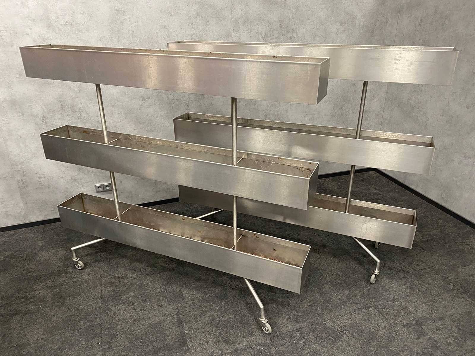 3x rvs verrijdbare divider/ plantenbak
