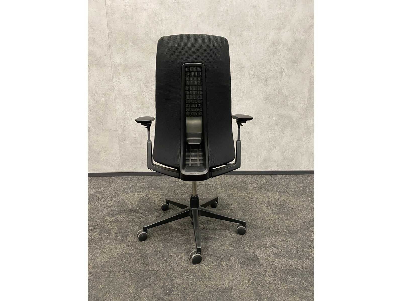 V.v. 4D verstelbare armleggers, zithoogte en zitdiepte instelbaar, verstelbare lendensteun, kantelmechanisme, netweave rugbekleding Merk: Haworth Fern Kleur: zwart