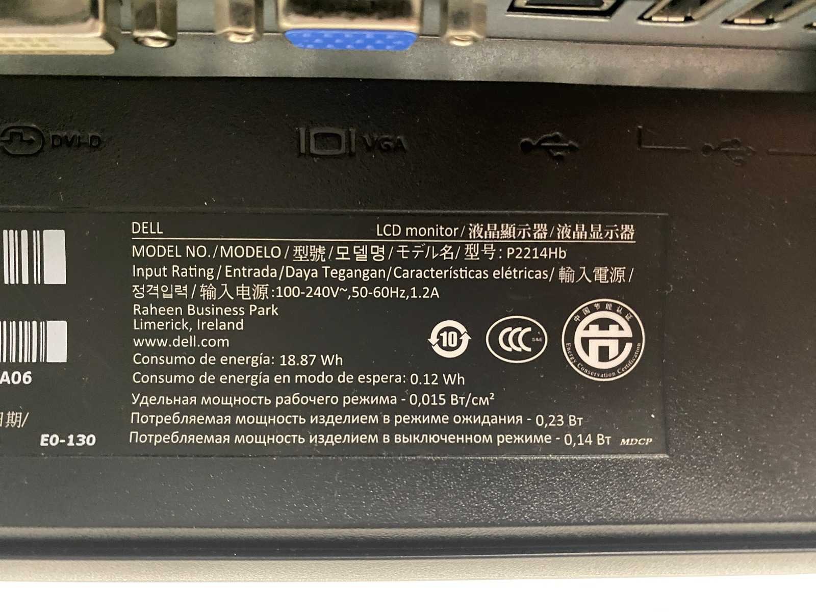 V.v. ergonomisch verstelbare zwart metalen dubbele monitorarm v.v. bureauklem. Merk: Dell P2214 Met voedingskabel: true
