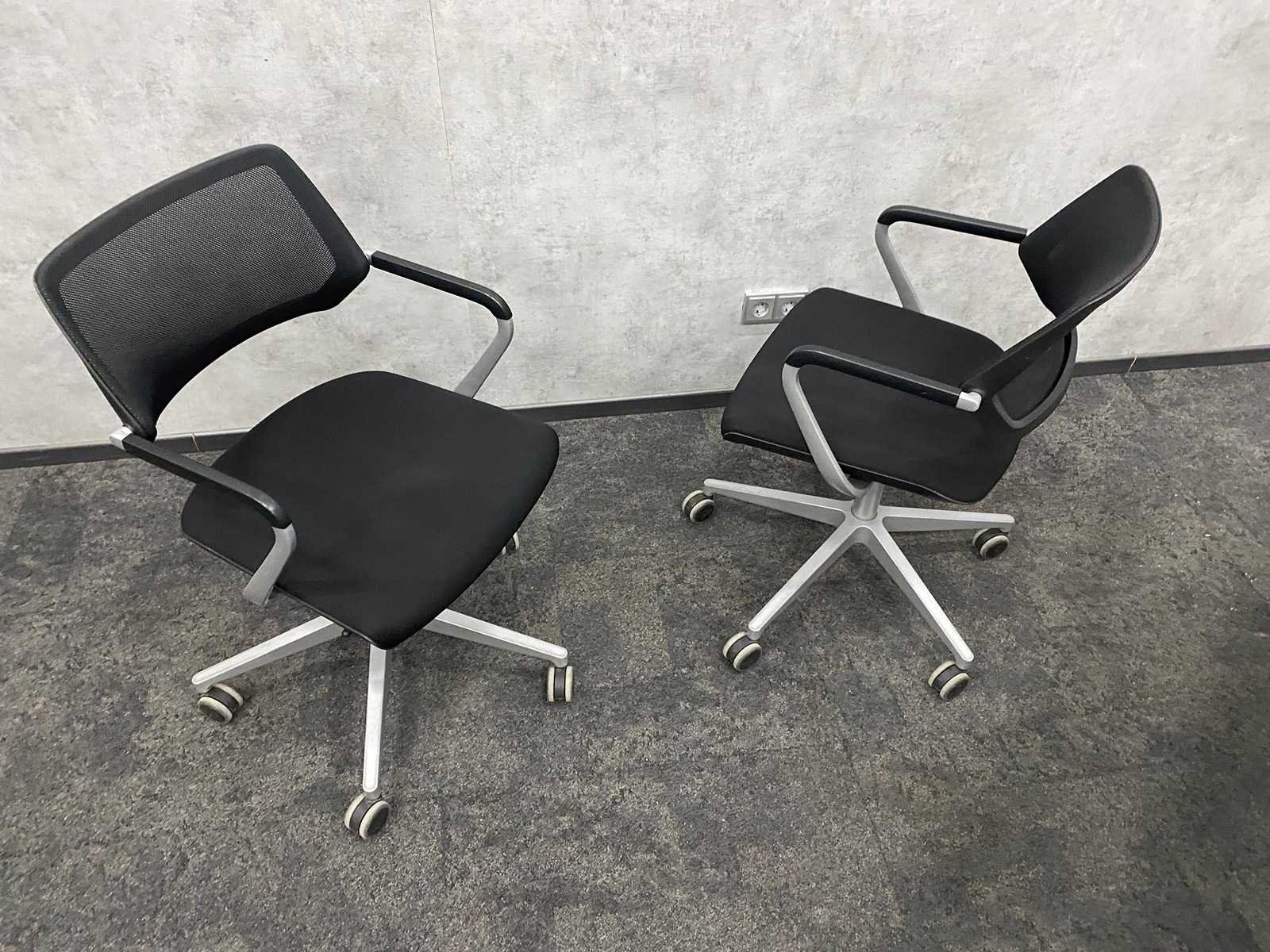 Verrijdbare stoelen Merk: Gispen/ Steelcase Kleur: zwart, wit, chroom Lengte: 180cm Breedte: 100cm Hoogte: 75cm