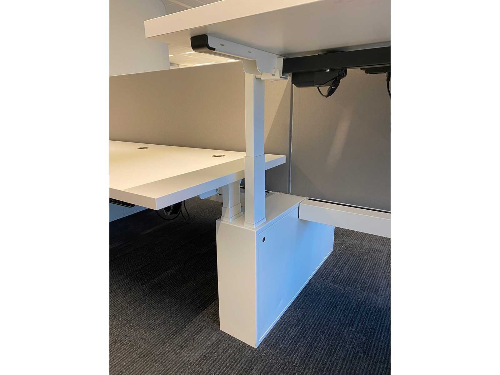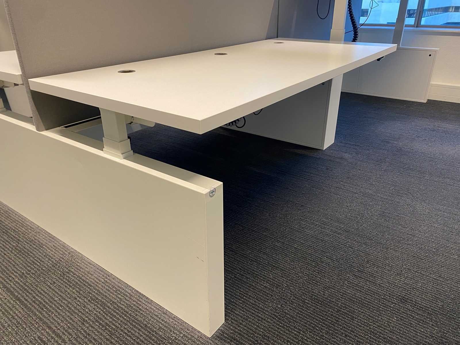 Kavel bestaande uit 1x Vepa 4p workbench en 4x WeWork bureaustoel. ----- Bureaustoel v.v. in hoogte instelbare armleggers, zithoogte instelbaar, kantelmechanisme rugleuning, netweave rugbekleding. ----- Workbench v.v. akoestische grijze scheidingswanden, kabeldoorvoer, draadgoot. Totale afmeting workbench ca. hoogte 65 tot 131 cm. - breed 360 cm. - diep 168 cm. ----- Workbench is reeds volledig professioneel gedemonteerd en onverpakt. ----- bladafmeting per bureau is ca. 180x80 cm. Merk: Vepa Zit-sta: true Elektrisch verstelbaar: true