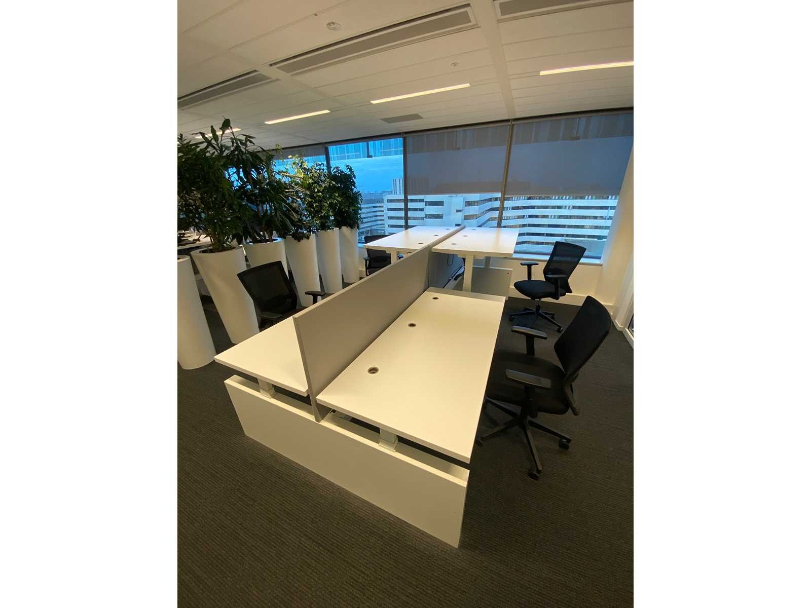 Kavel bestaande uit 1x Vepa 4p workbench en 4x WeWork bureaustoel. ----- Bureaustoel v.v. in hoogte instelbare armleggers, zithoogte instelbaar, kantelmechanisme rugleuning, netweave rugbekleding. ----- Workbench v.v. akoestische grijze scheidingswanden, kabeldoorvoer, draadgoot. Totale afmeting workbench ca. hoogte 65 tot 131 cm. - breed 360 cm. - diep 168 cm. ----- Workbench is reeds volledig professioneel gedemonteerd en onverpakt. ----- bladafmeting per bureau is ca. 180x80 cm. Merk: Vepa Zit-sta: true Elektrisch verstelbaar: true