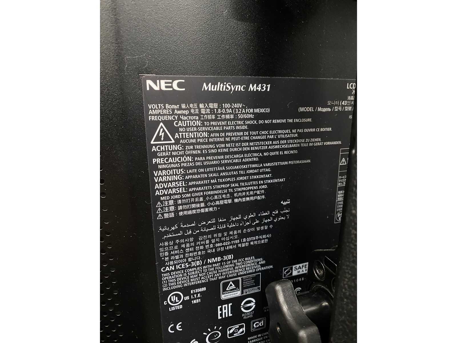 NEC display nieuwprijs ca. €4500,- ---- kavel bestaat uit NEC display met statief en afstandsbediening Merk: NEC MultiSync M431 PCAP Afstandsbediening: true