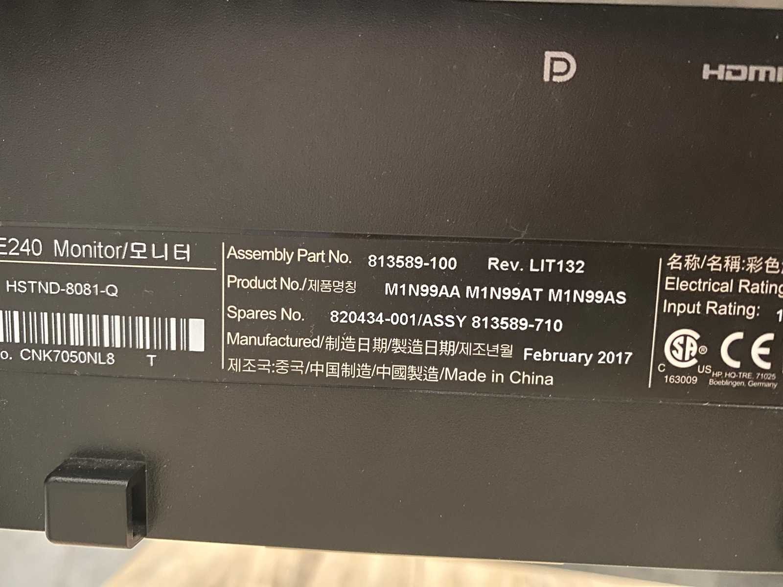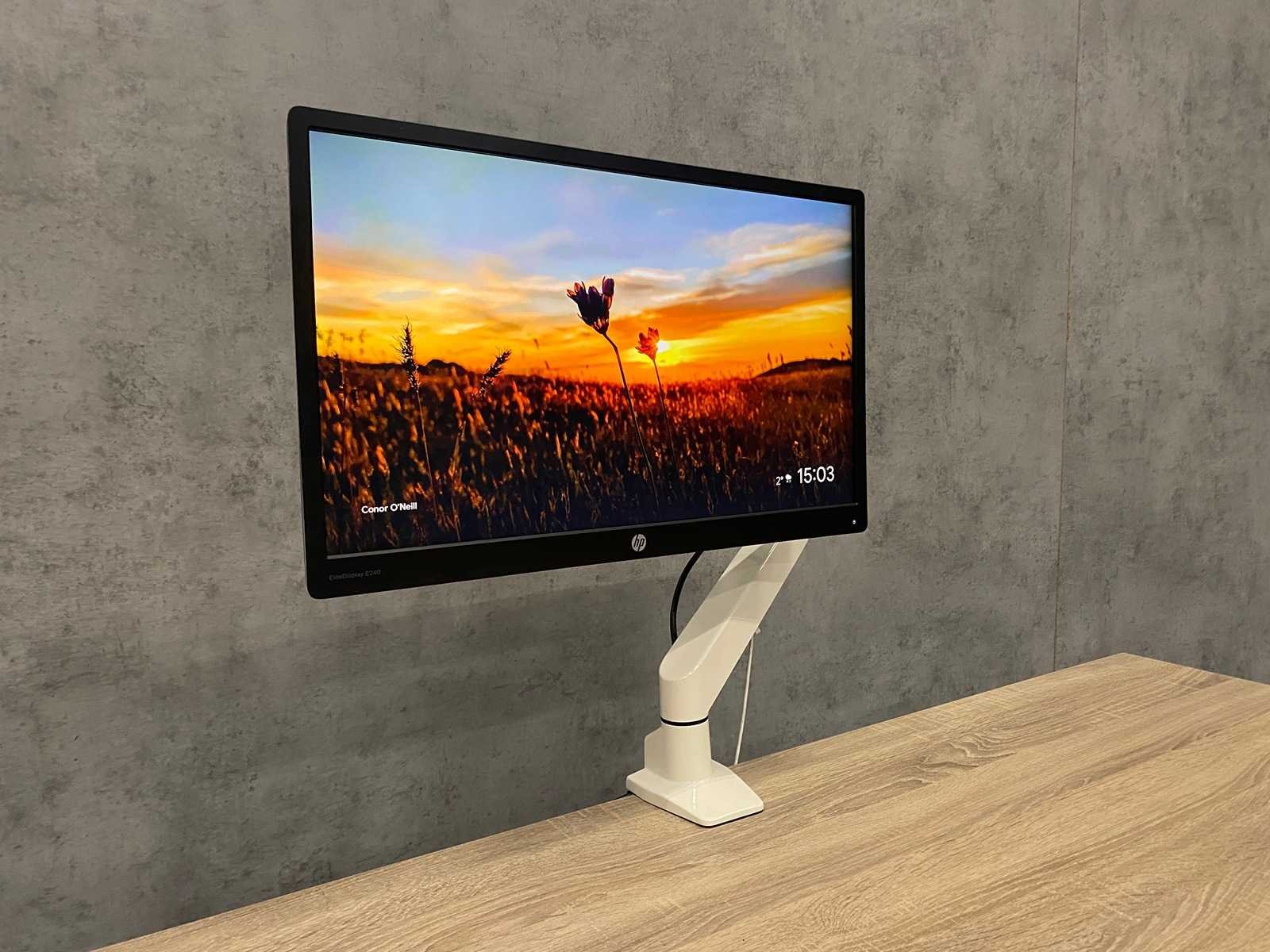 Met ergonomisch verstelbare monitorarm v.v. bureauklem. Merk: HP E240 Met voedingskabel: true