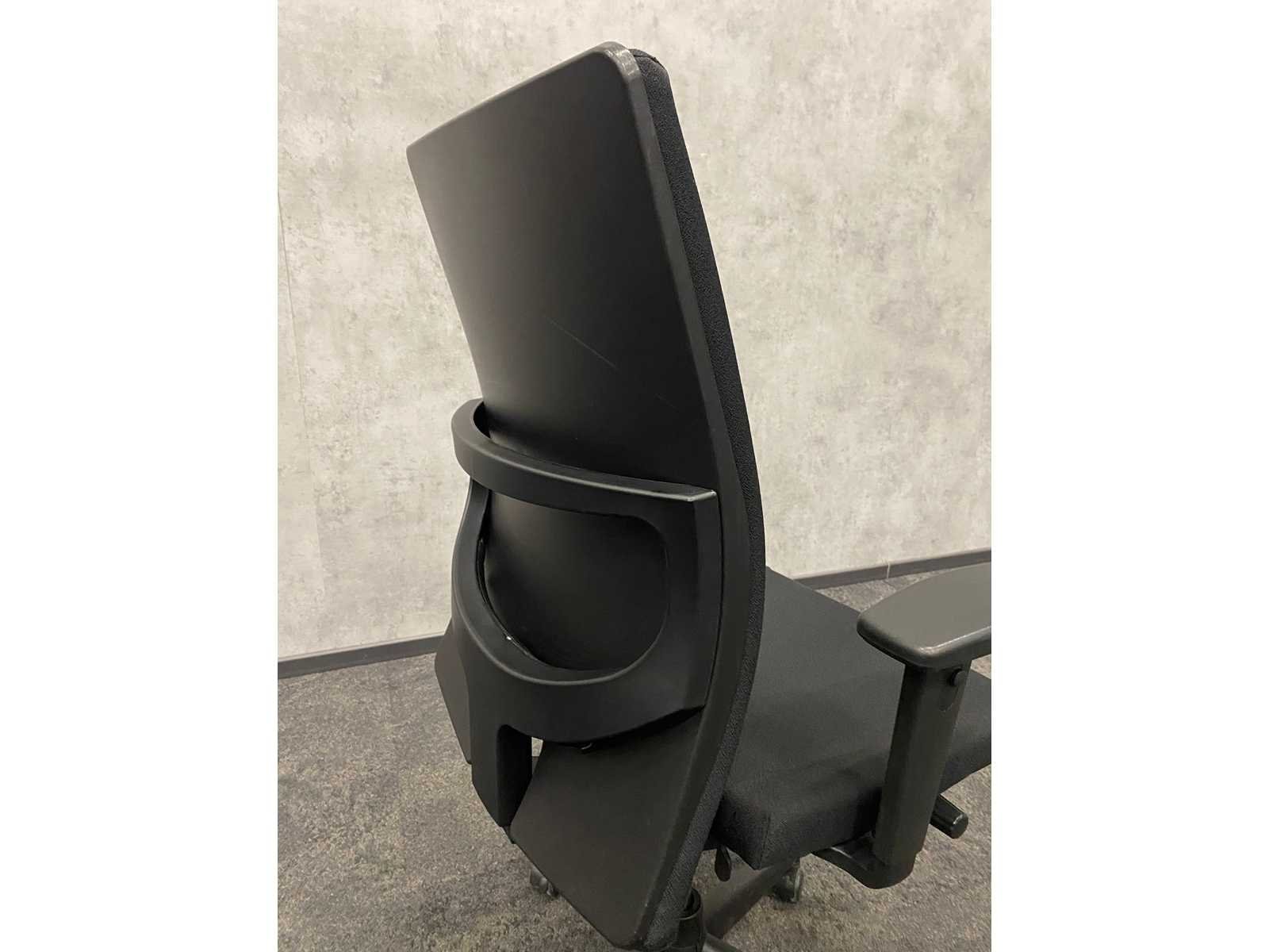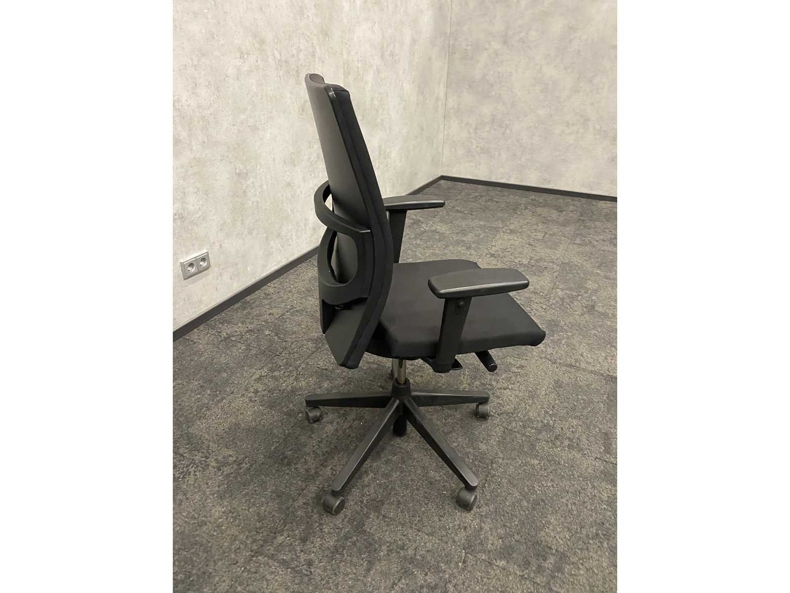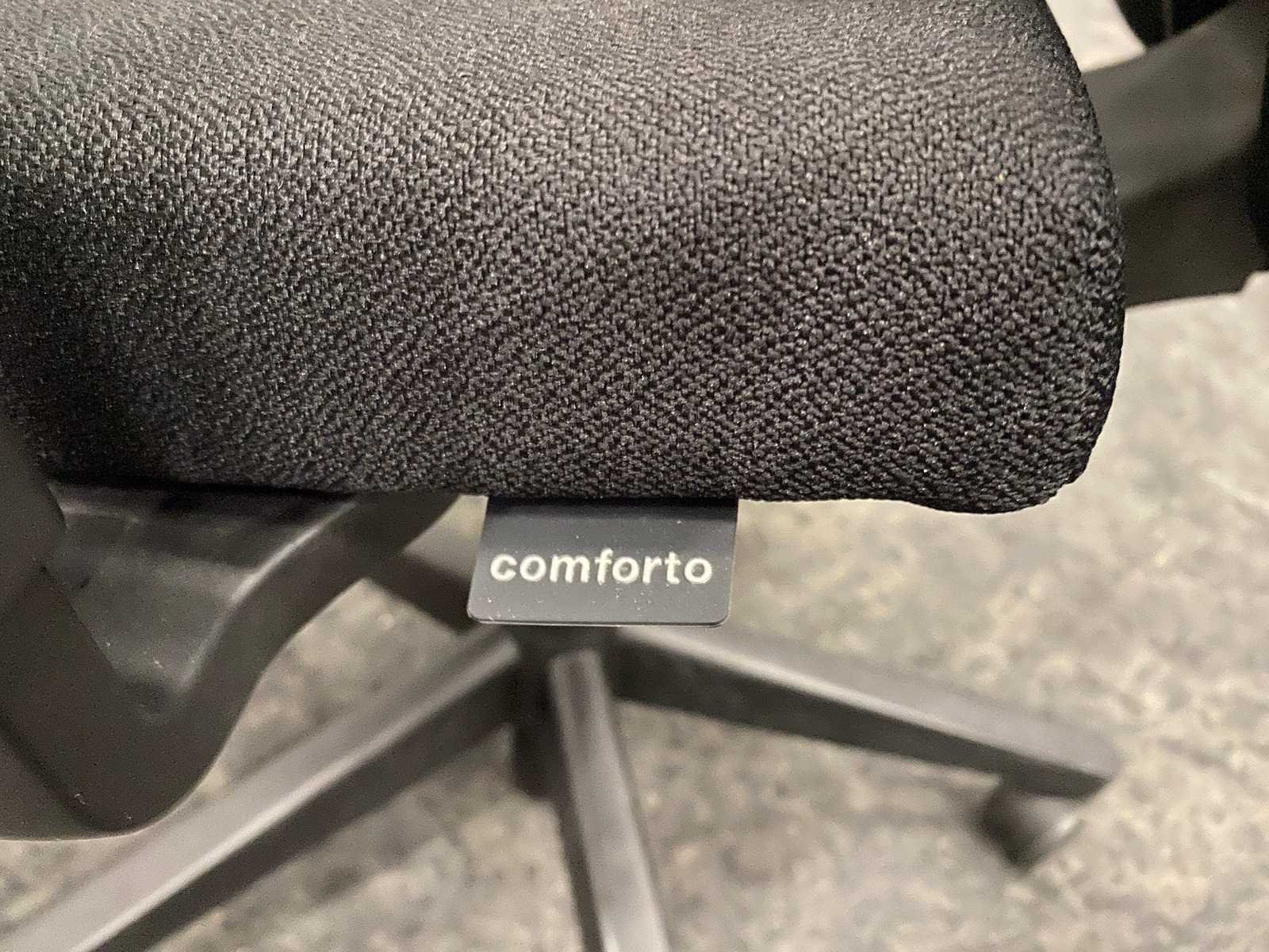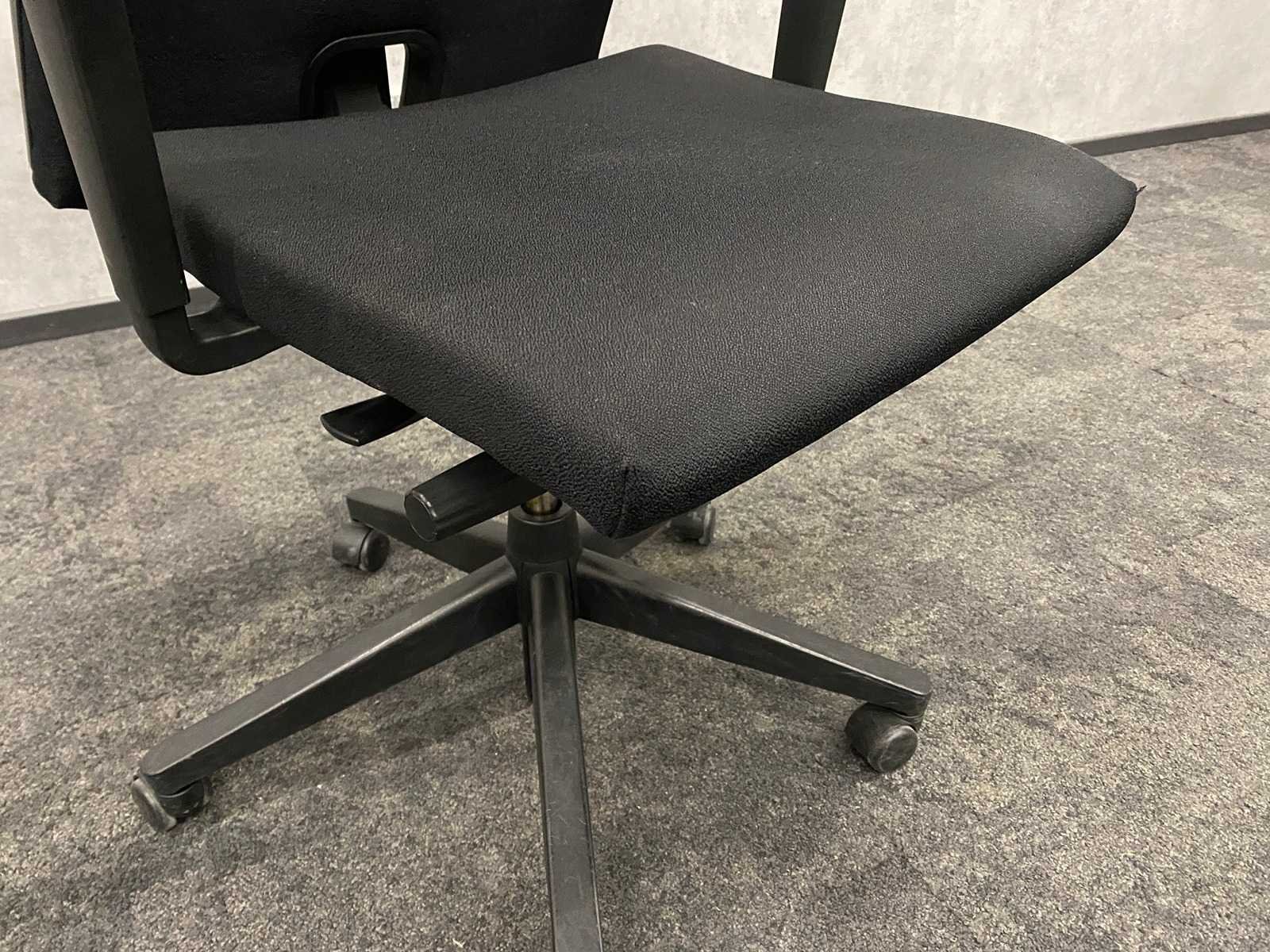 V.v. 3D verstelbare armleggers, zithoogte en zitdiepte verstelbaar, actief zitten, lendensteun, zwarte stoffering, zwart 5-teens voetenkruis Merk: Haworth Comforto Kleur: zwart