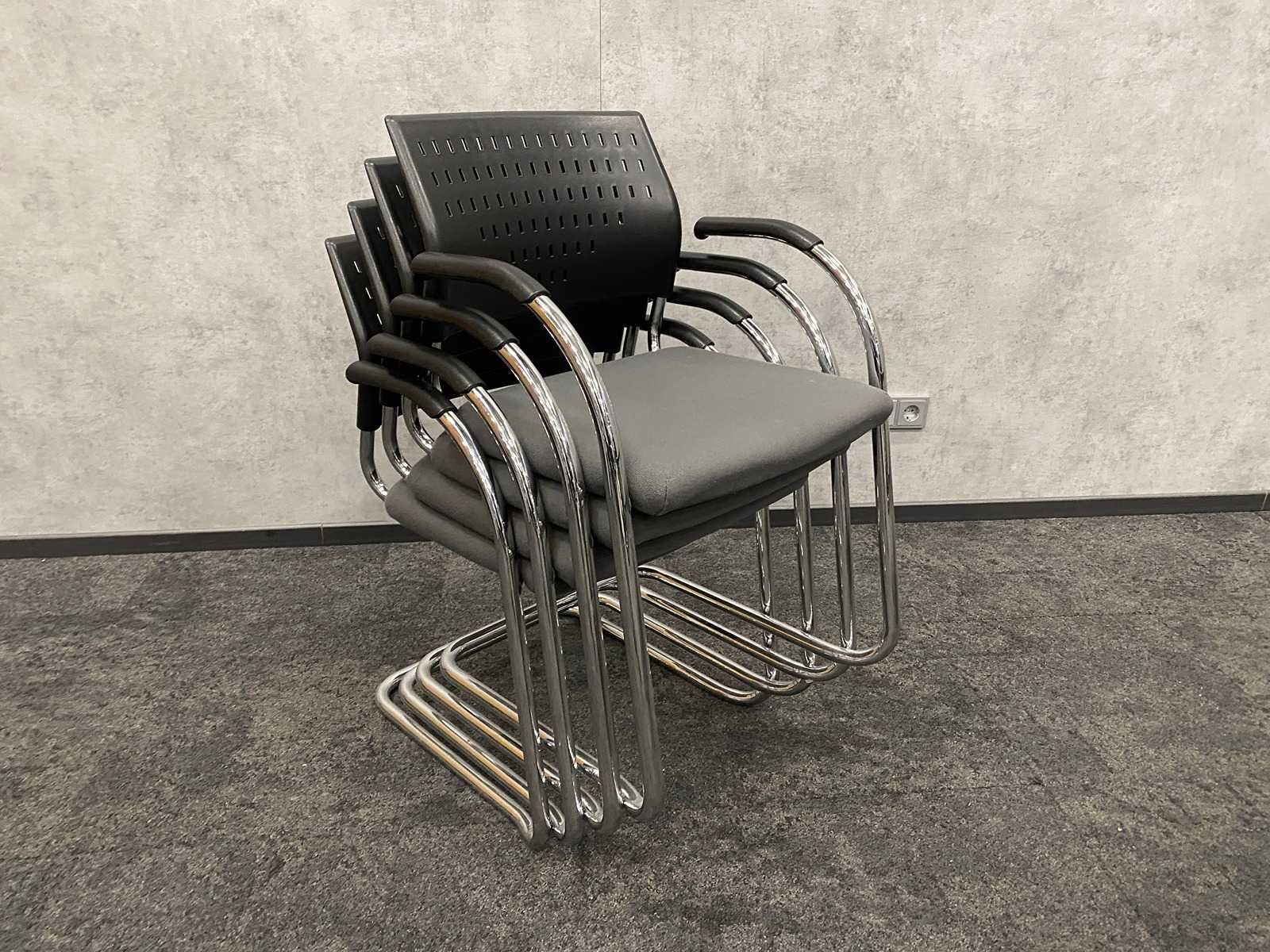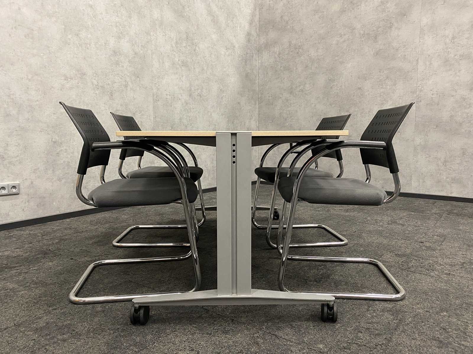 Kavel bestaande uit 1x Kembo verrijdbare, in hoogte instelbare mbv handslinger conferentietafel, hoogte ca. 62 tot 82 cm. --- 4x Klöber nestelbare conferentiestoel Merk: Klöber/ Kembo