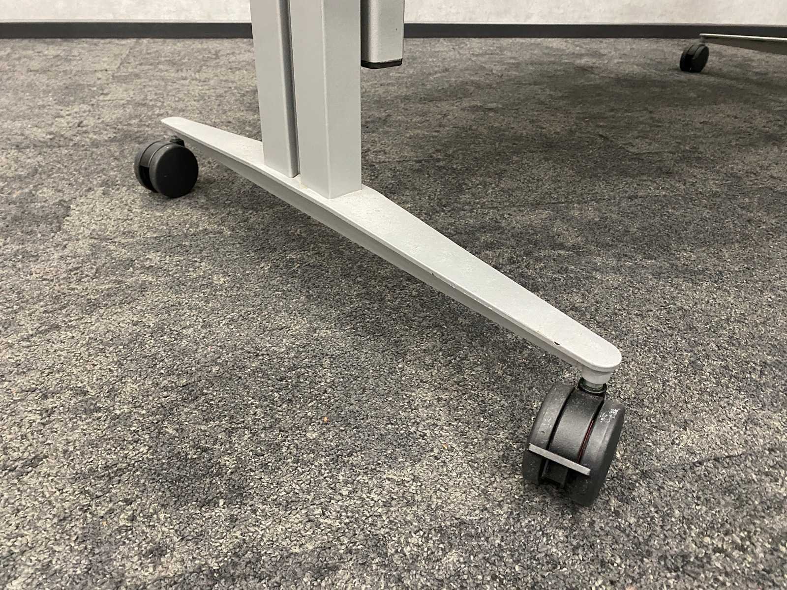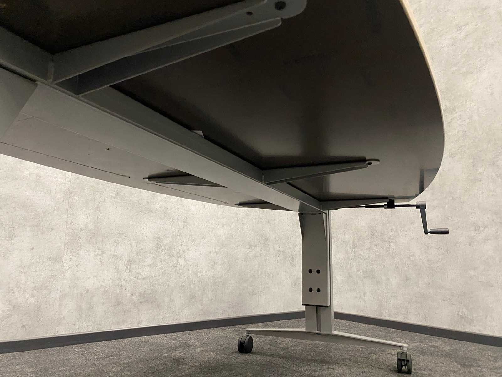 Kavel bestaande uit 1x Kembo verrijdbare, in hoogte instelbare mbv handslinger conferentietafel, hoogte ca. 62 tot 82 cm. --- 4x Klöber nestelbare conferentiestoel Merk: Klöber/ Kembo