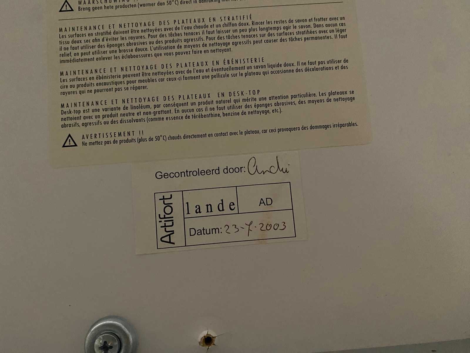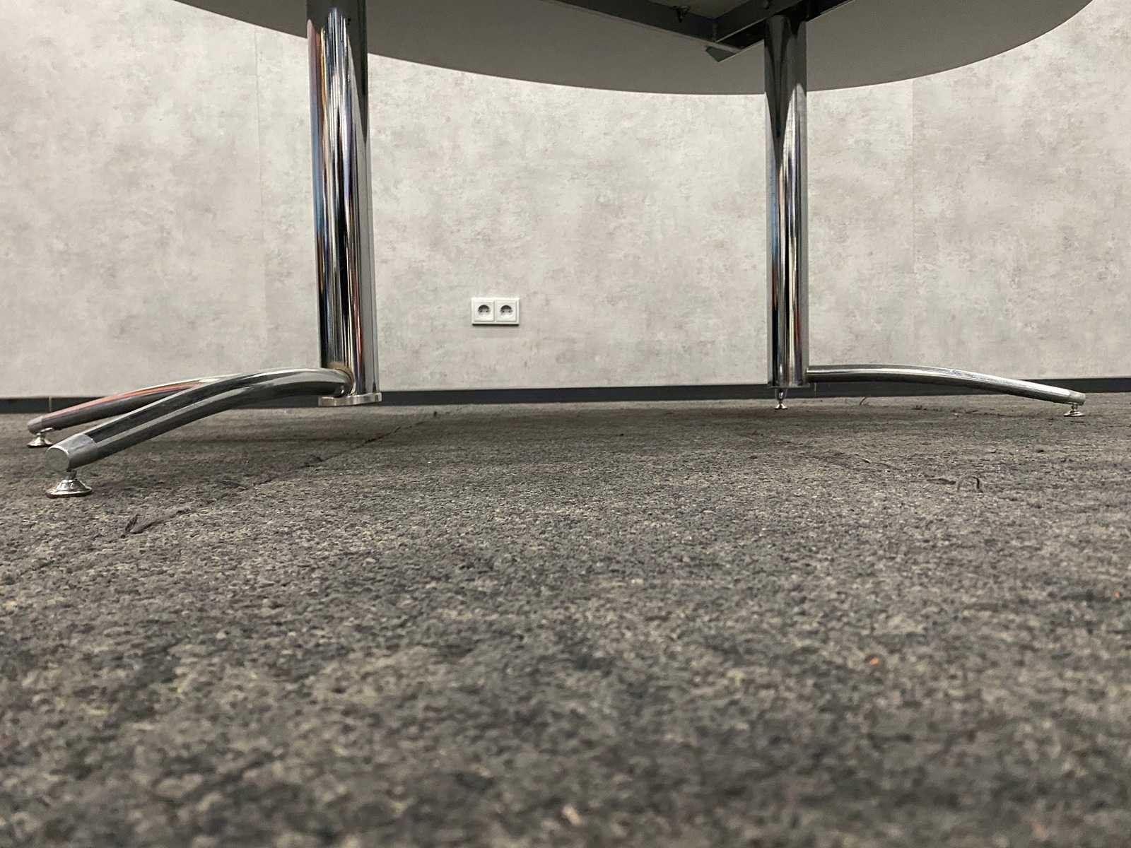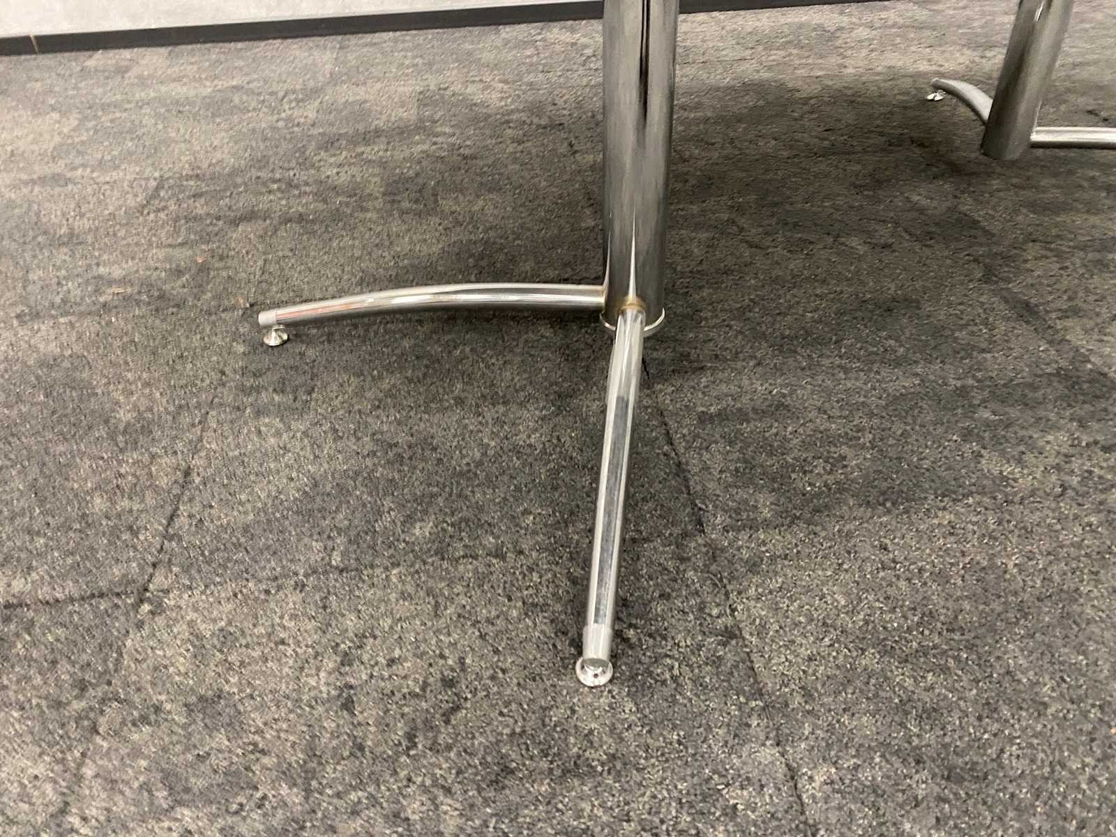 Beschadiging kantband zie foto's Merk: Artifort/ Lande Kleur: chroom, wit Lengte: 200cm Breedte: 120cm Hoogte: 75cm Materiaal: metaal, melamine