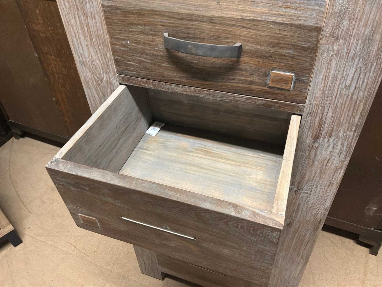 Inclusief 5 handvatten. Model: Portofino Kleur: Grijs Lengte: 40cm Breedte: 60cm Hoogte: 120cm Materiaal: Hout