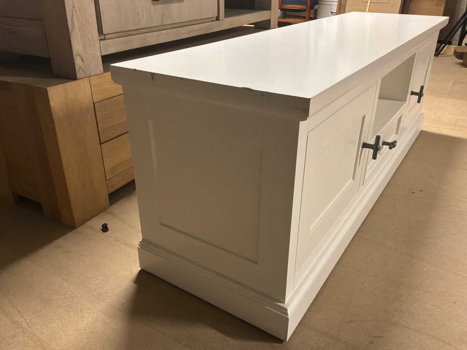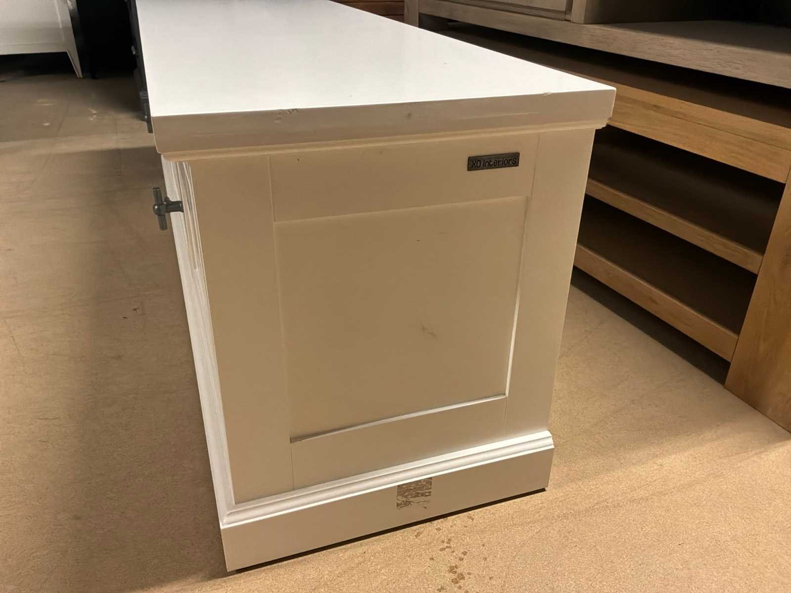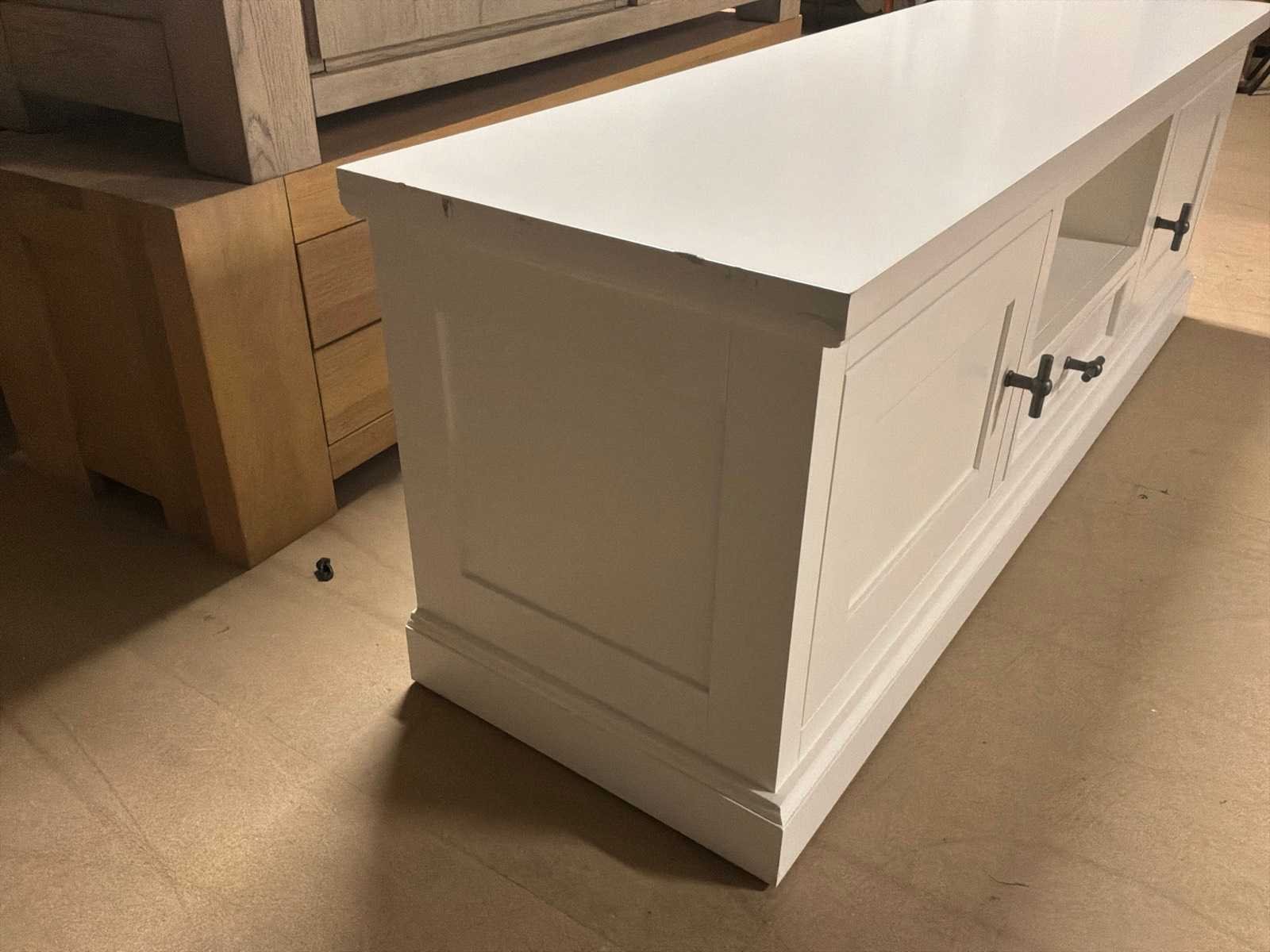 Beschadigd zie foto’s Model: Leblanc Kleur: Wit Lengte: 45cm Breedte: 160cm Hoogte: 55cm Materiaal: Hout