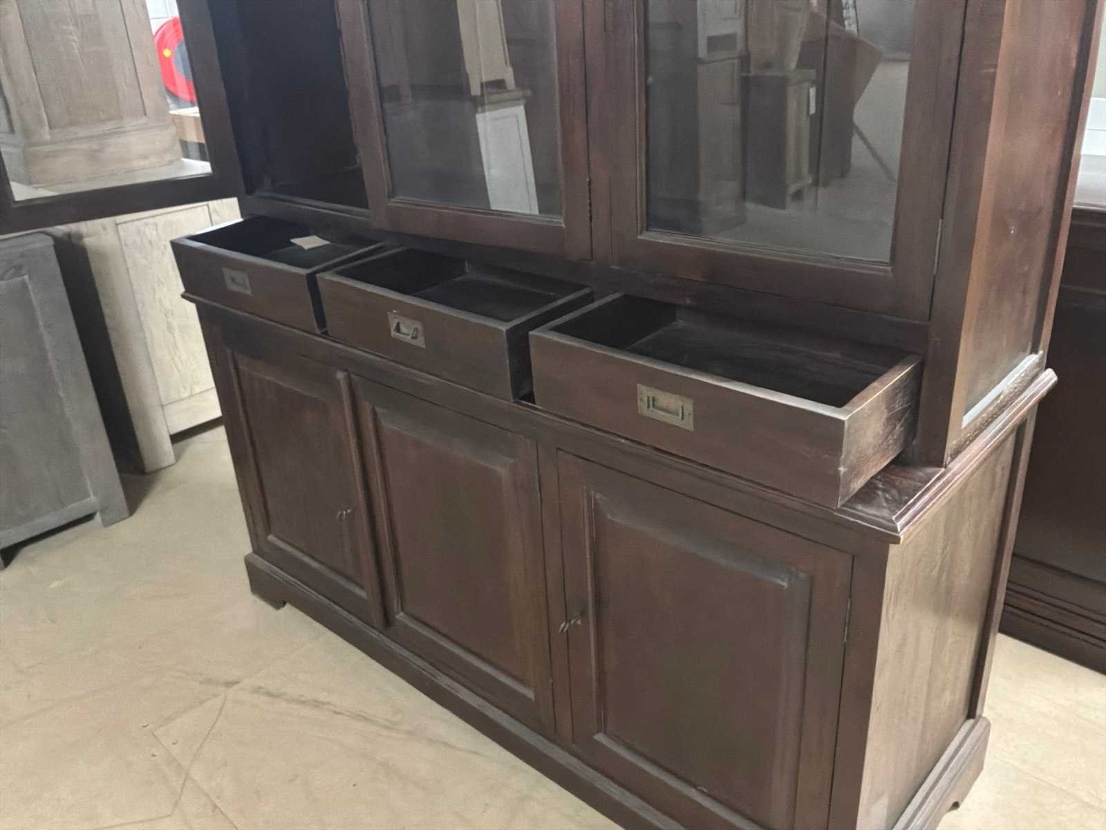 Buffetkast is 2 delig. Model: Barnsley Lengte: 58cm Breedte: 165cm Hoogte: 220cm Materiaal: Hout