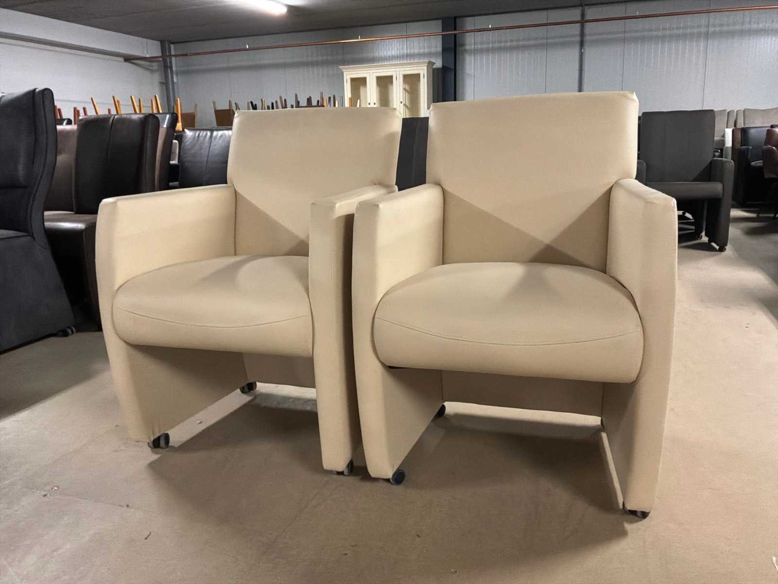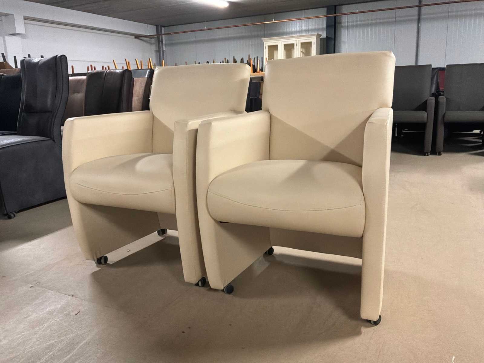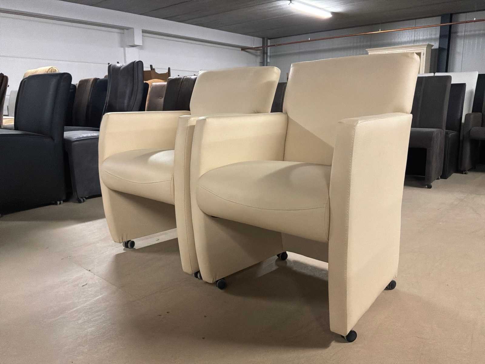 Verrijdbare leren eetkamerstoel (2x)