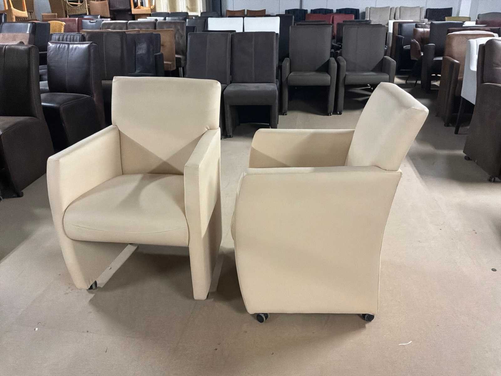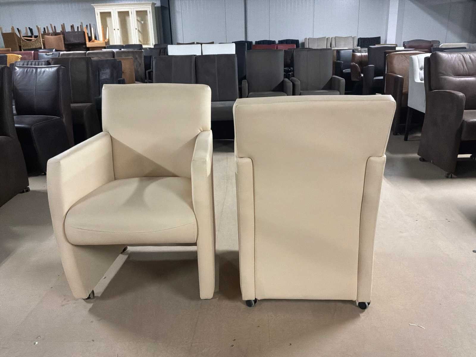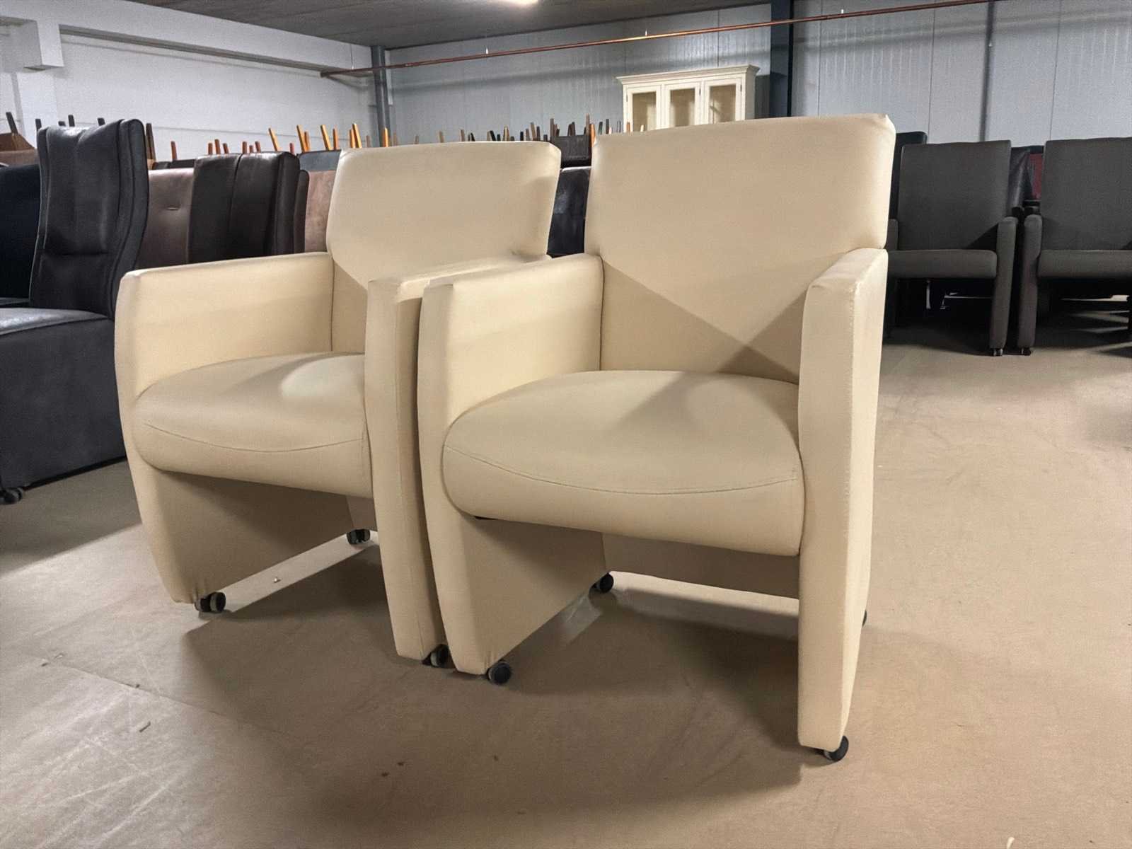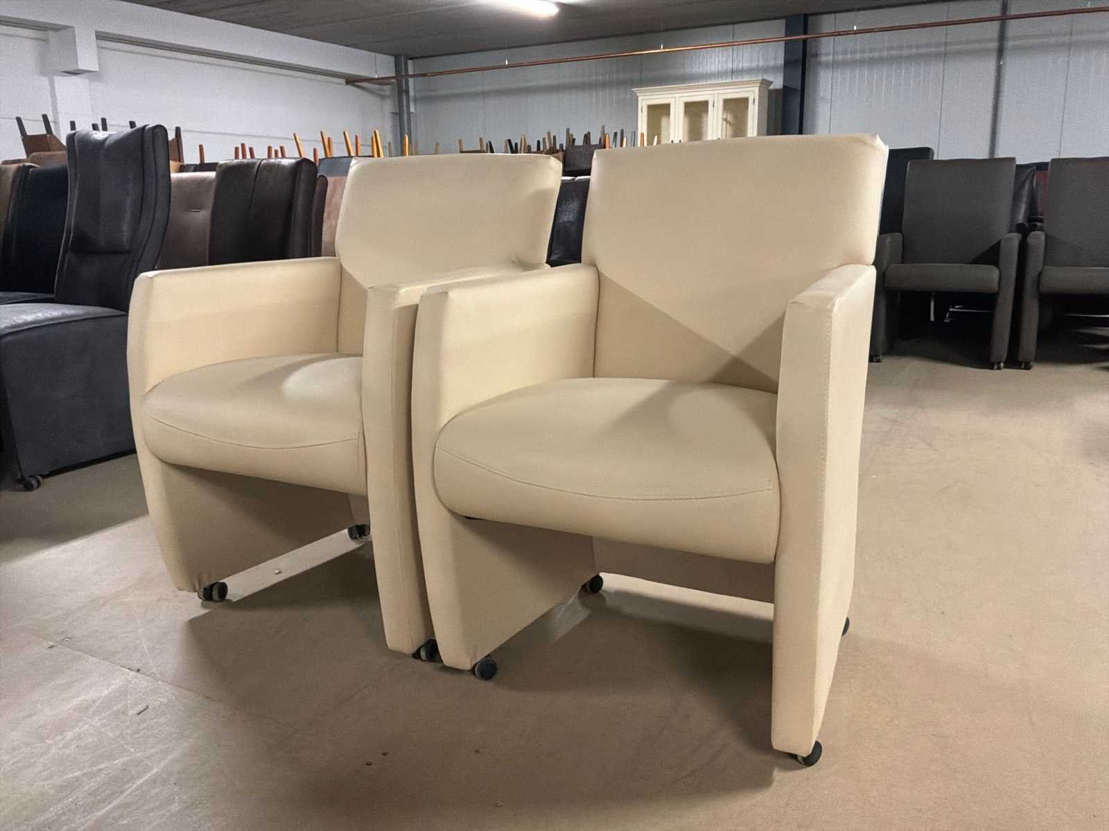 Verrijdbare leren eetkamerstoel (2x)