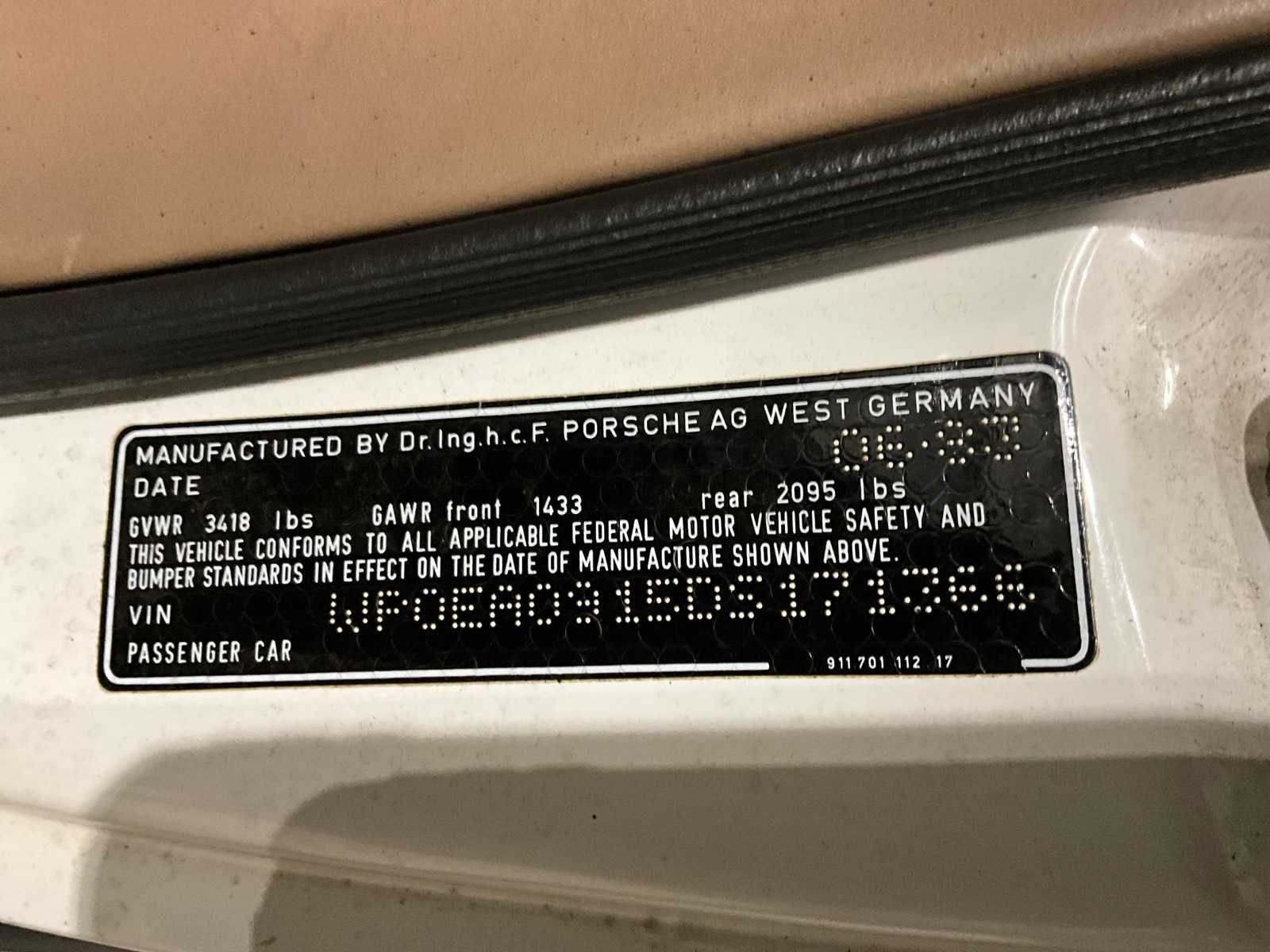 Soft top cabrio, elektrische ramen, cruise controle, lederen bekleding, Kenteken: K-374-SV Merk: Porsche Model: 911 Cabrio Bouwjaar: 1983 Cilinderinhoud: 3000cc Vermogen (kW): 133kW Brandstof: benzine Afgelezen mijlenstand: 58491mi Chassisnummer: WP0EA0915DS171366 Laadvermogen: 239kg Datum eerste toelating: 1983-06-30 Datum eerste toelating (NL): 2021-02-23 APK vervaldatum: 2027-02-18 Vermogen (pk): 181hp Aandrijving: RWD Aantal zitplaatsen: 4 Kleur: wit Transmissie: Handgeschakeld Stuurwiel: Links Emissieklasse: 0 Aantal deuren: 2 Aantal sleutels: 2 Ledig gewicht: 1211kg Velgmaat: 16” Bruto BPM (NL): 0€ Aantal cilinders: 6 Carrosserie: Cabriolet Nationaliteit documenten: Nederlands Carfax Link: https://was.carfax.eu/v0/api/ccdid/5100016408/svc/201/vinreg/K374SV/checksum/eyJhbGciOiJIUzI1NiIsInR5cCI6IkpXVCJ9.eyJleHAiOjE3NzM0Nzc0ODl9.L9ZYjFTs0_nCnQCTQtWAzoqed0P87bcg9YbHlkuL1e4 Self drive export possible : true