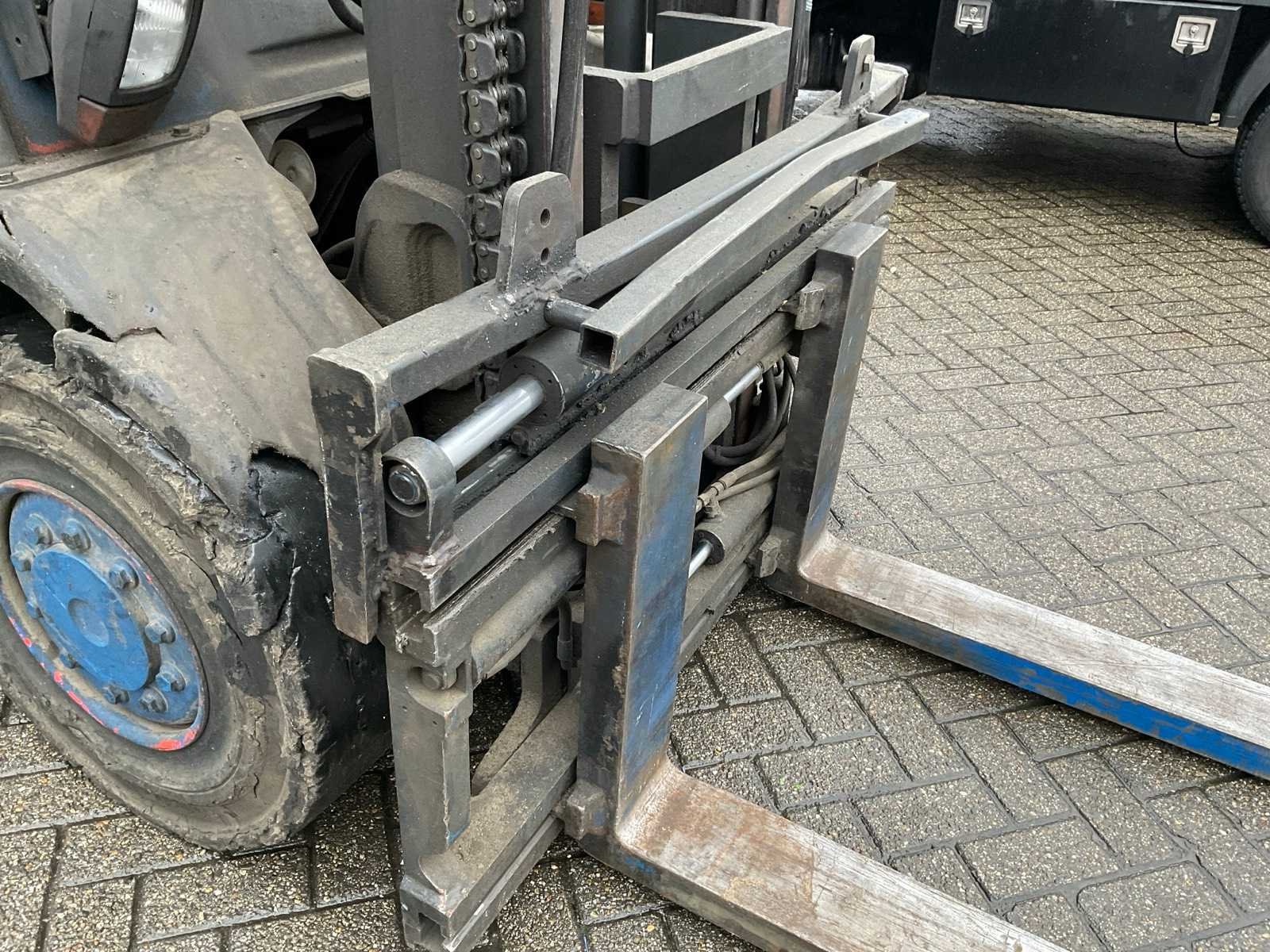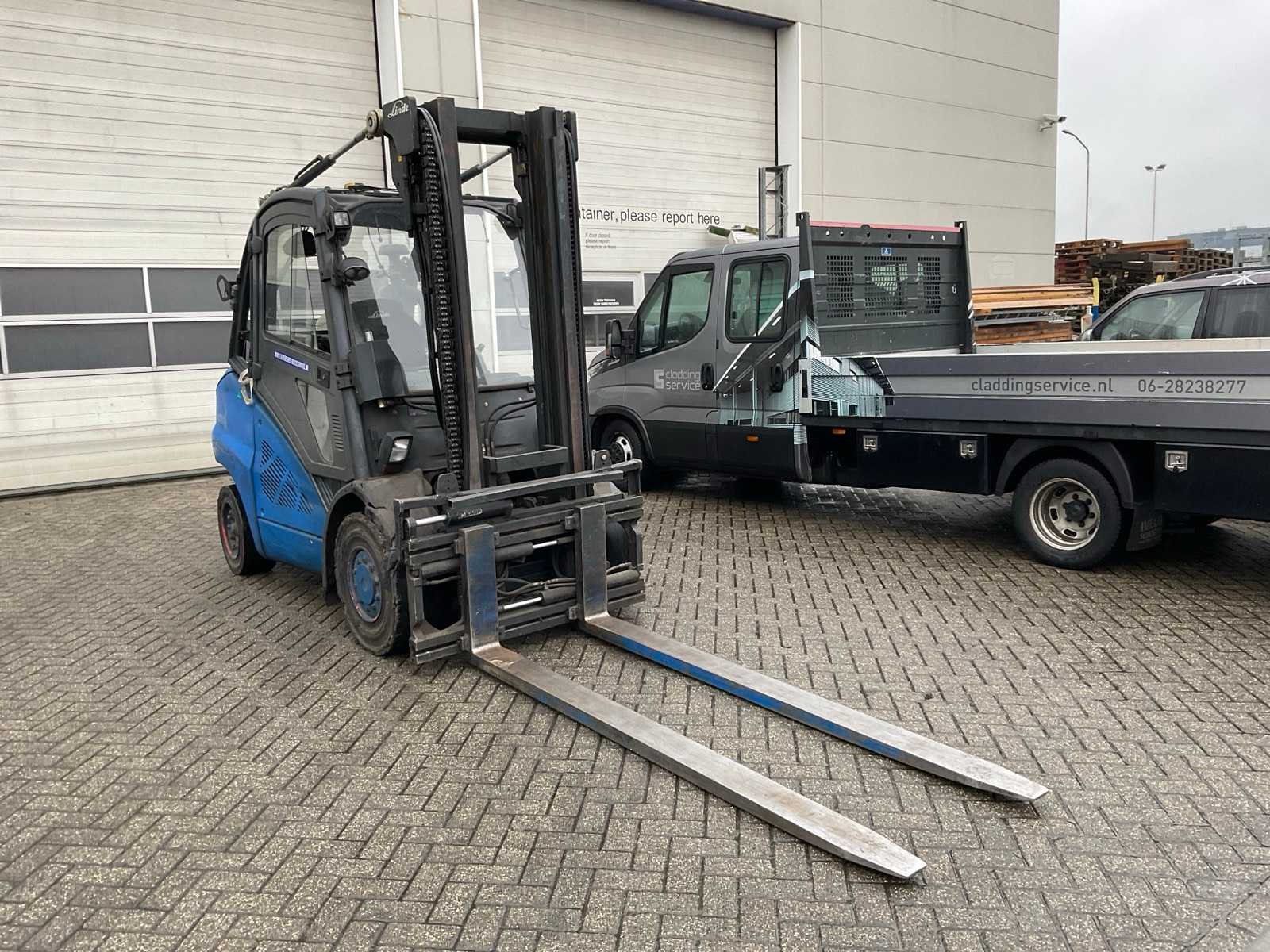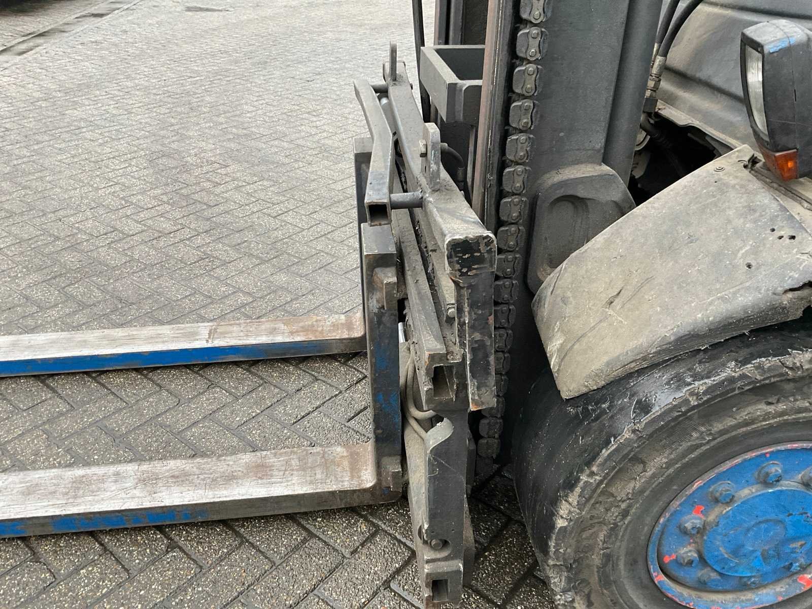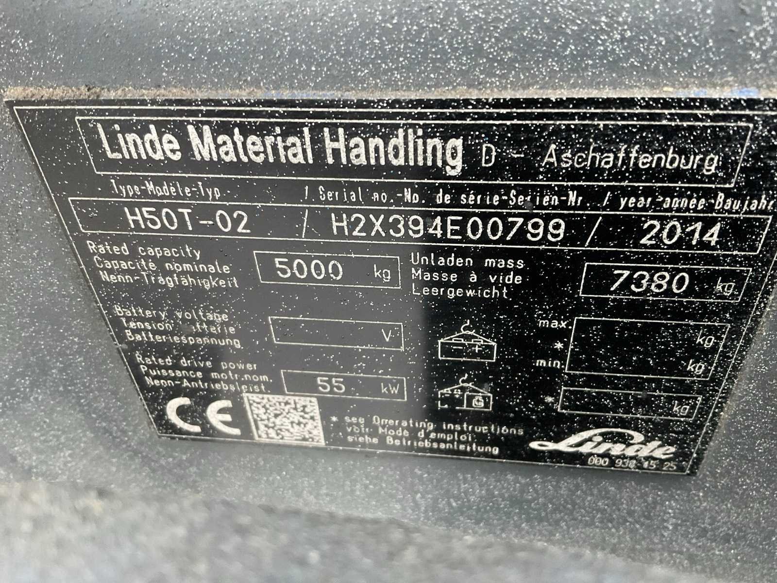 Lepelbreedte: 150 mm, werklampen rondom. Merk: Linde Type: H50 Evo Bouwjaar: 2014 Serienummer: H2X394E00799 Brandstof: LPG Aantal wielen: 4 Afgelezen urenstand: 11625 Free-lift: true Side-shift: true Hydraulisch verstelbare lepels: true Duplex mast: true Eigen gewicht: 7380kg Hefvermogen: 5000kg Lepellengte: 2400mm Max. hefhoogte: 3350mm Vol rubber banden: true Minimale doorrijhoogte: 2650mm Totale afmeting L: 5500mm Totale afmeting Breedte: 1500mm Totale afmeting Hoogte: 2600mm LPG: true
