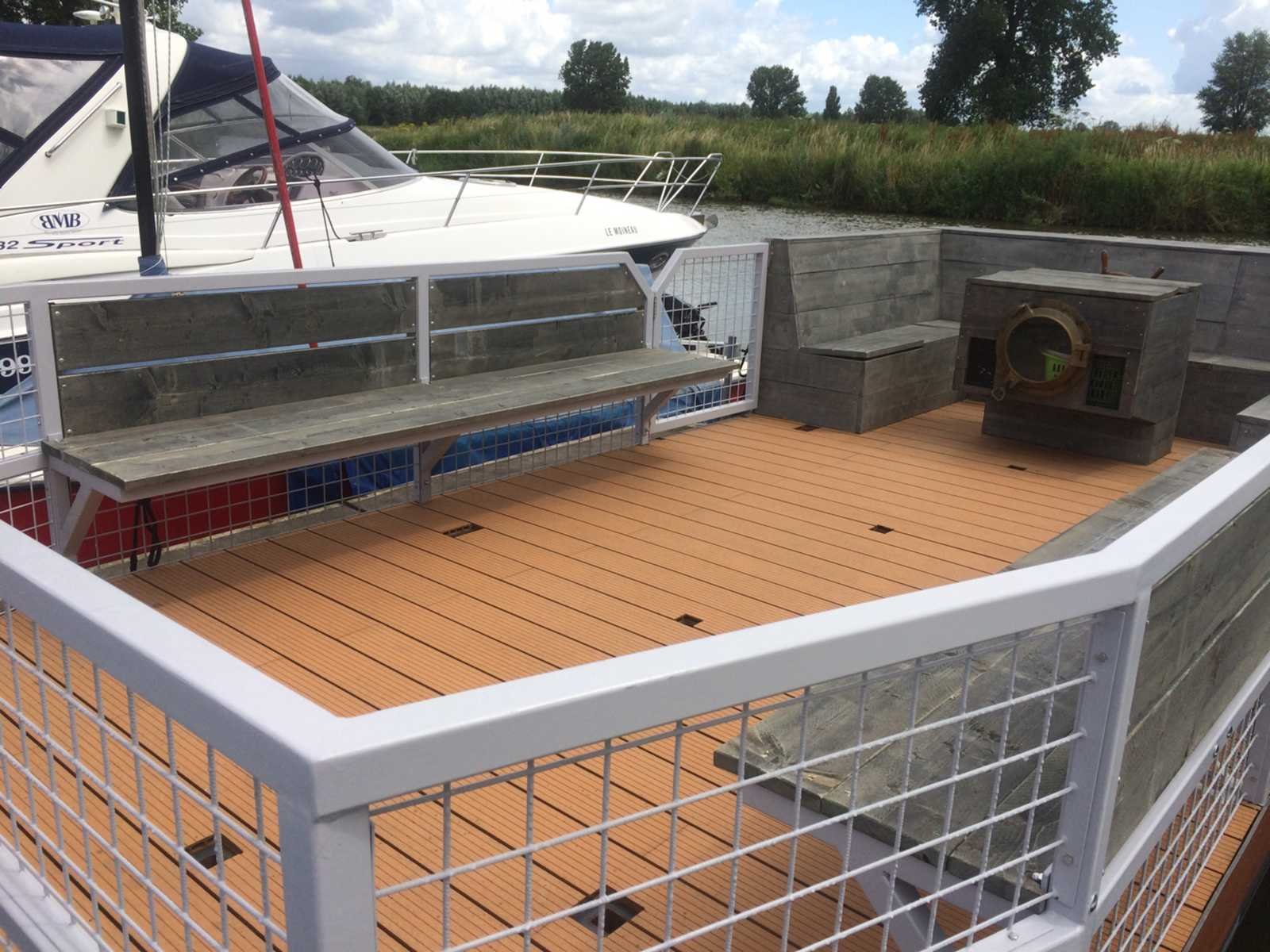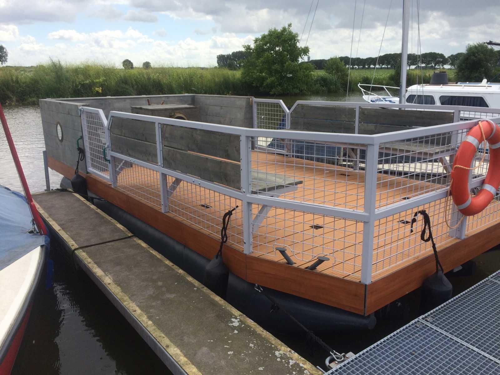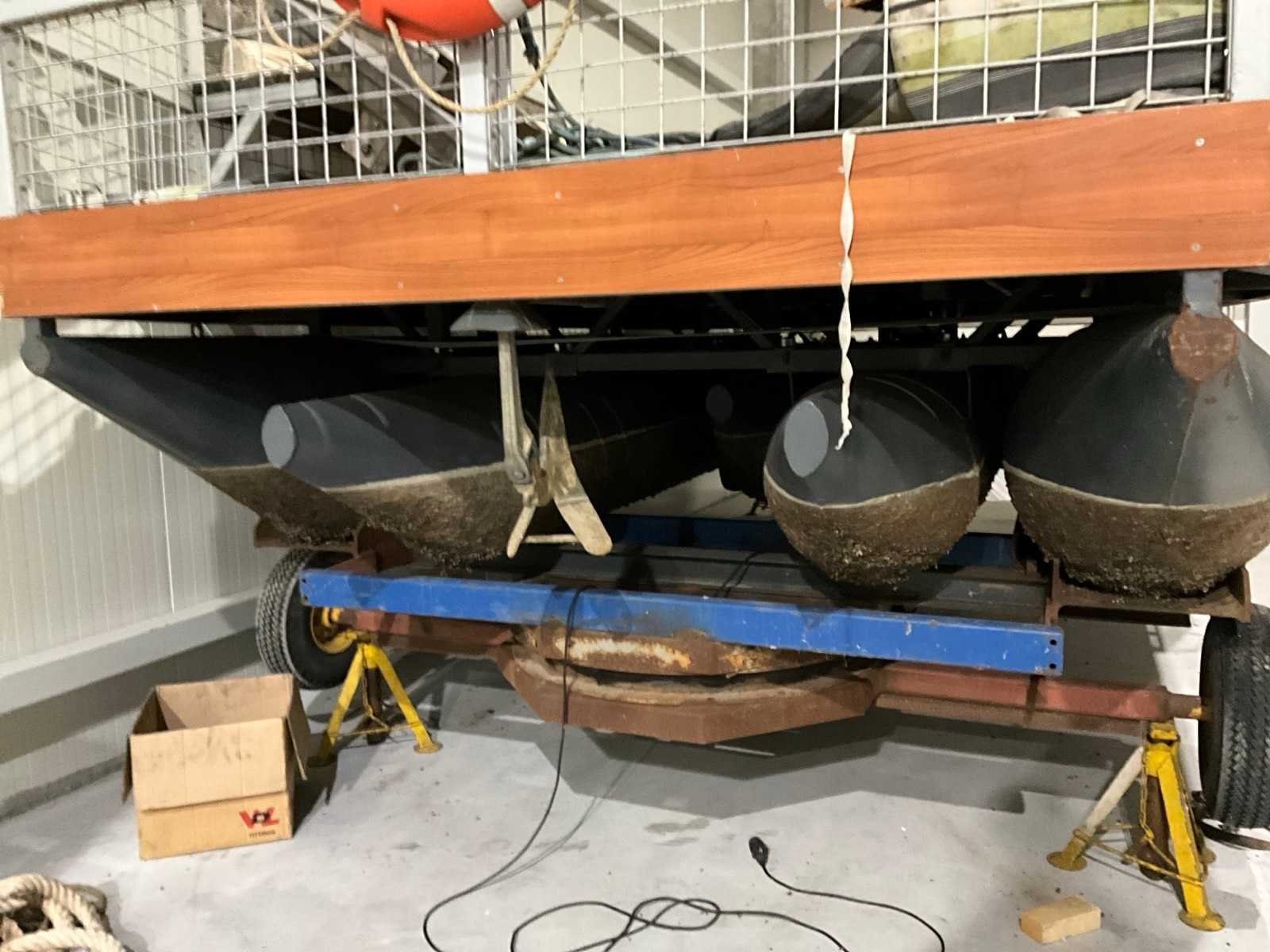 Mercury 4 takt motor, zelfbouw, transportkar Afmeting l: 7m Afmeting b: 3.4m