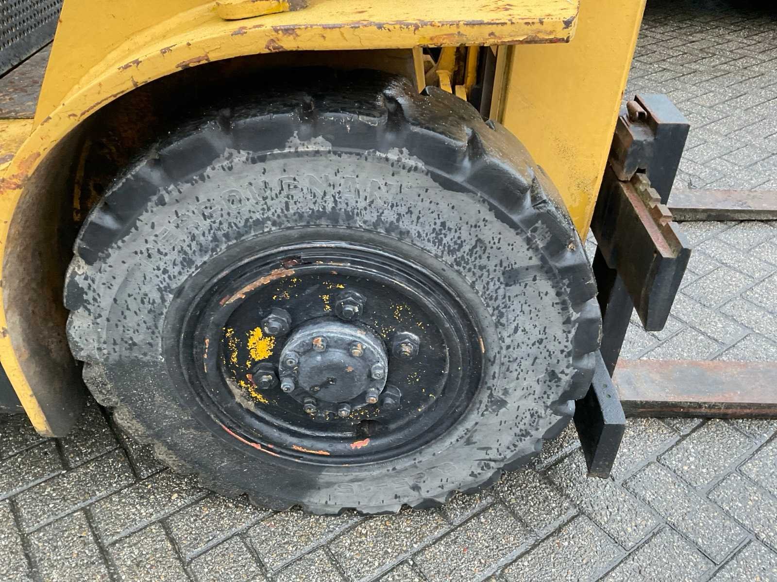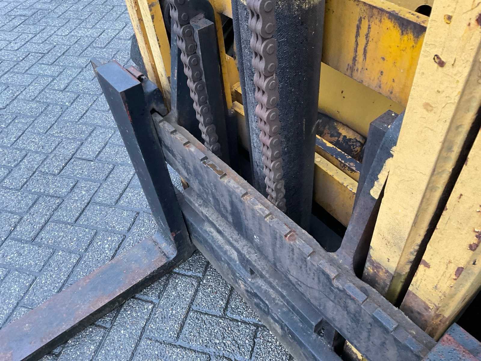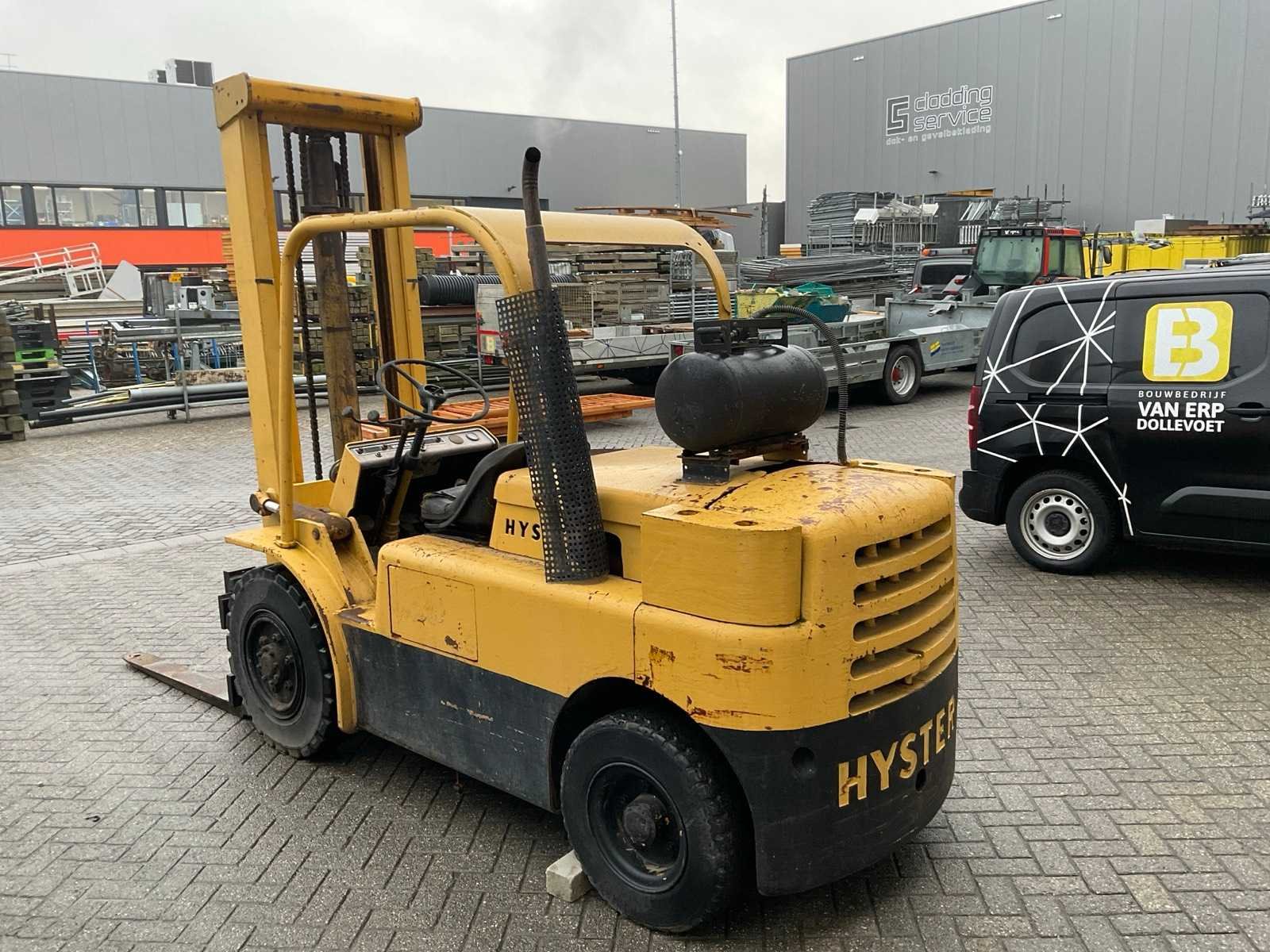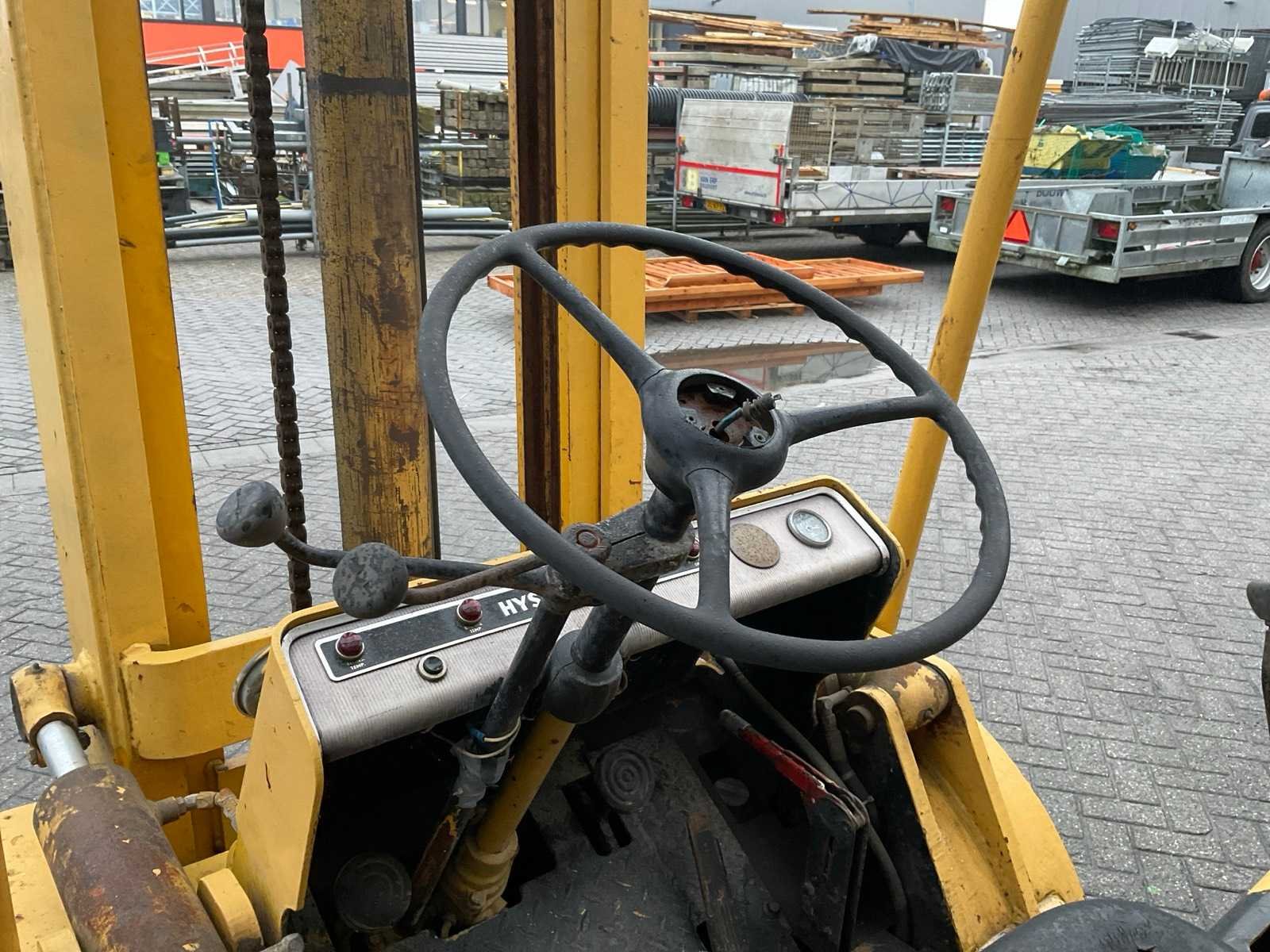 Lepelbreedte 125 mm. Merk: Hyster Brandstof: LPG Afgelezen urenstand: 1673 Duplex mast: true Lepellengte: 1200mm Max. hefhoogte: 4300mm Vol rubber banden: true Minimale doorrijhoogte: 2250mm Totale afmeting L: 2900mm Totale afmeting Breedte: 1350mm Totale afmeting Hoogte: 2200mm LPG: true