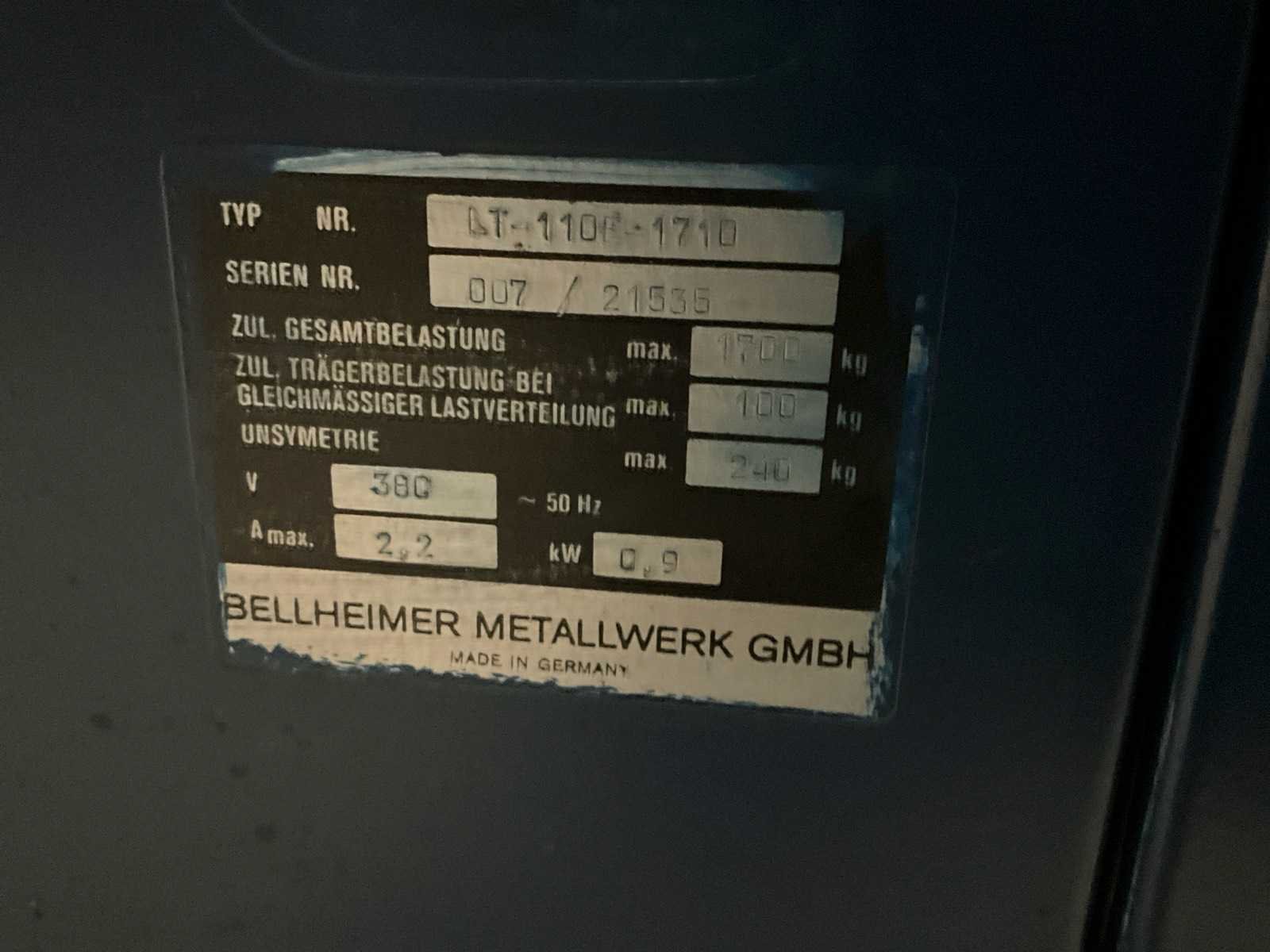 Afmetingen in mm, Merk: Bellheimer Type: LT-110E-1710 Ladebreedte: 2250mm Diepte lade: 350mm Breedte: 2640mm Hoogte: 2660mm Diepte: 1470mm Vermogen (kW): 0.9kW Spanning: 230V Totaal gewicht: 1700kg
