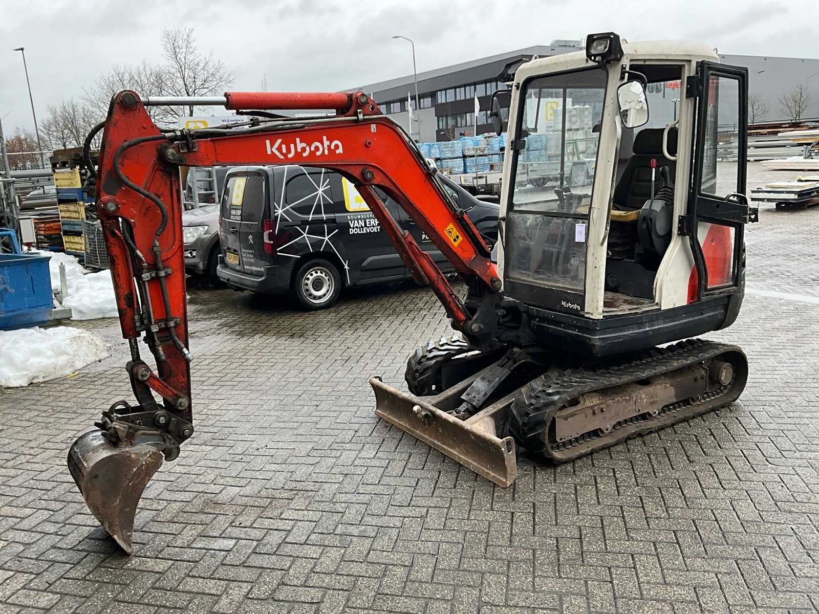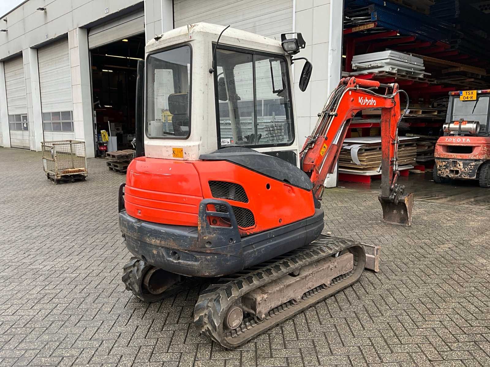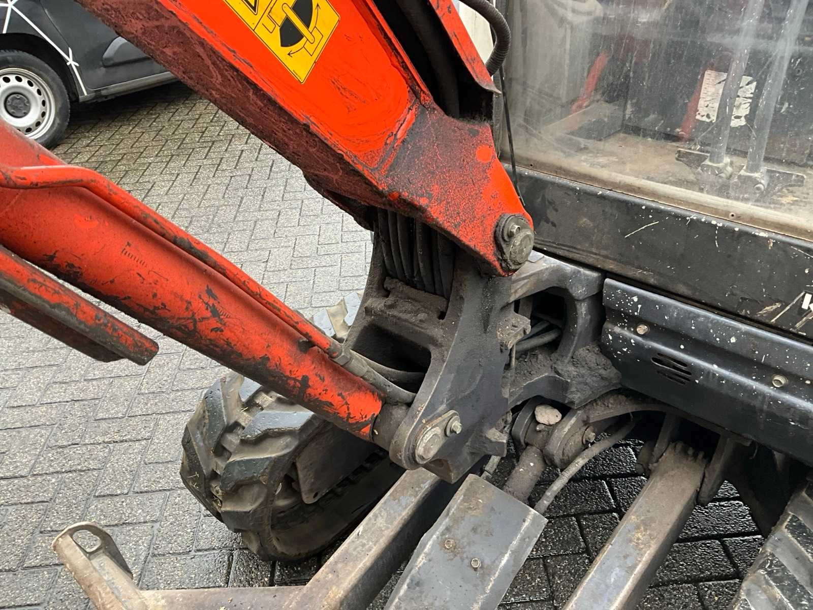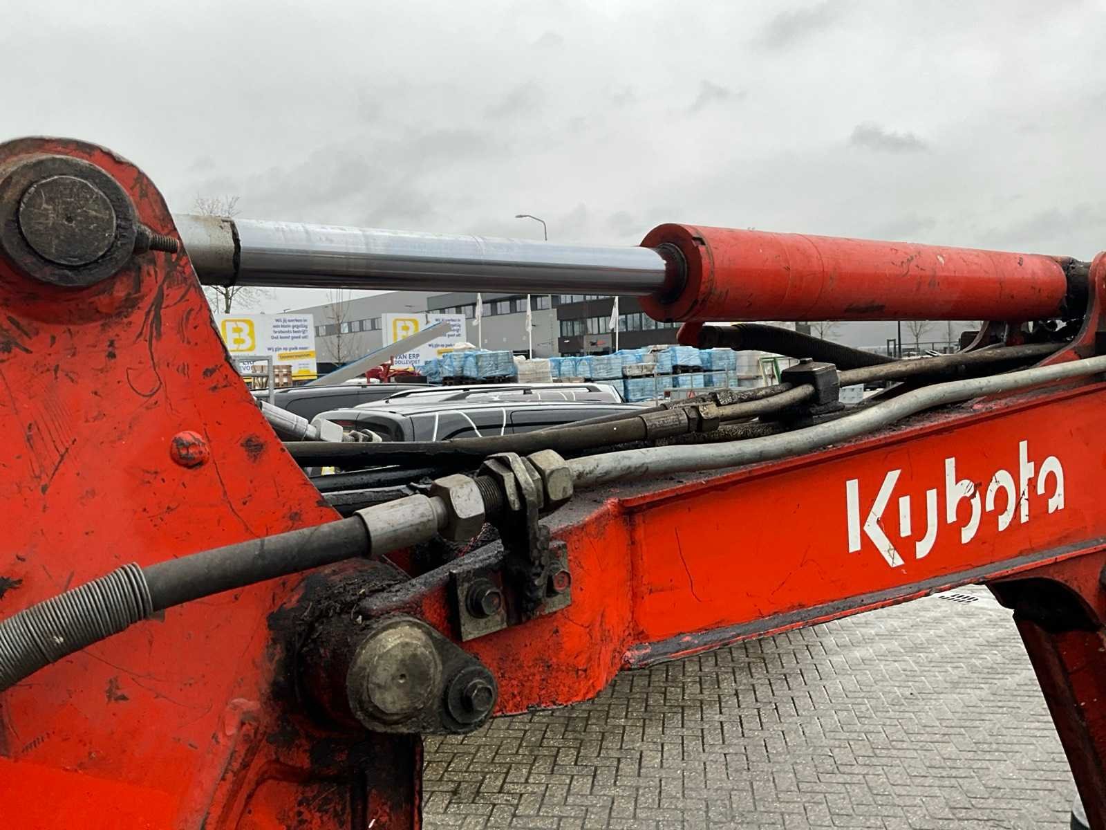MN CW05 hydraulische snelwissel, CW05 dieplepelbak, 3e en 4e functie, zwenkgiek, Schuifblad met trekhaak, Radio, 2e rijsnelheid Merk: Kubota Type: KX61 Serienummer: WKFRGJ0003Z075065 Merk motor: Kubota Aantal cilinders: 4 Brandstof: Diesel Gieklengte: 2100mm Inclusief graafbak: Yes Graafbak afm. b: 400mm Rups breedte: 300mm Afgelezen urenstand: 4289 Totale afmeting L: 4300mm Totale afmeting Breedte: 1400mm Totale afmeting Hoogte: 2400mm